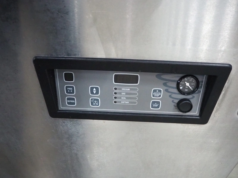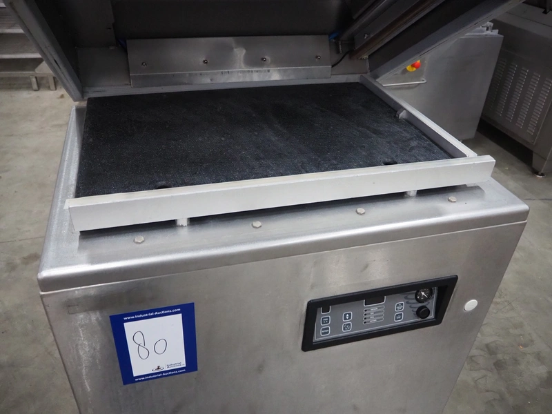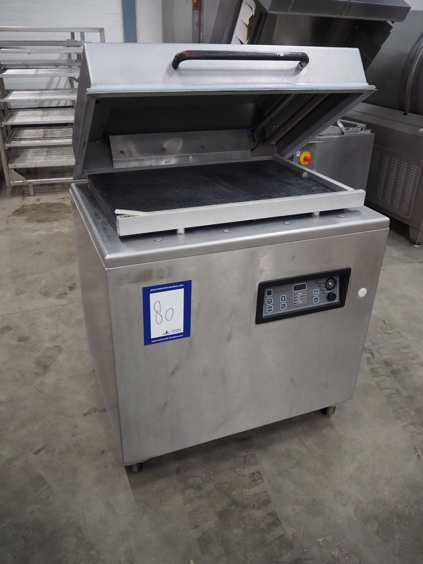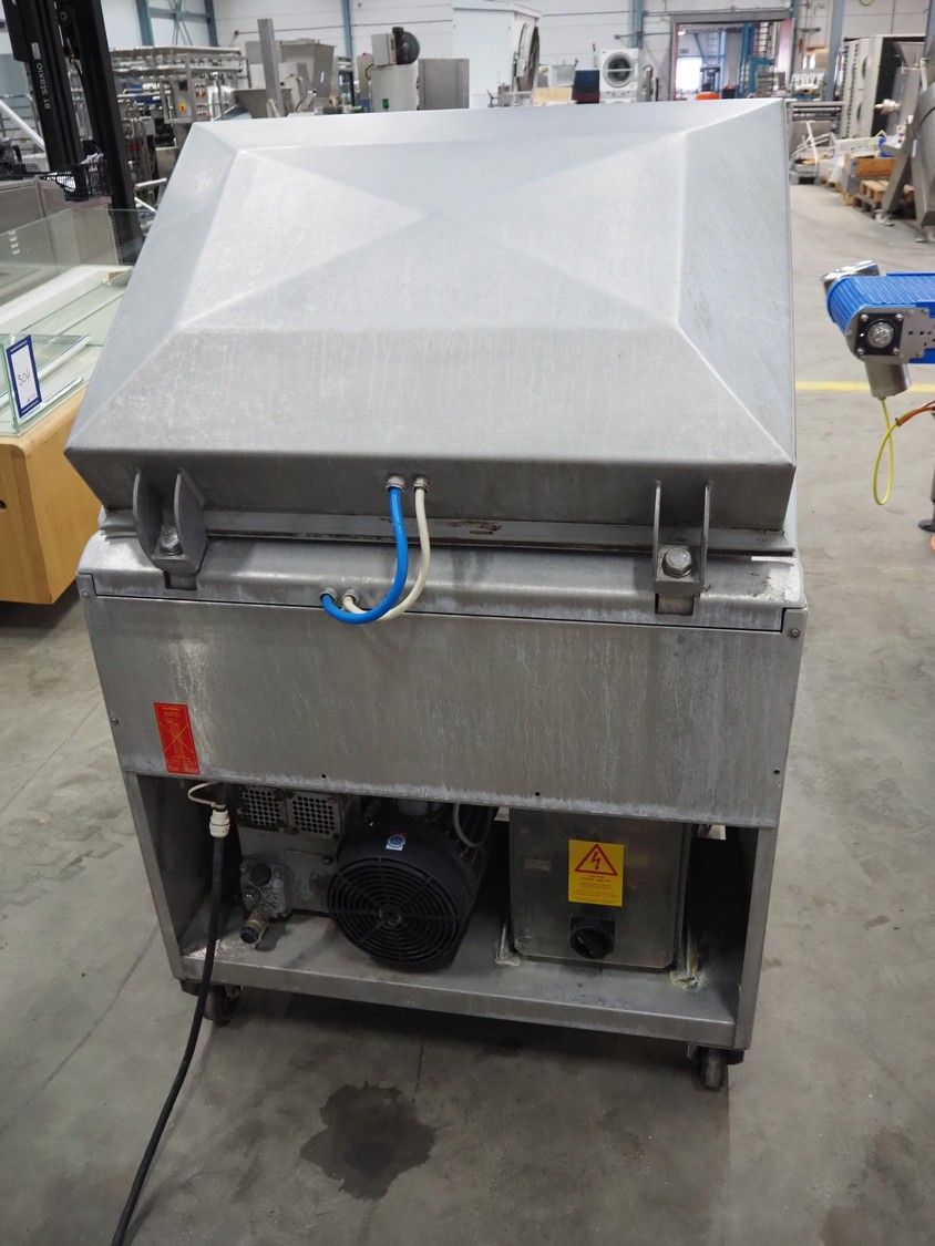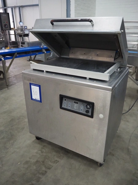 Mobile vacuum machine, seal length: 830 mm and 520 mm, chamber dimensions: 770 mm x 520 mm, vacuum pump, total dimensions: 930 mm x 760 mm x 1100 mm.