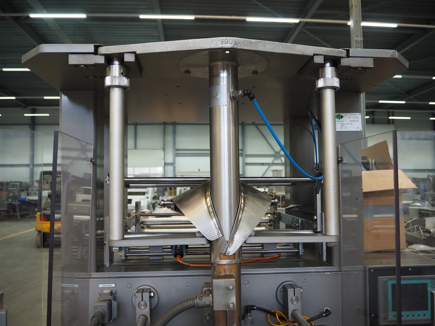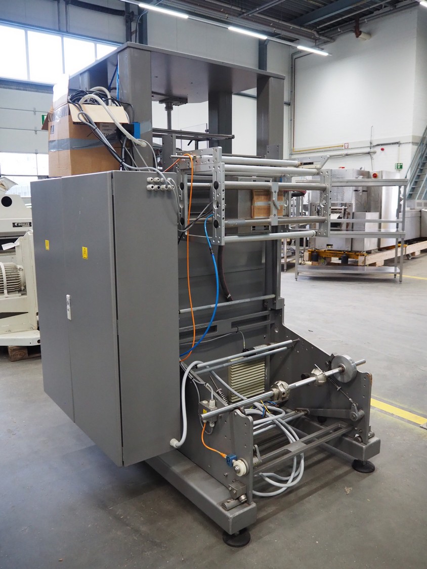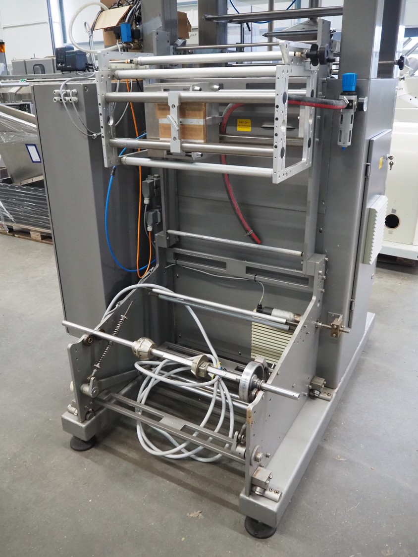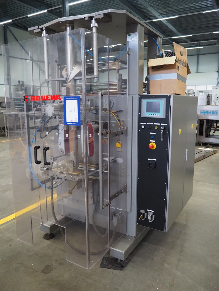 Rovema vertical bag forming, filling and sealing machine, type: VPX 250, number: 13601 P, horizontal seal width: 280 mm, vertical seal length: 360 mm, total dimensions: 2000 mm x 1400 mm x 2050 mm. Including pallet with parts. Year of revision: 2014.