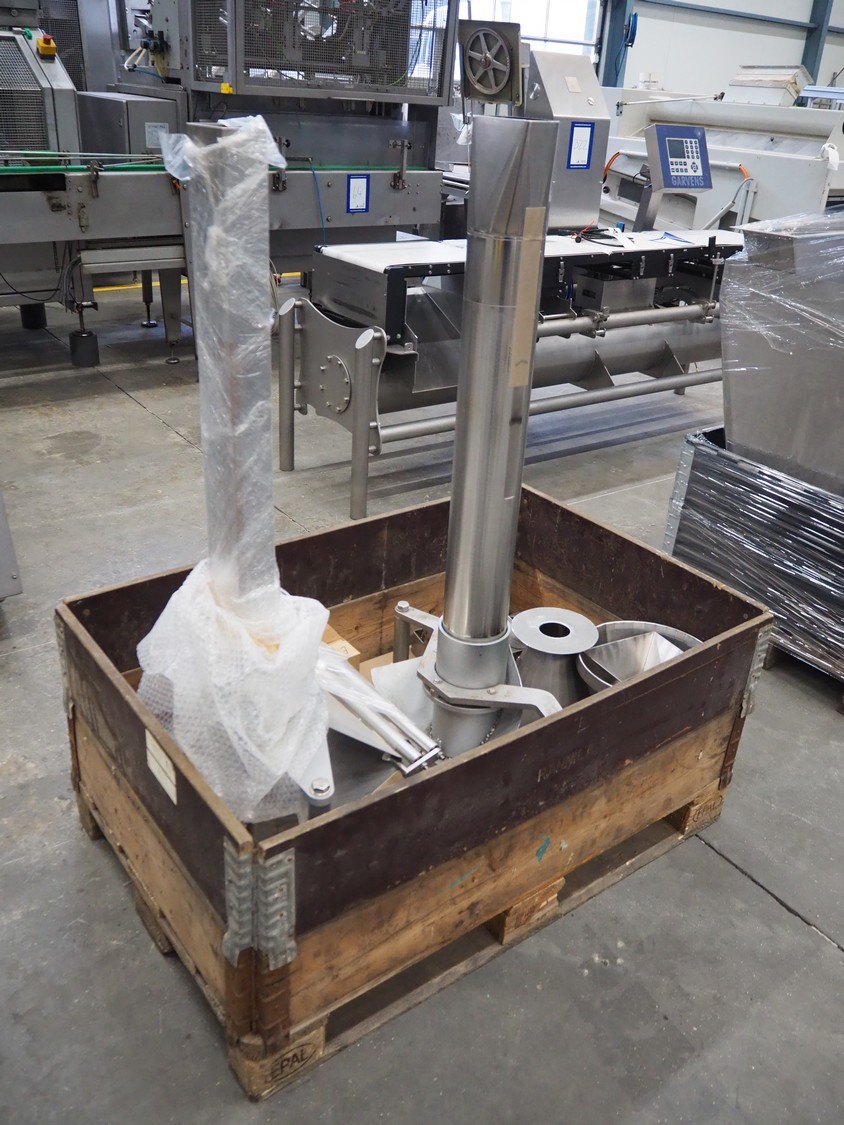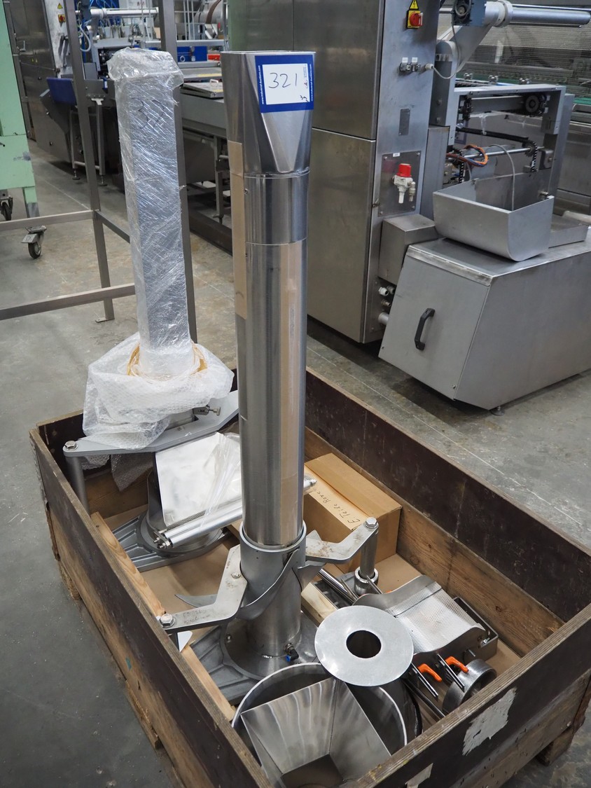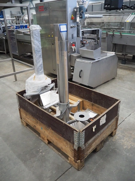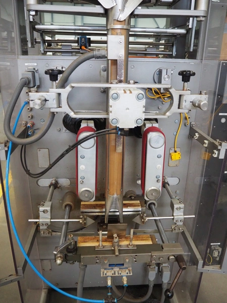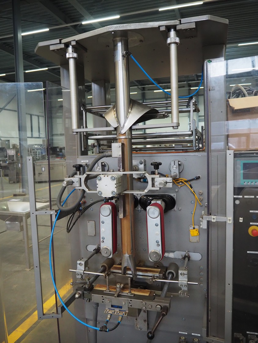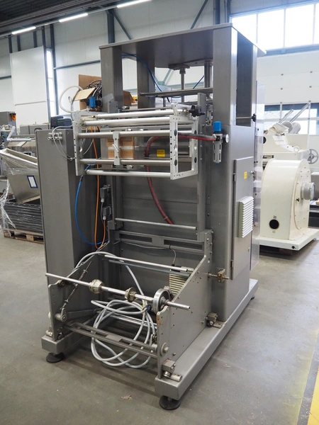 Rovema vertical bag forming, filling and sealing machine, type: VPX 250, number: 13601 P, horizontal seal width: 280 mm, vertical seal length: 360 mm, total dimensions: 2000 mm x 1400 mm x 2050 mm. Including pallet with parts. Year of revision: 2014.