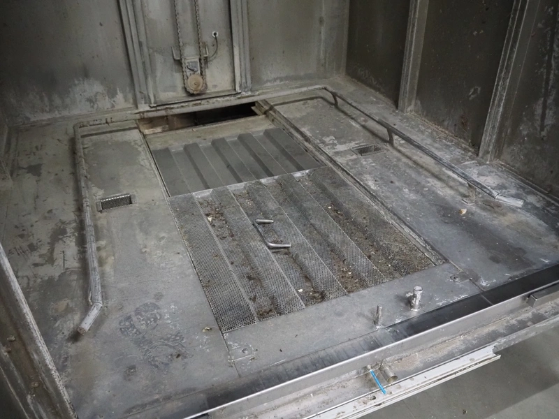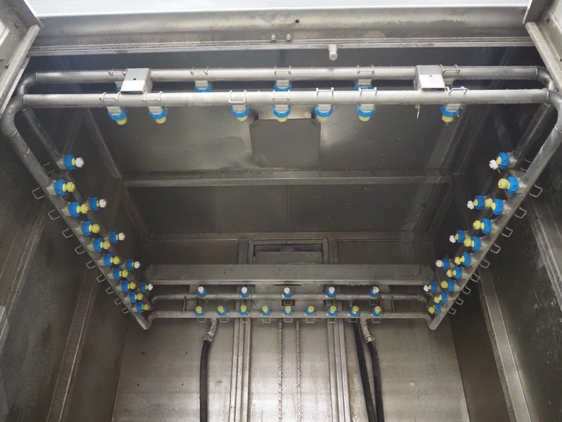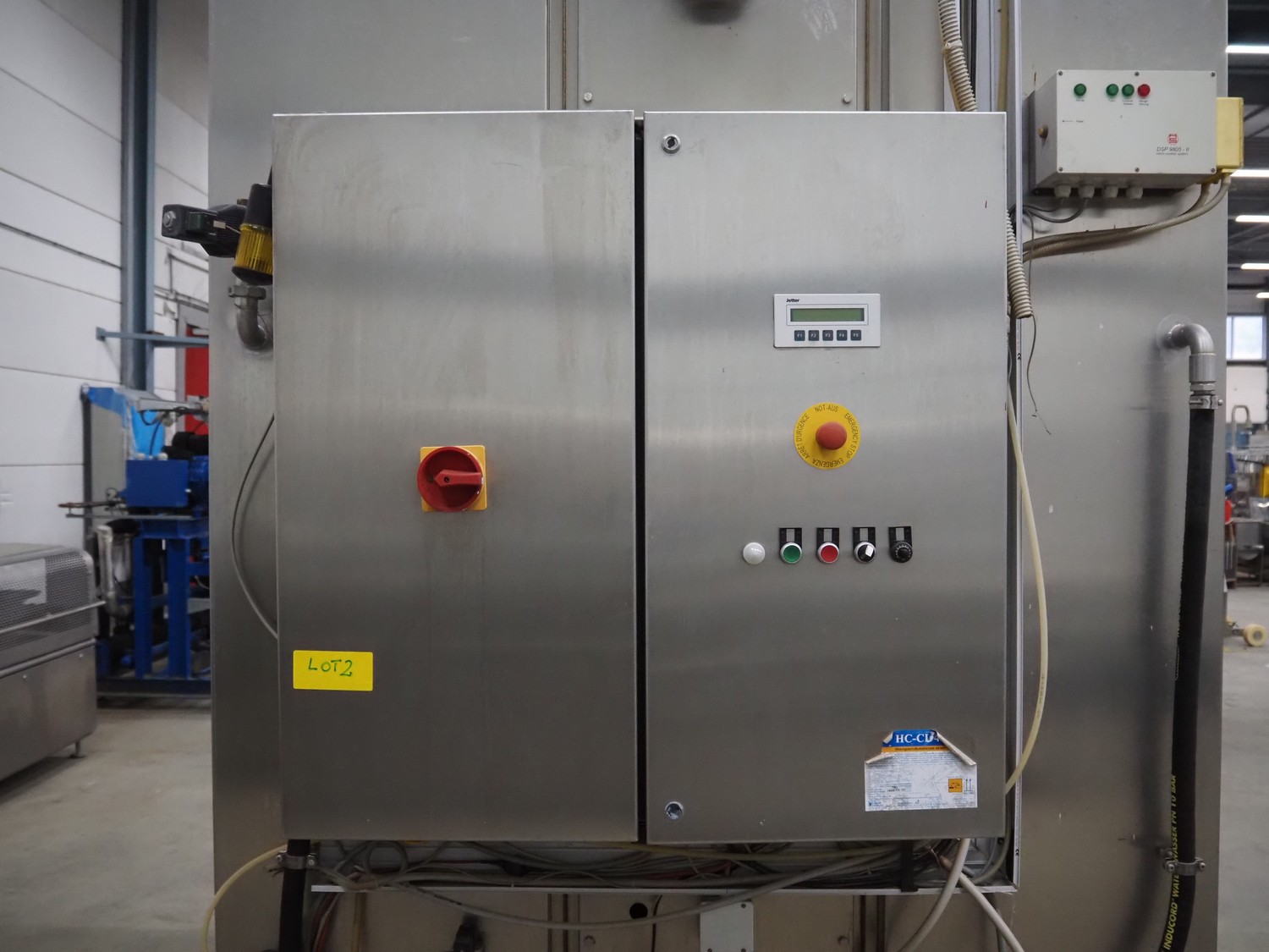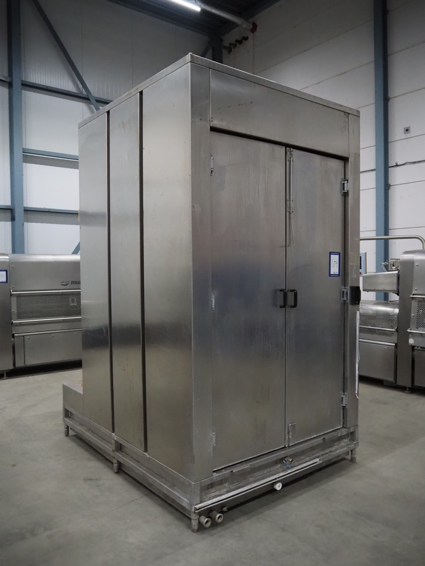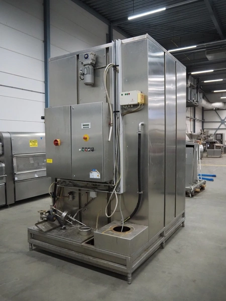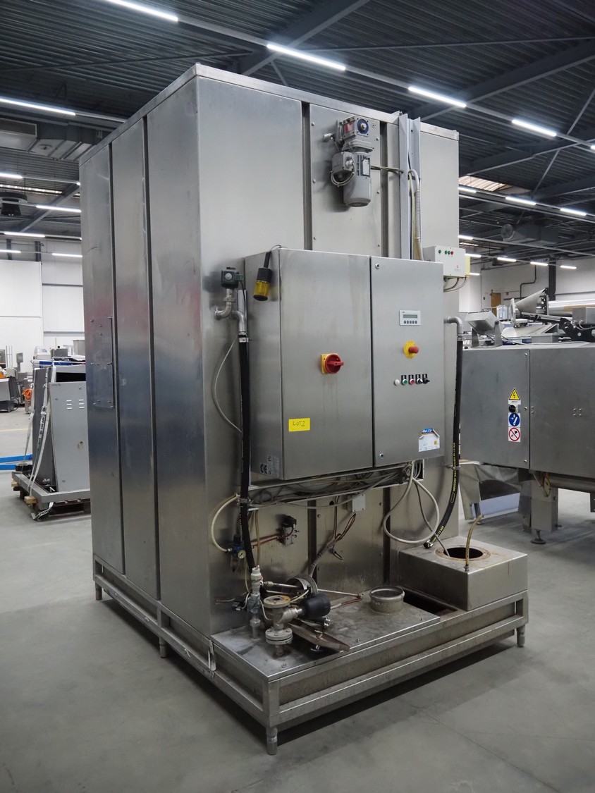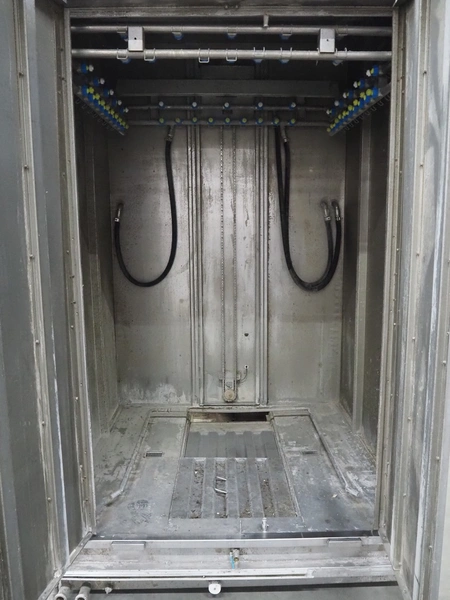 Dorit washing machine for smoke trolley, type: KRW 1, serial number: 20.022, 400 V, 3 Ph, 50 Hz, 6.5 kW, dimensions inside: 1150 mm x 1080 mm x 2150 mm, total dimensions: 2250 mm x 1700 mm x 2950 mm. Missing pump.