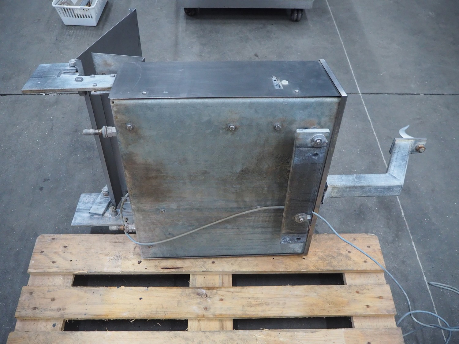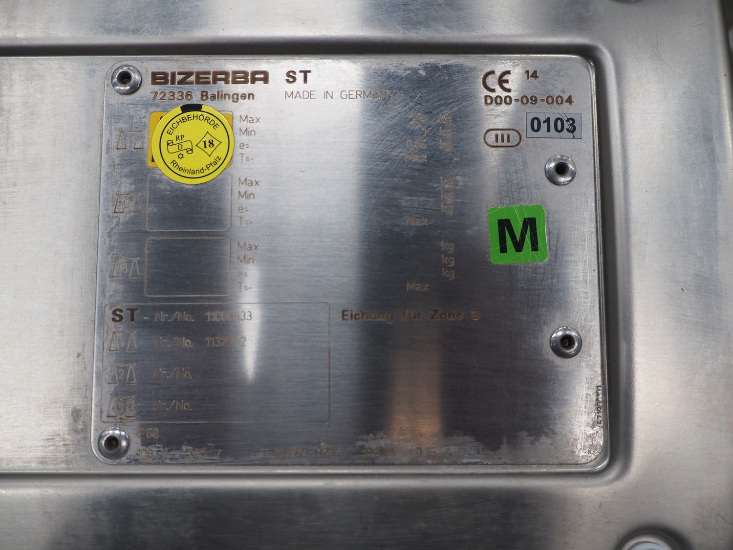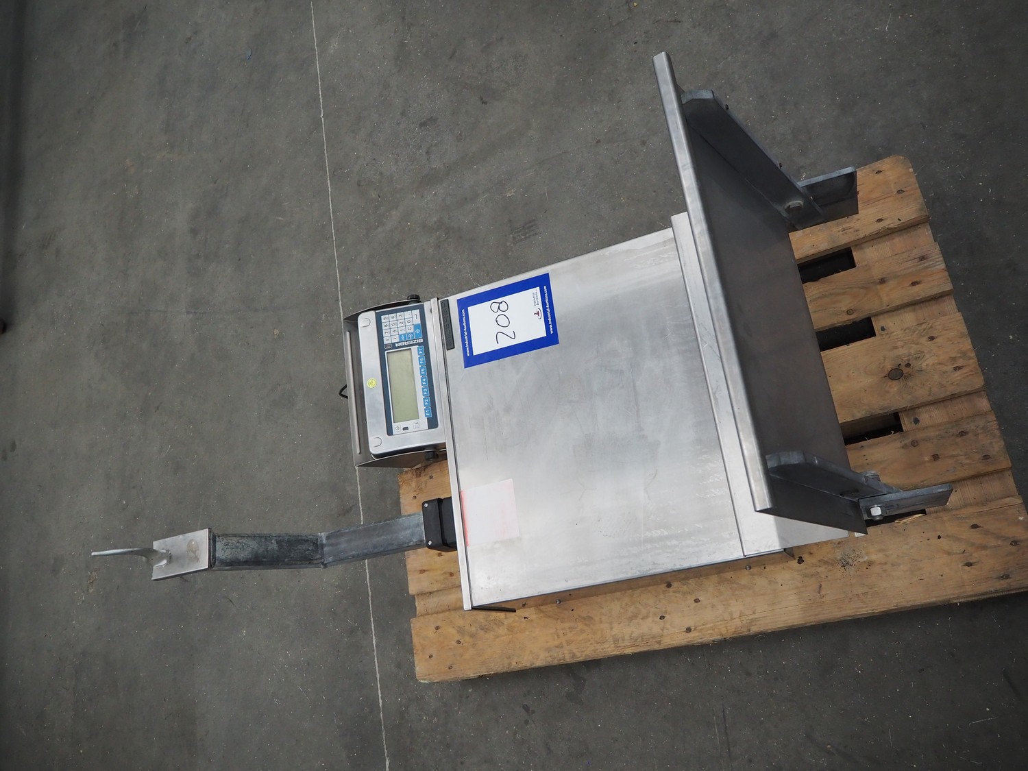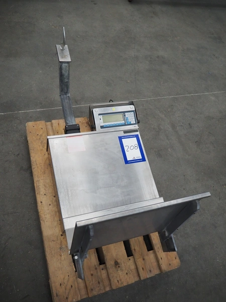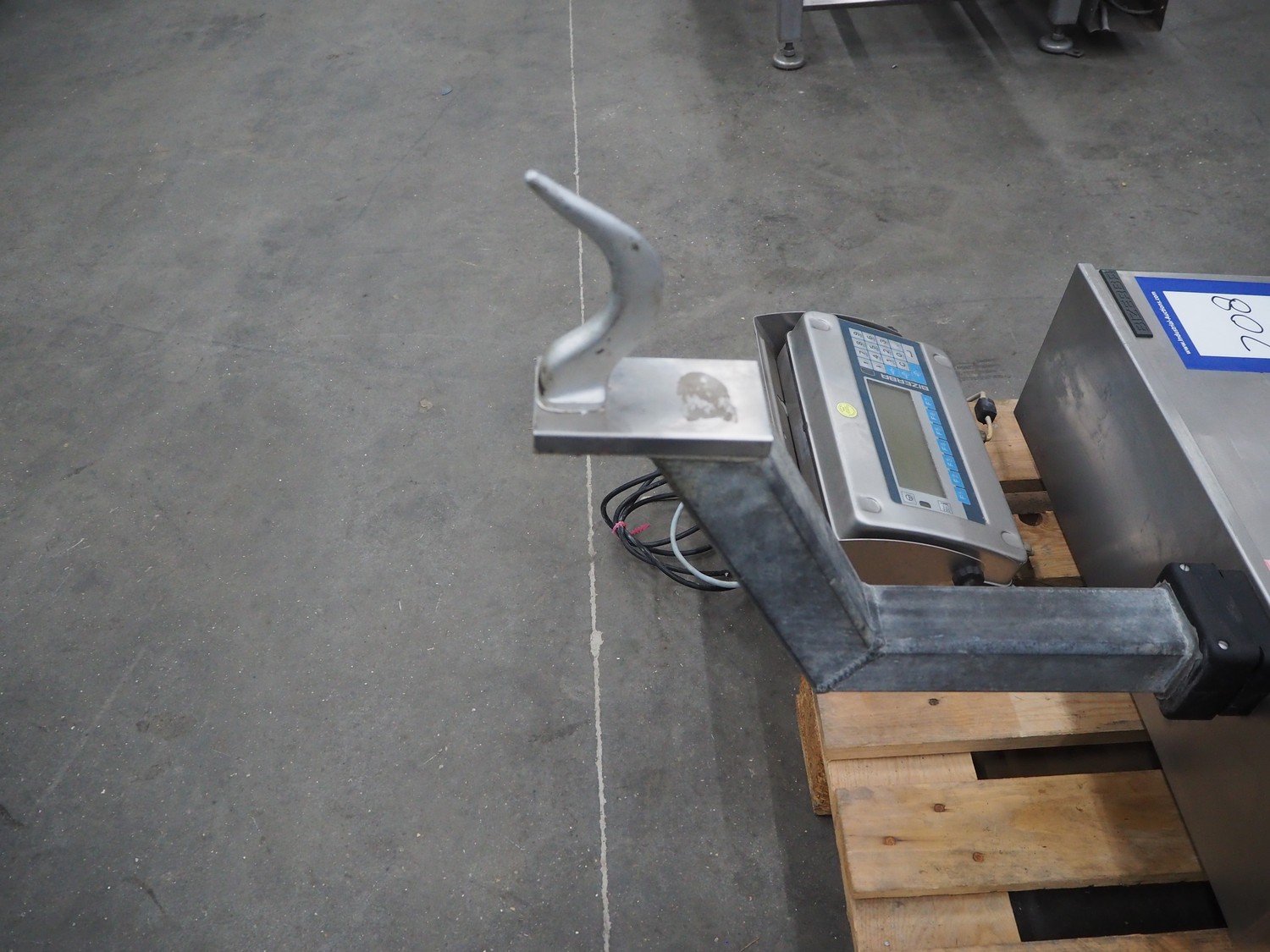 Bizerba hook weighing scale, type: ST, number: 11008533, 240 V, 50/60 Hz, 0.25 A, maximum weight: 150 kg, minimum weight: 1 kg, e= 0.05 kg, dimensions: 600 mm x 700 mm x 1300 mm.