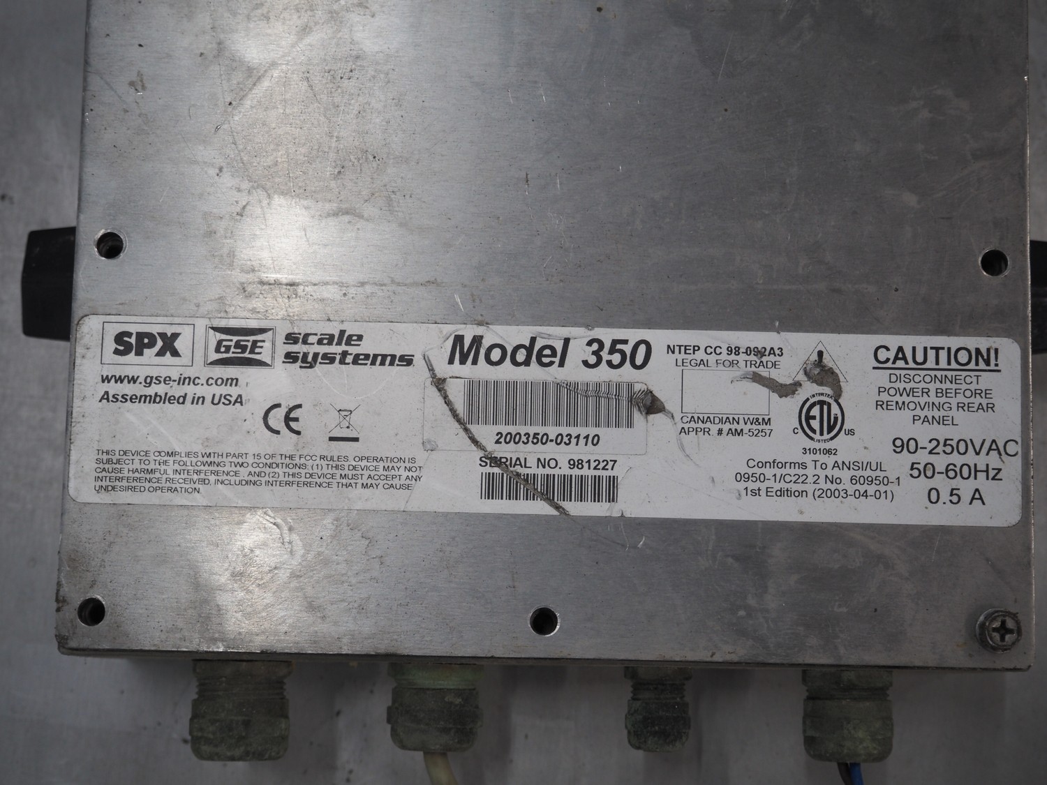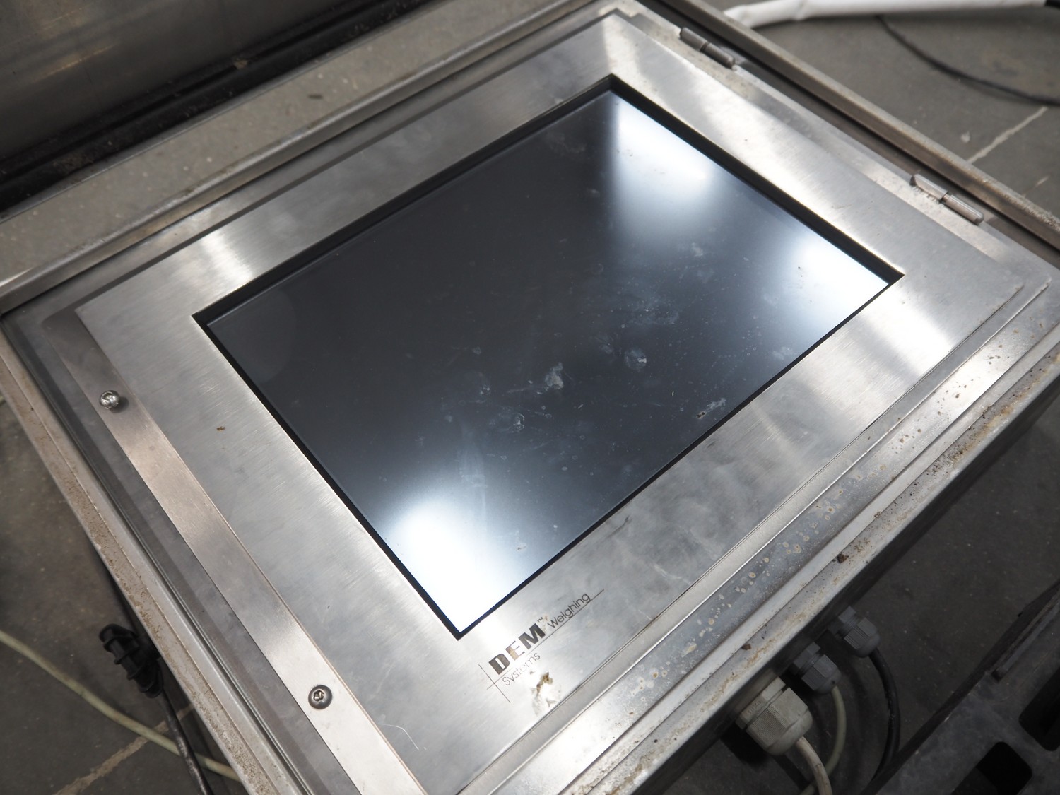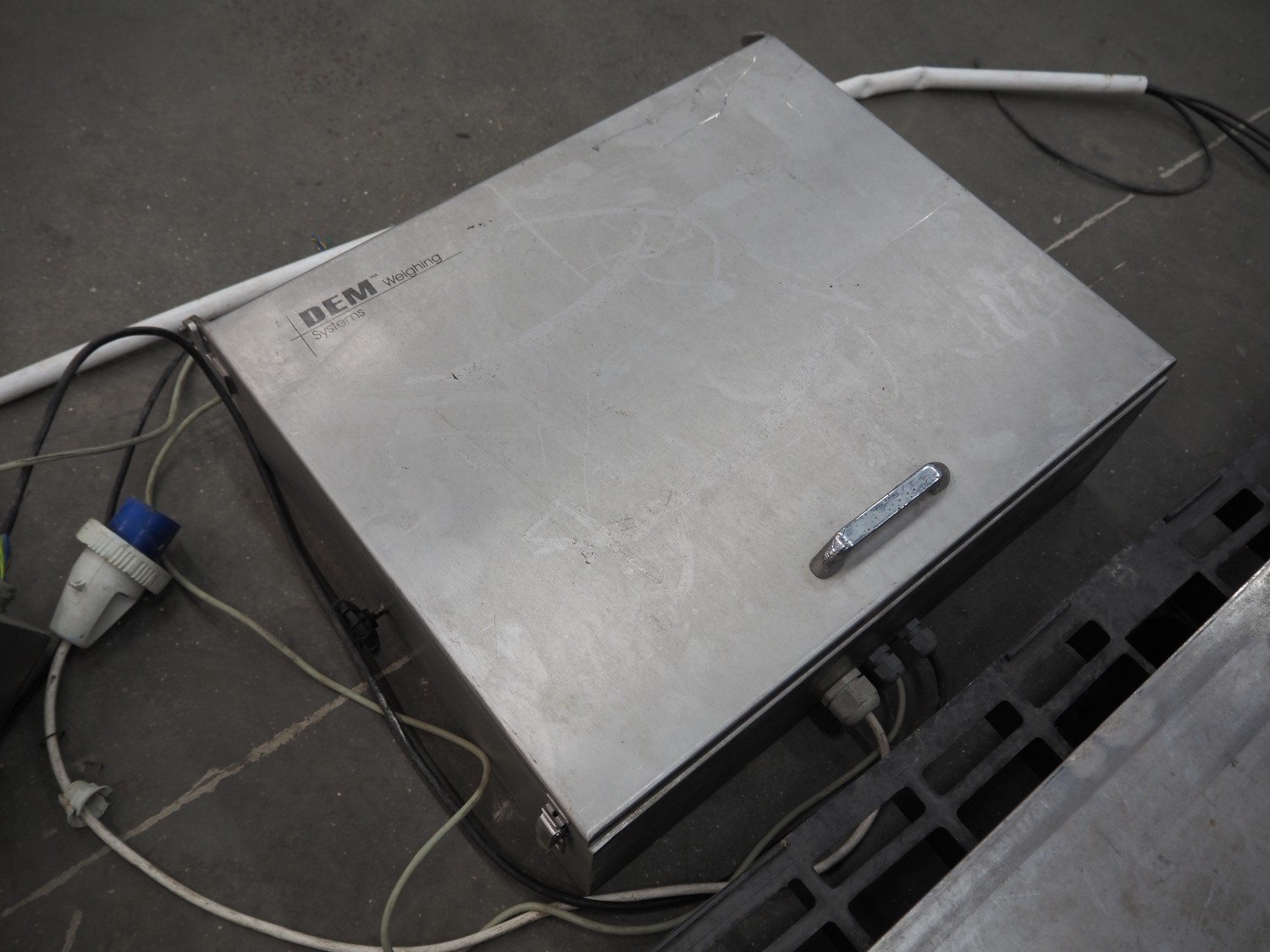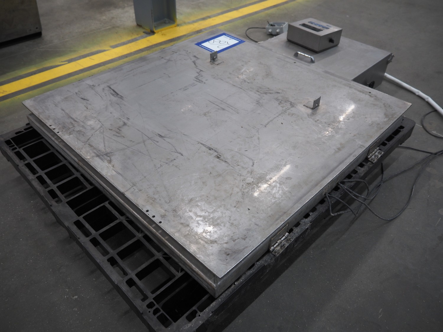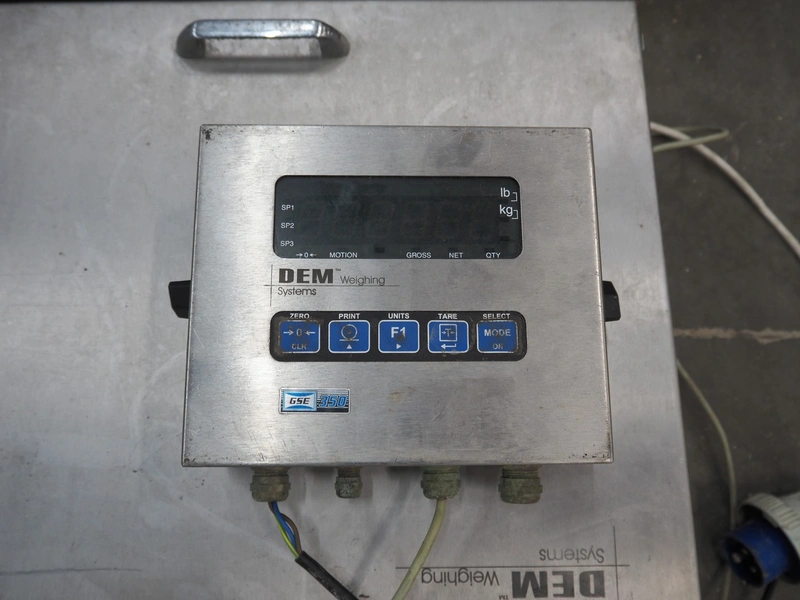 DEM weighing systems weighing scale and indicator, model: GSE 350, scale dimensions: 1000 mm x 1000 mm.