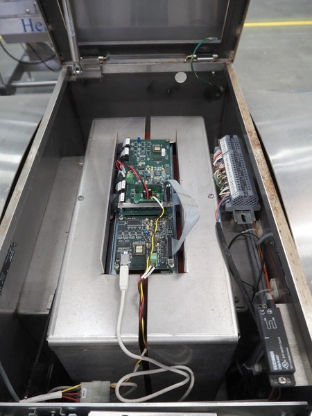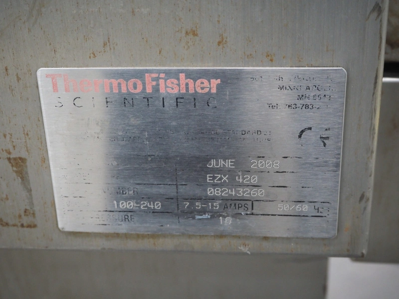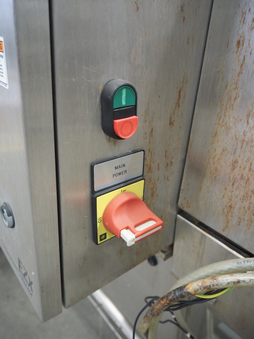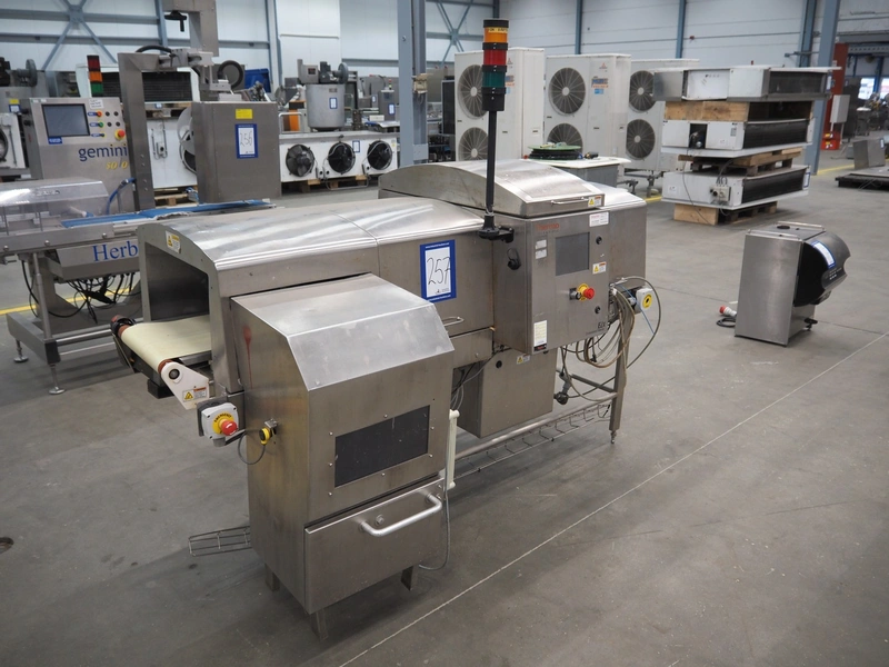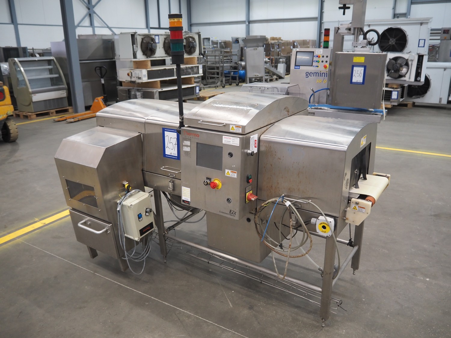 Thermo Fischer x-ray scanner with rejecter, type: EZX 420, serial number: 08243260, year of construction: JUNE 2008, 100-240 V, 50//60 Hz, 7.5-15 A, plastic belt, belt width: 310 mm, clearance: 380 mm x 190 mm, total dimensions: 2000 mm x 1100 mm x 1730 mm.