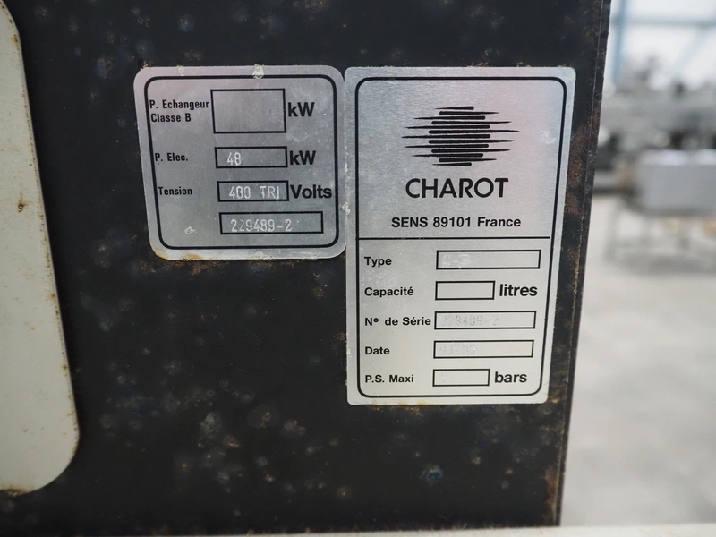 Charot boiler, serial number: 229-98-2, year of construction: 09-93, 400 V, 48 kW, dimensions: 780 mm x 600 mm x 1800 mm.