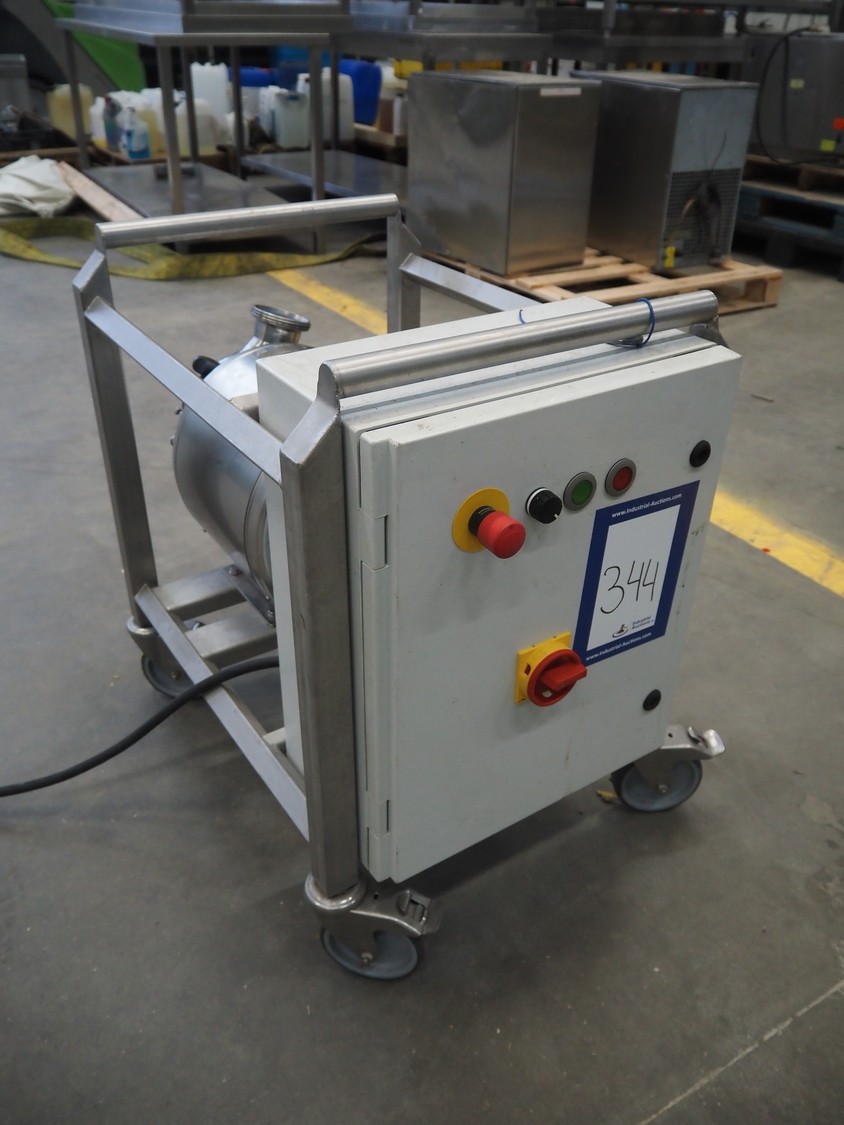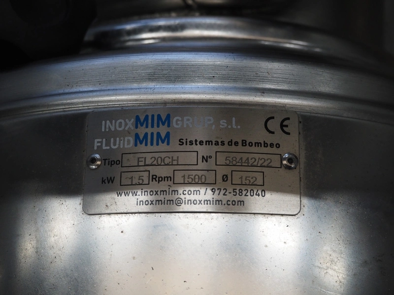 Inox MIM Grup S.L. mobile centrifugal pump, type: FL20CH, number: 58442/22, 4 kW, 1500 rpm, dimensions: 1000 mm x 520 mm x 750 mm.