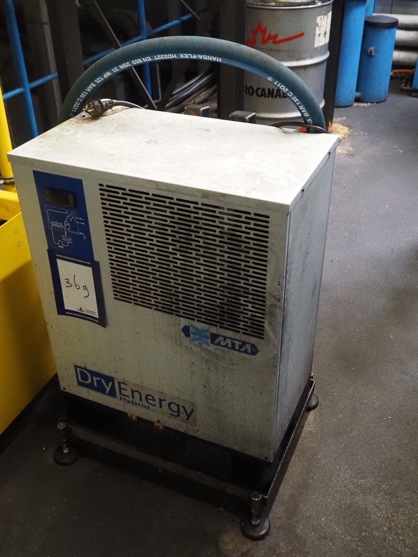 M.T.A. S.p.A. air dryer, model: DE 032, serial number: 2200207619, year of construction: 2012, 230 V, 1 Ph, 50 Hz, 3.7 A, 0.72 kW, refrigerant: R134a (0.600 kg), dimensions: 700 mm x 700 mm x 950 mm.