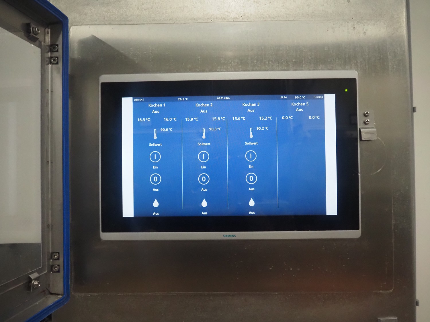 S/s switch cabinet with Siemens touch screen, dimensions: 600 mm x 200 mm x 750 mm.