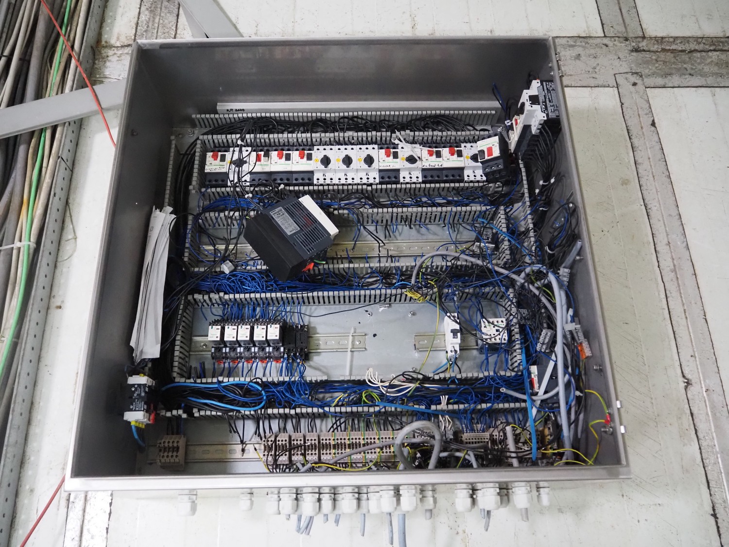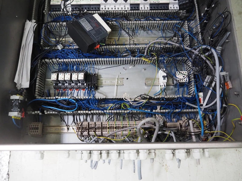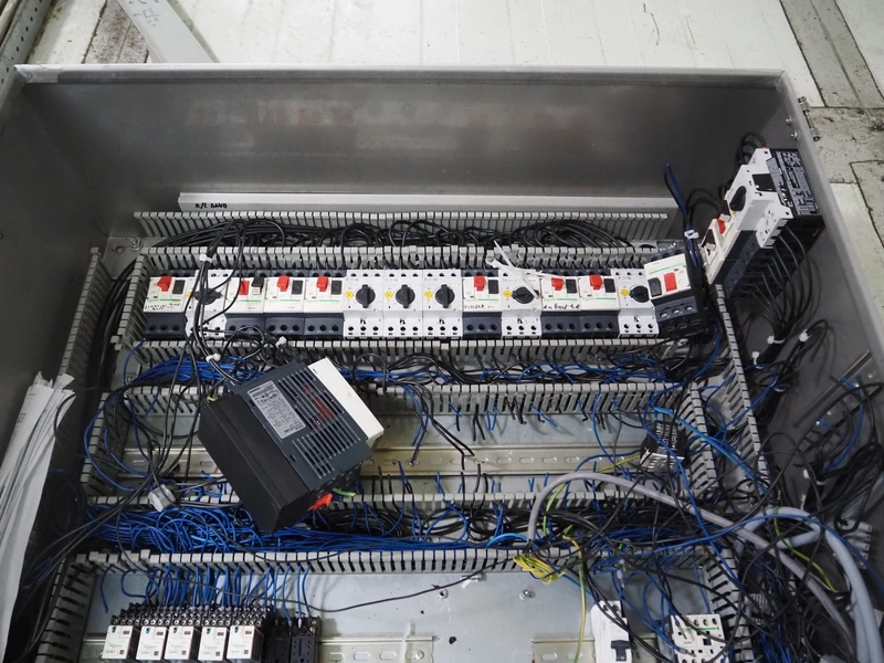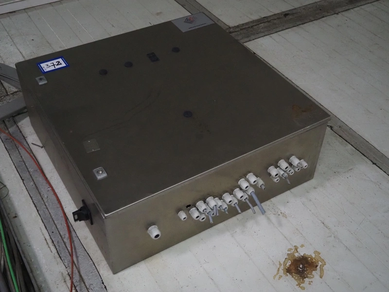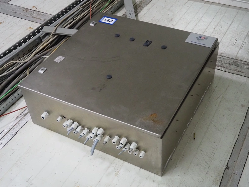 ACB Solutions switch cabinet used for transport belt system, dimensions: 800 mm x 800 mm x 320 mm.