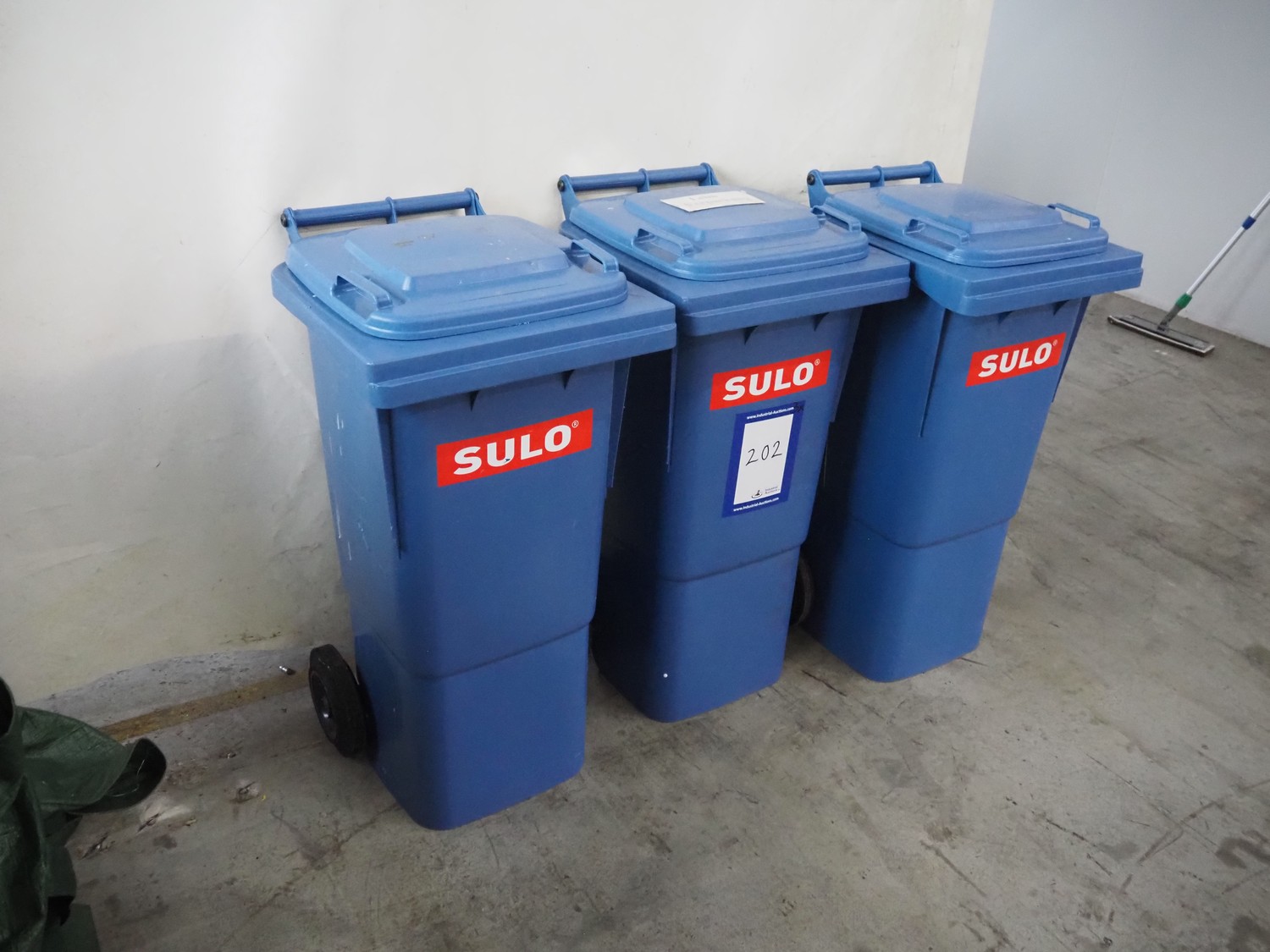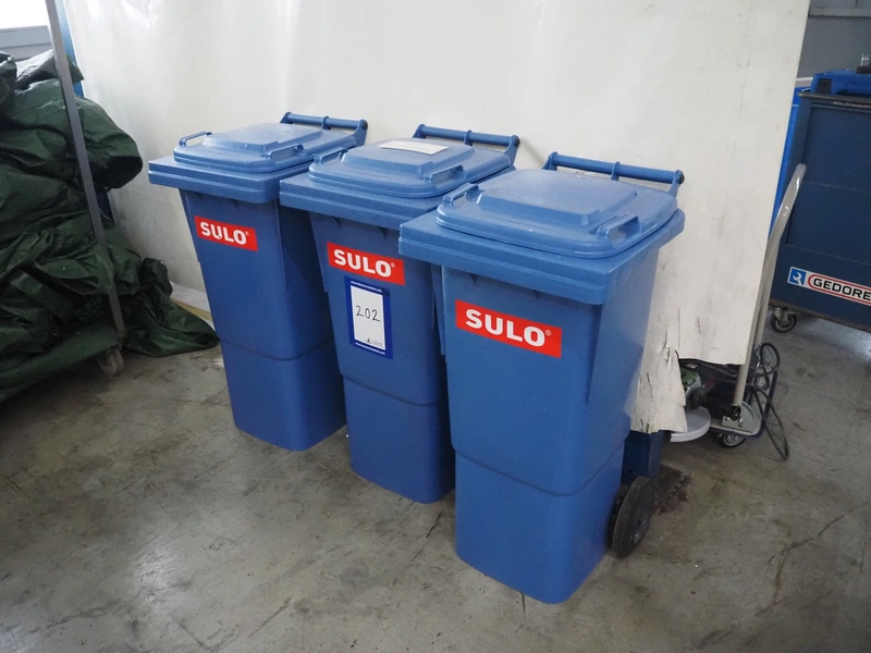 3 Sulo plastic waste containers, dimensions: (3x) 530 mm x 440 mm x 940 mm. Including large amount of glue pellets.