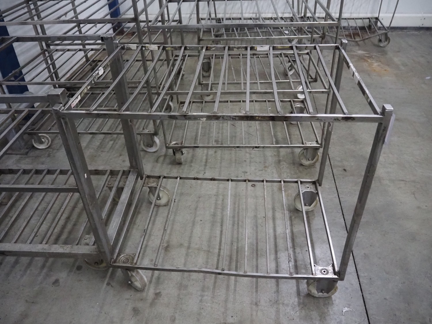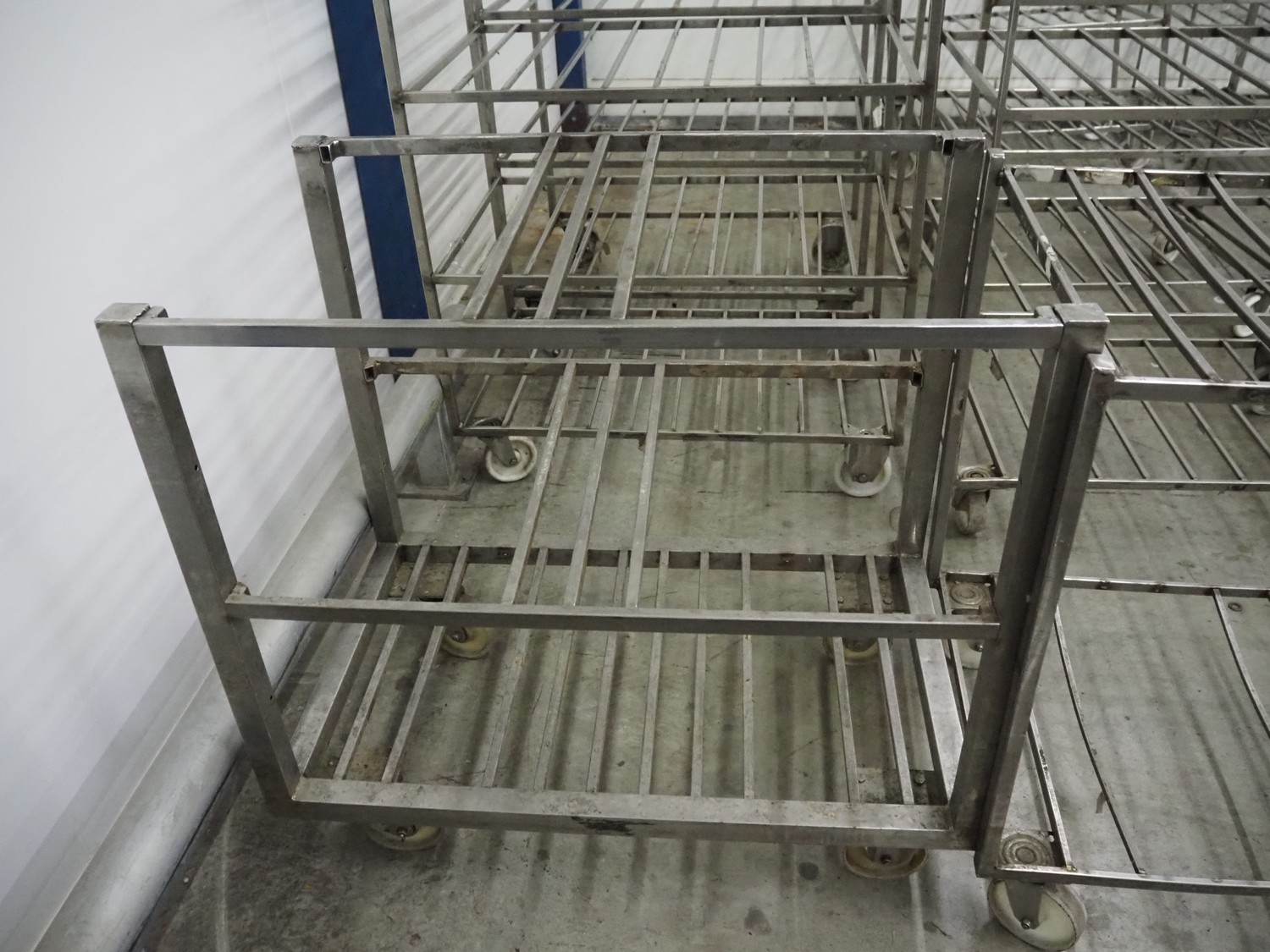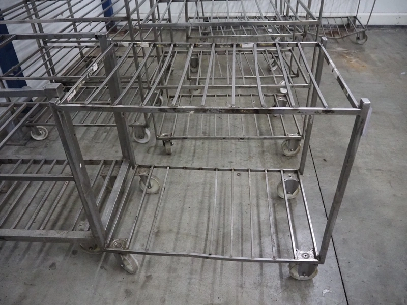 2 s/s trolleys, dimensions: (2x) 950 mm x 600 mm x 900 mm.