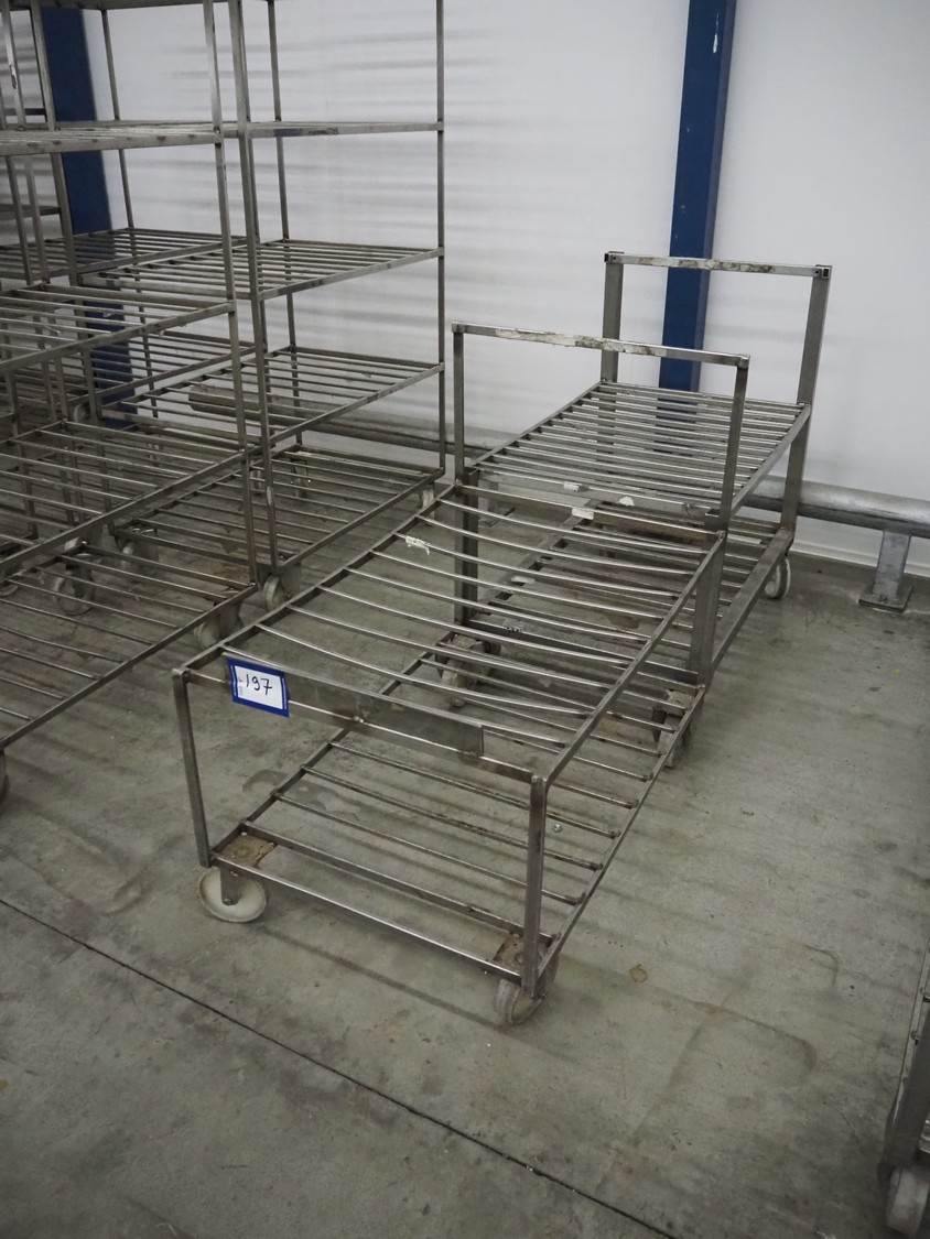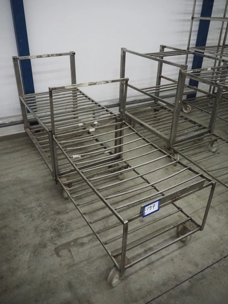 2 s/s trolleys, dimensions: (2x) 900 mm x 600 mm x 900 mm.
