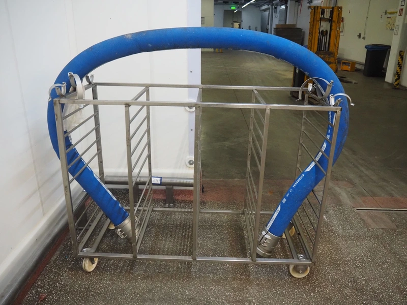 S/s trolley with Trelleborg hose, dimensions trolley: 1450 mm x 600 mm x 1100 mm.