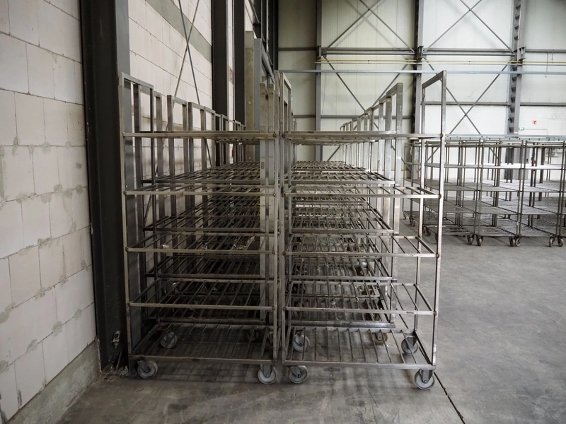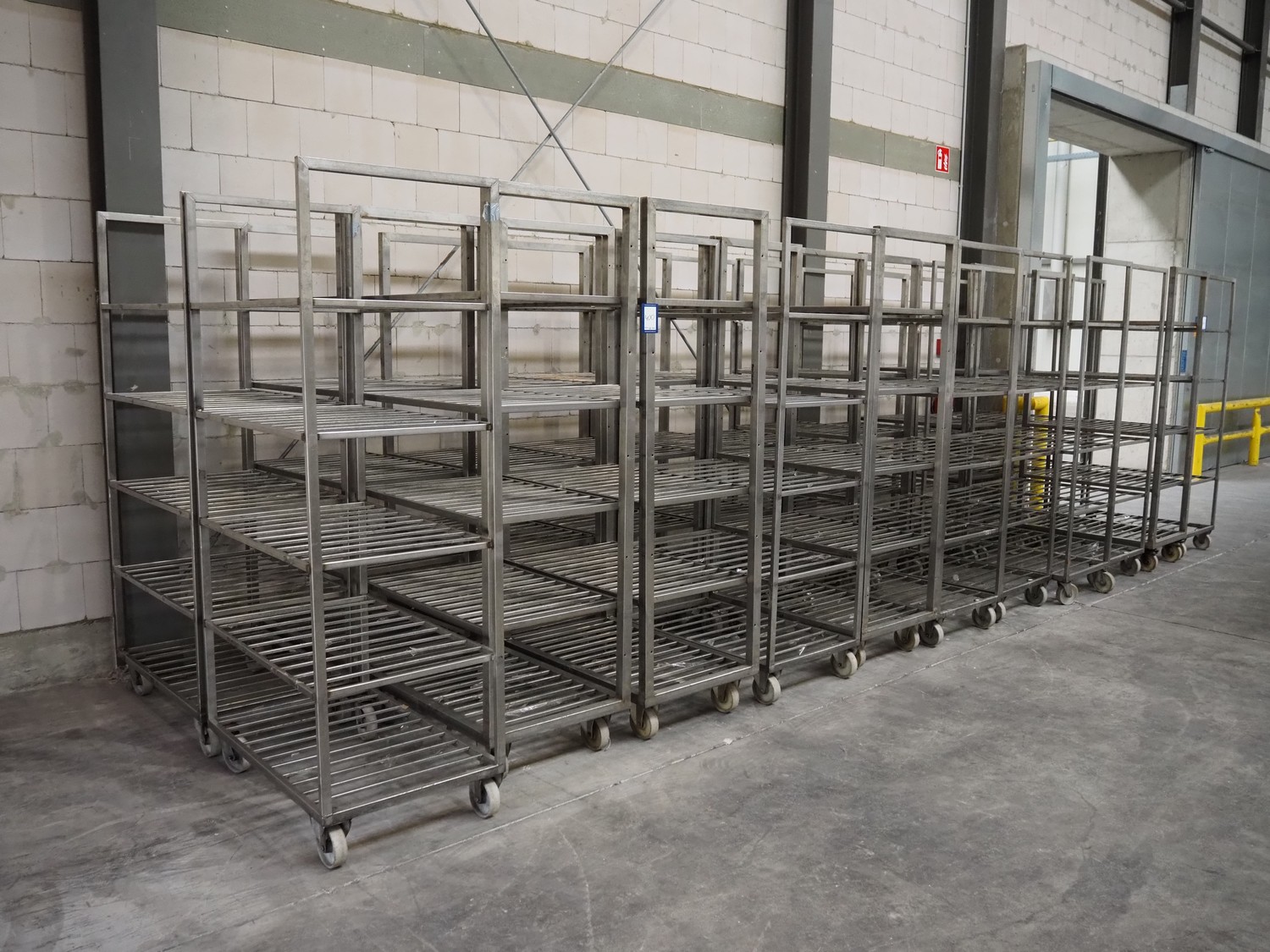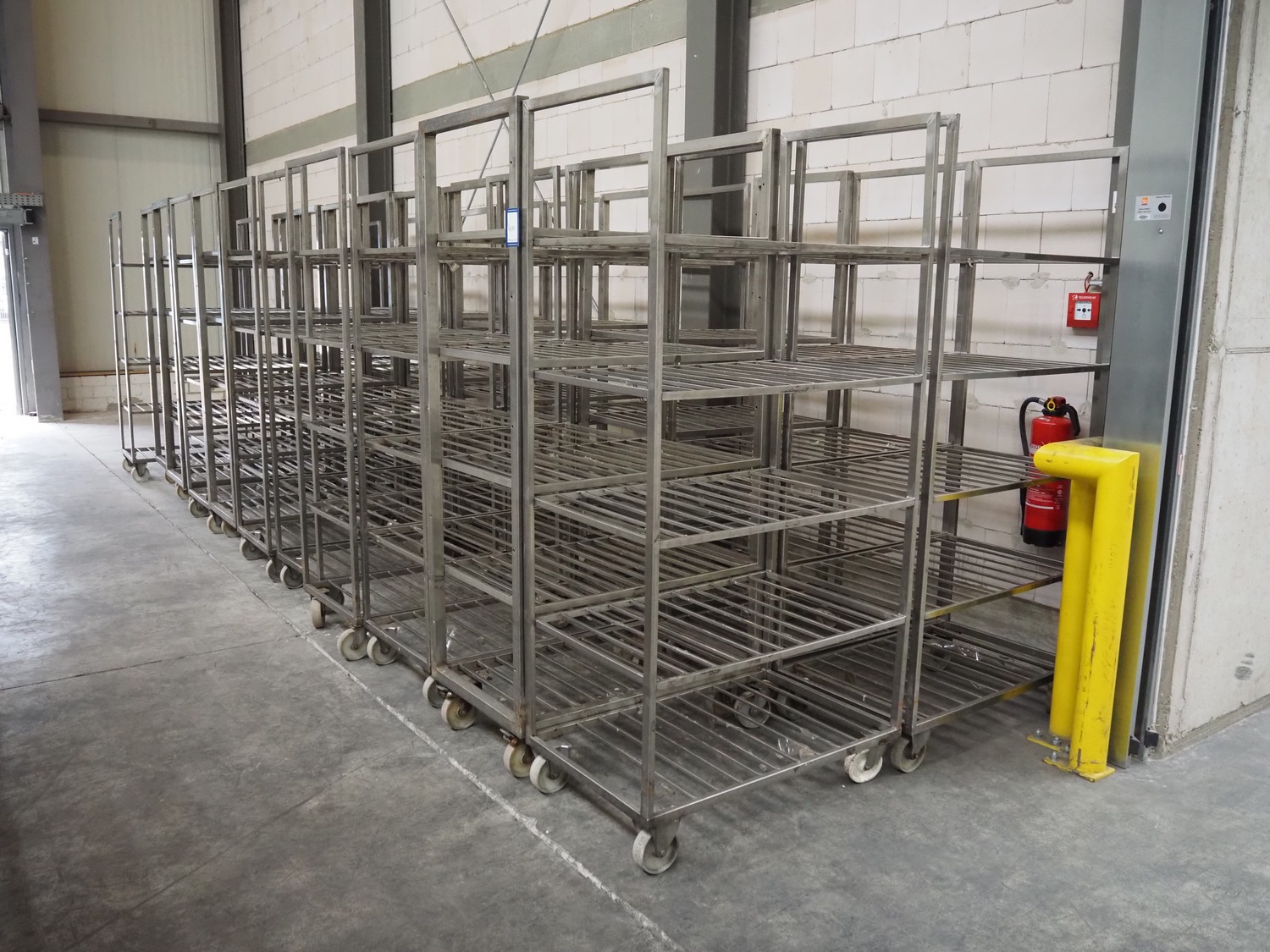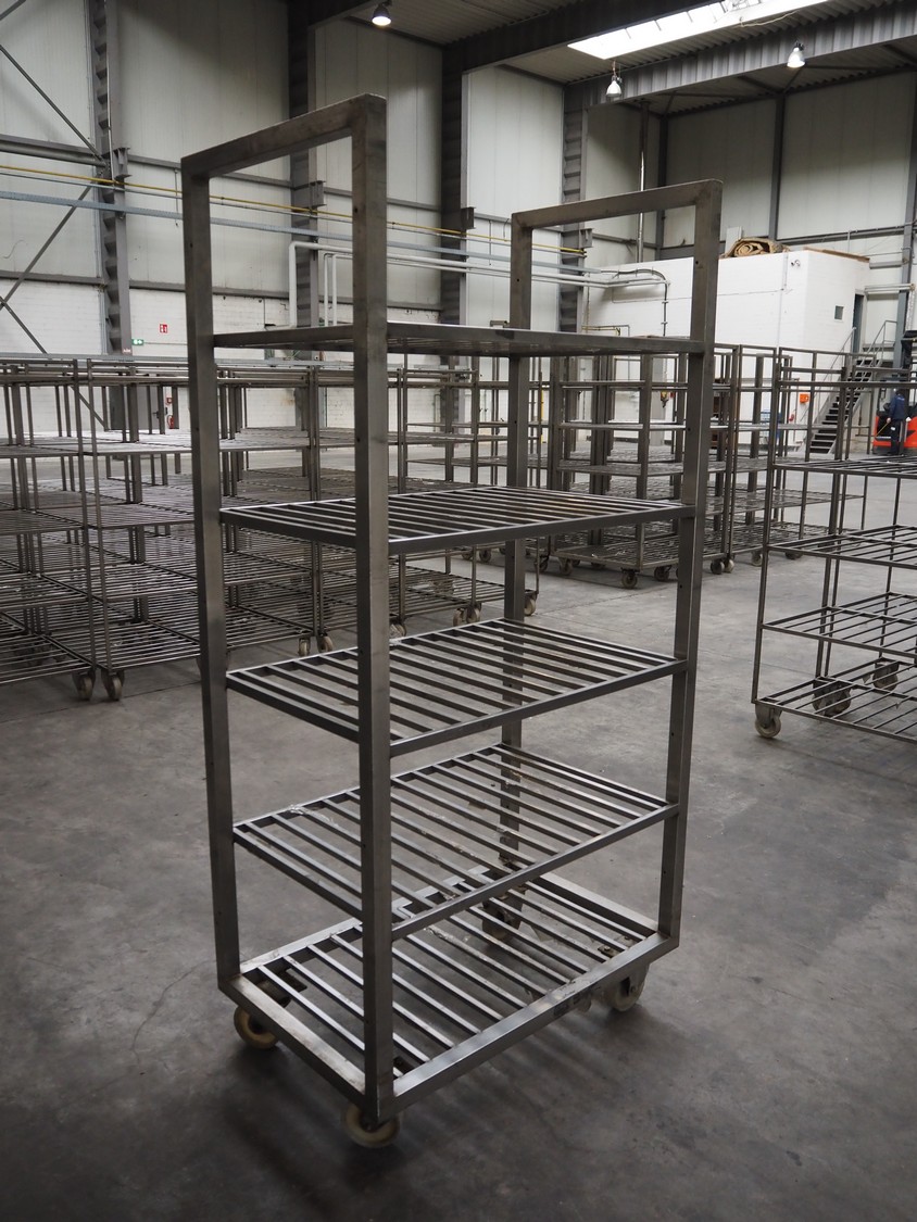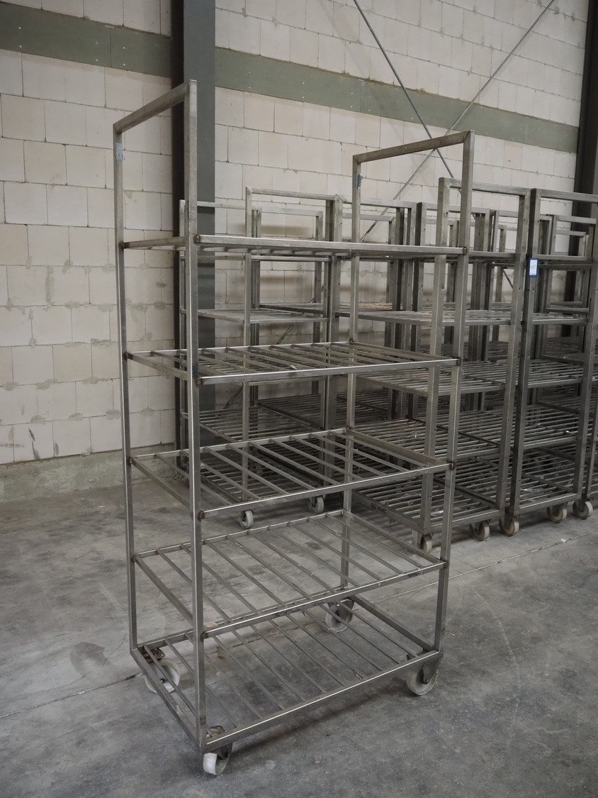 22 s/s trolleys, 5 floors, floor dimensions: (5x) 910 mm x 600 mm, total dimensions: (22x) 950 mm x 600 mm x 1950 mm.