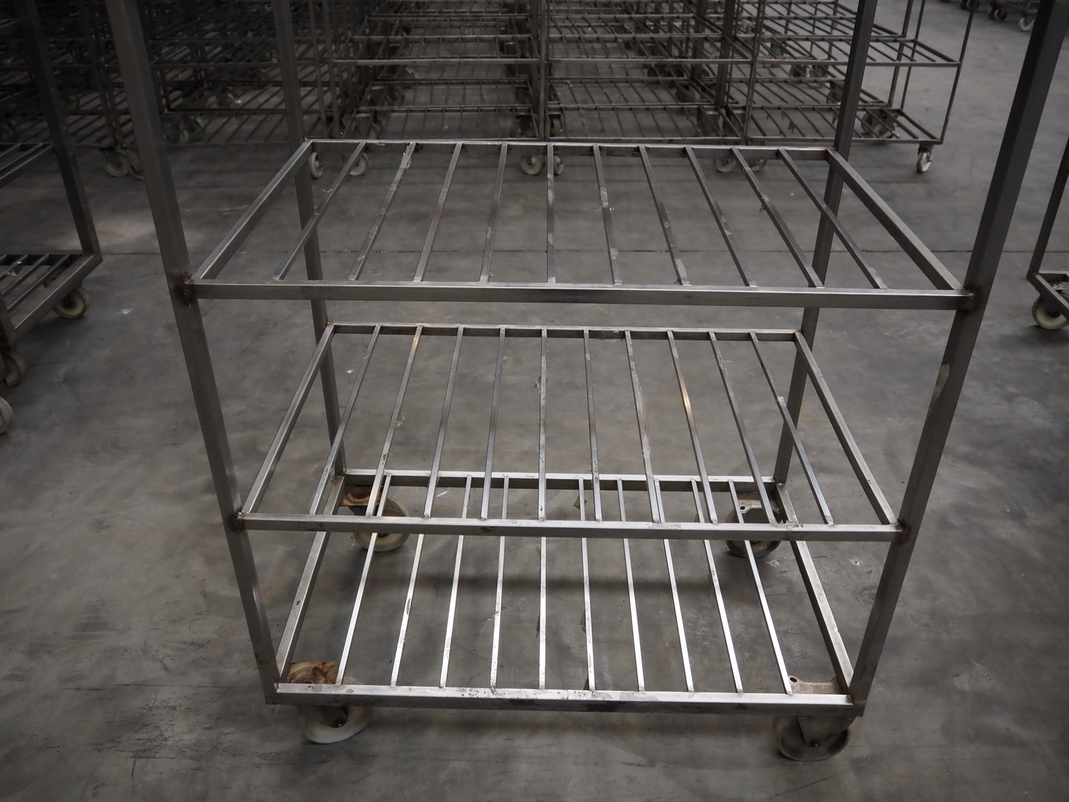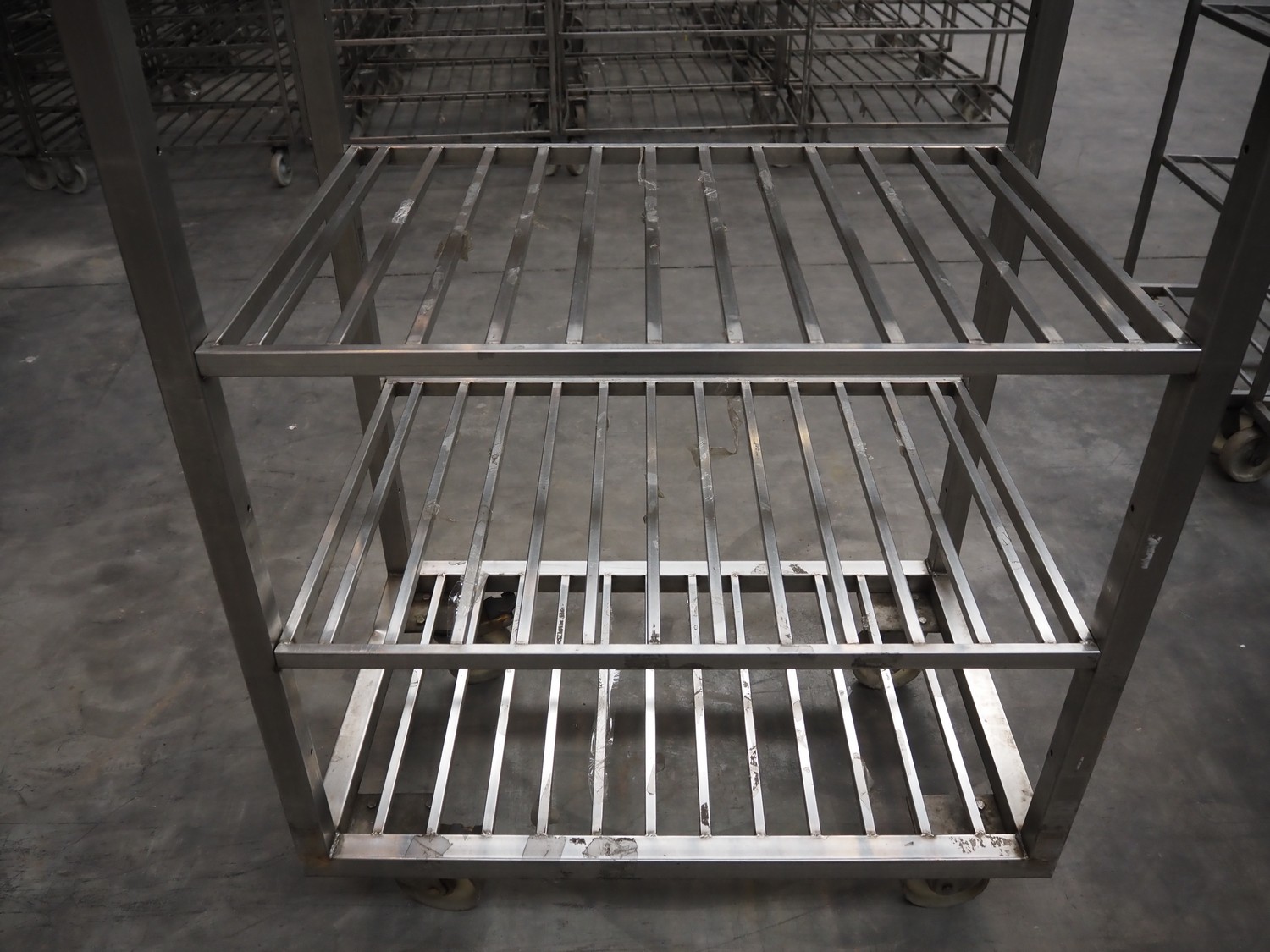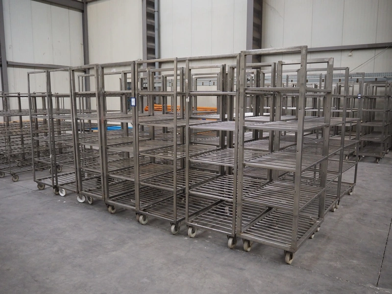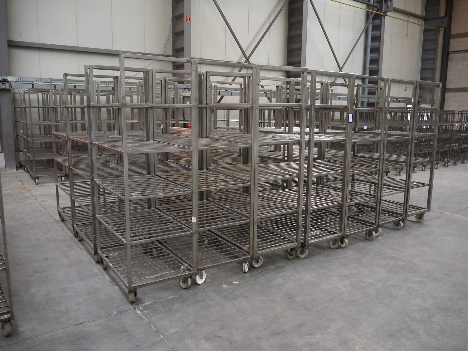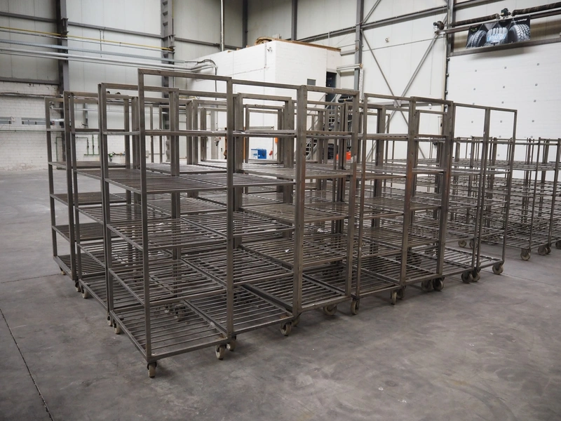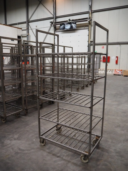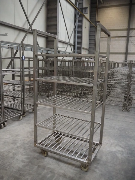 21 s/s trolleys, 5 floors, floor dimensions: (5x) 910 mm x 600 mm, total dimensions: (21x) 950 mm x 600 mm x 1950 mm.