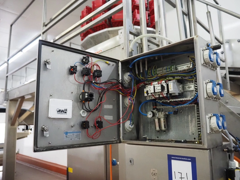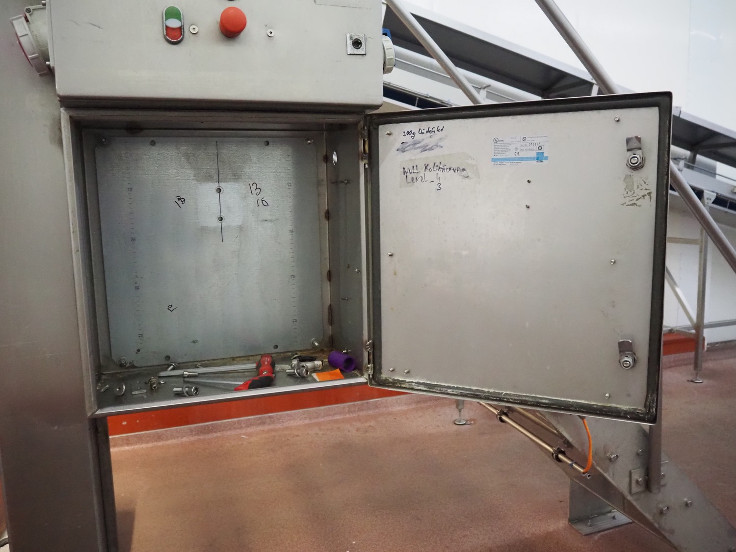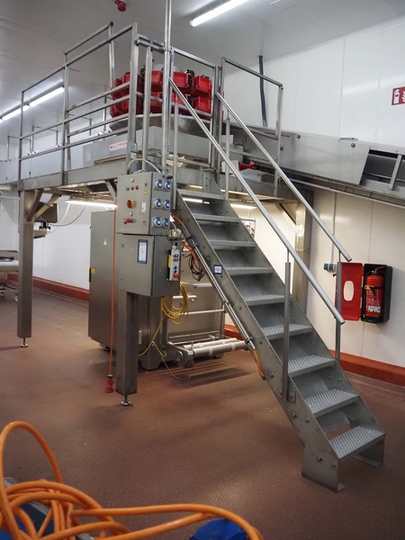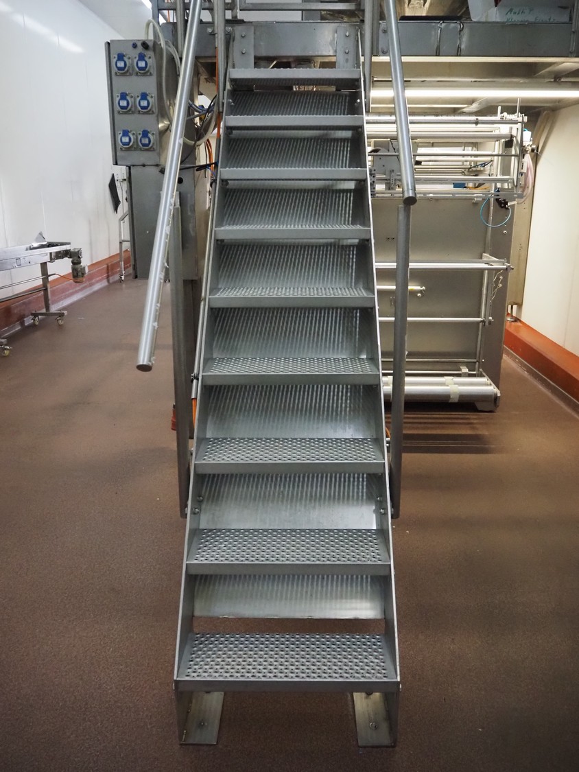 S/s platform, 9 steps, working height: 2300 mm, total dimensions: 5000 mm x 2900 mm x 3500 mm. Including s/s switch cabinet and s/s cabinet.