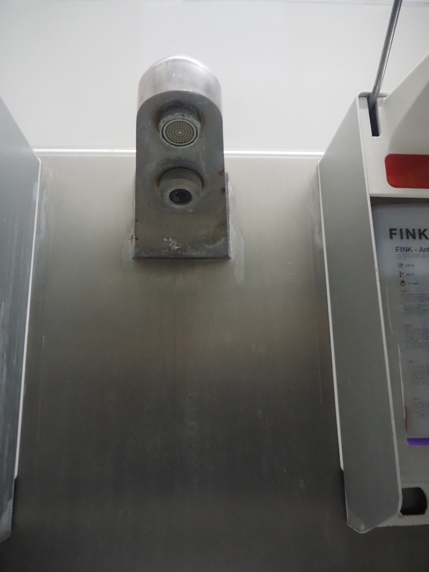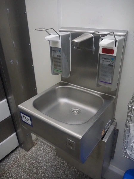 Itec s/s sink with 2 soap dispensers, sensor control, dimensions sink: 420 mm x 450 mm x 600 mm, s/s paper dispenser and s/s waste bin.