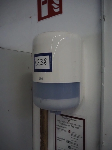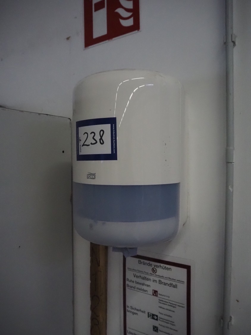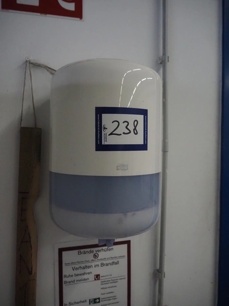 Tork paper dispenser, dimensions: 250 mm x 250 mm x 350 mm.
