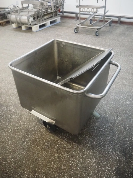 S/s meat bin with drain, volume: 200 liter.