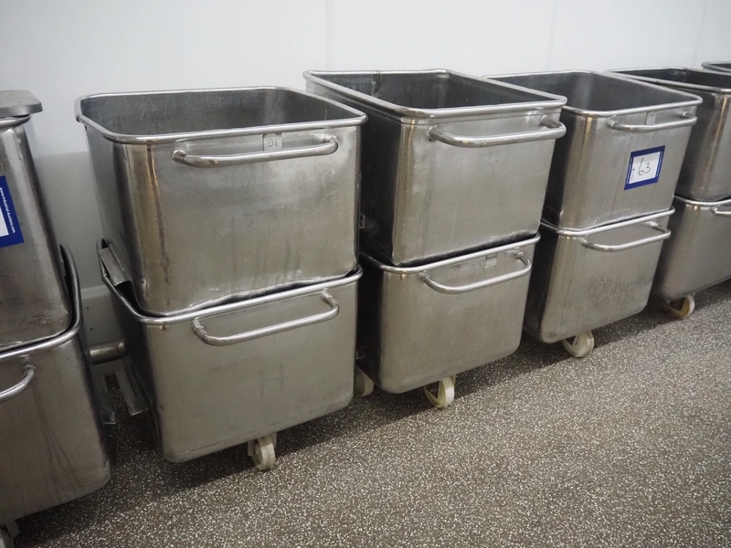 6 s/s meat bins, volume: 200 liter.