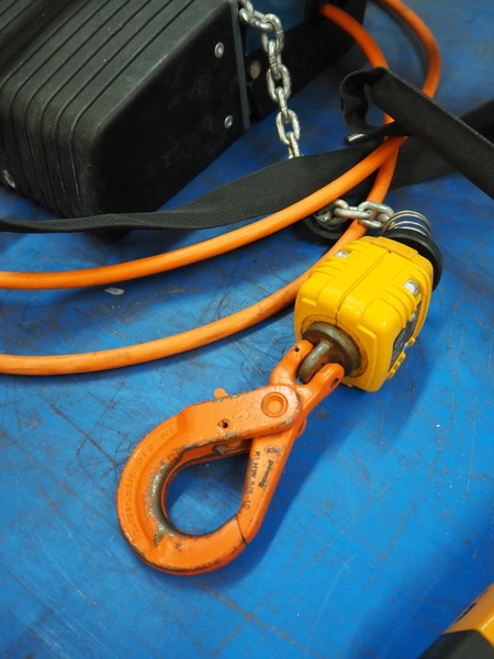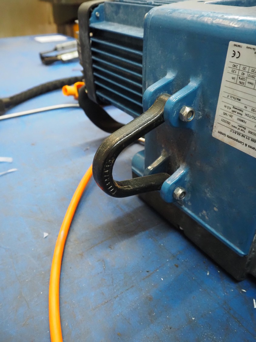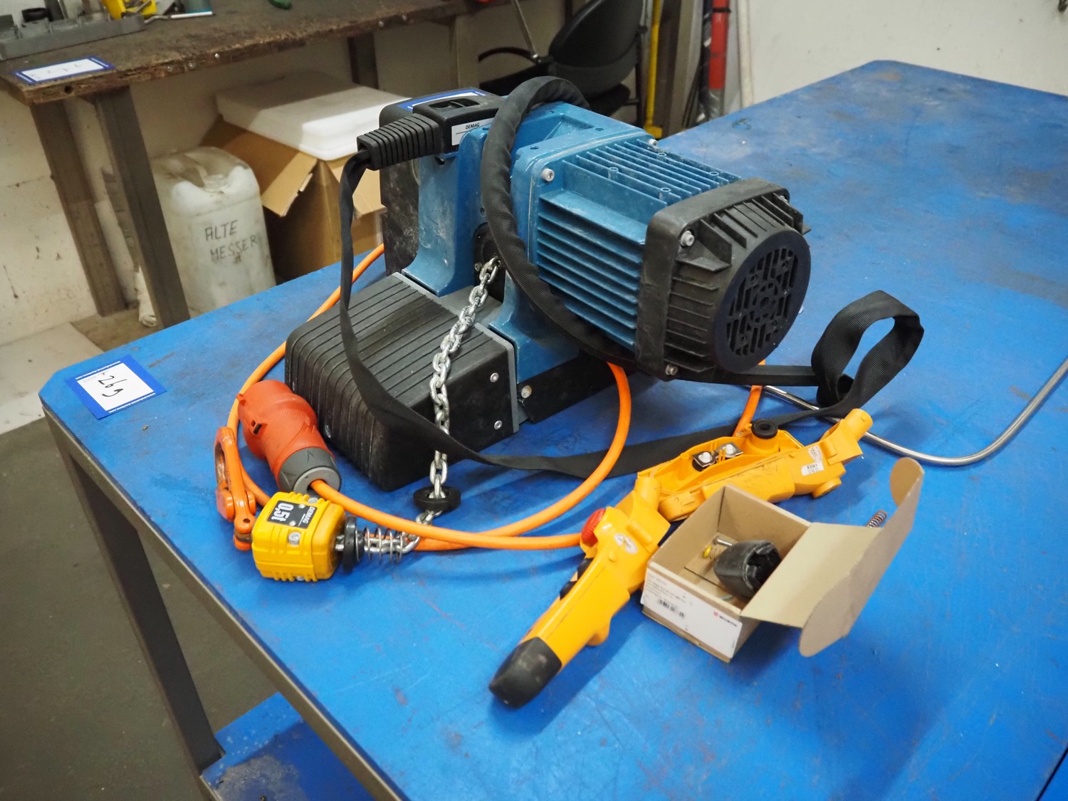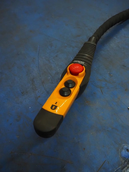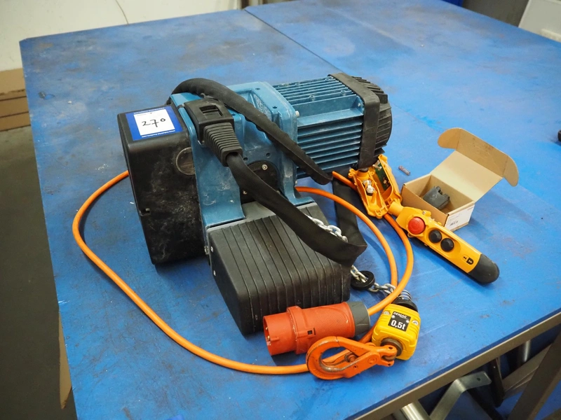 Demag hoist, type: DC-COM 5-500 1/1 H4 V4.5/1.1, serial number: 942255368, year of construction: 05/2021, 380-415 V, 50 Hz, hook path: 4 meter, capacity: 500 kg, dimensions: 500 mm x 300 mm x 500 mm.