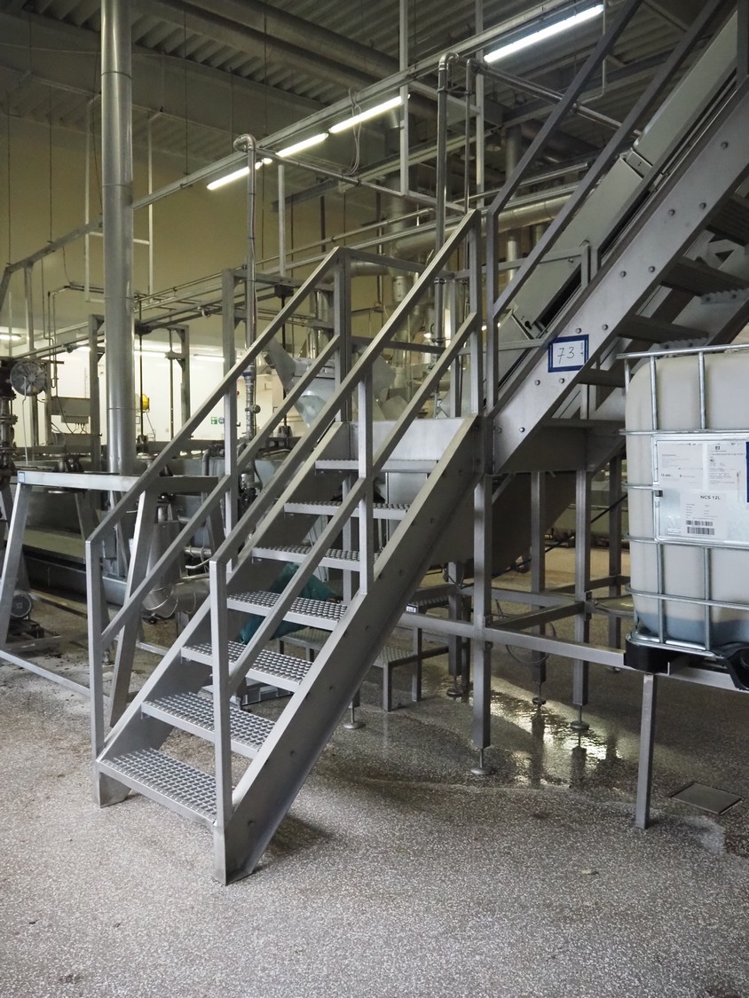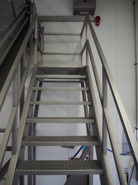 S/s stairs, total dimensions: 2350 mm x 4000 mm x 4700 mm. Can be dismantled in parts.