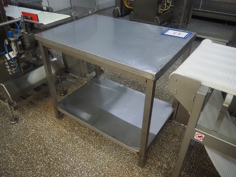 S/s table, 2 floors, dimensions: 1000 mm x 700 mm x 900 mm.
