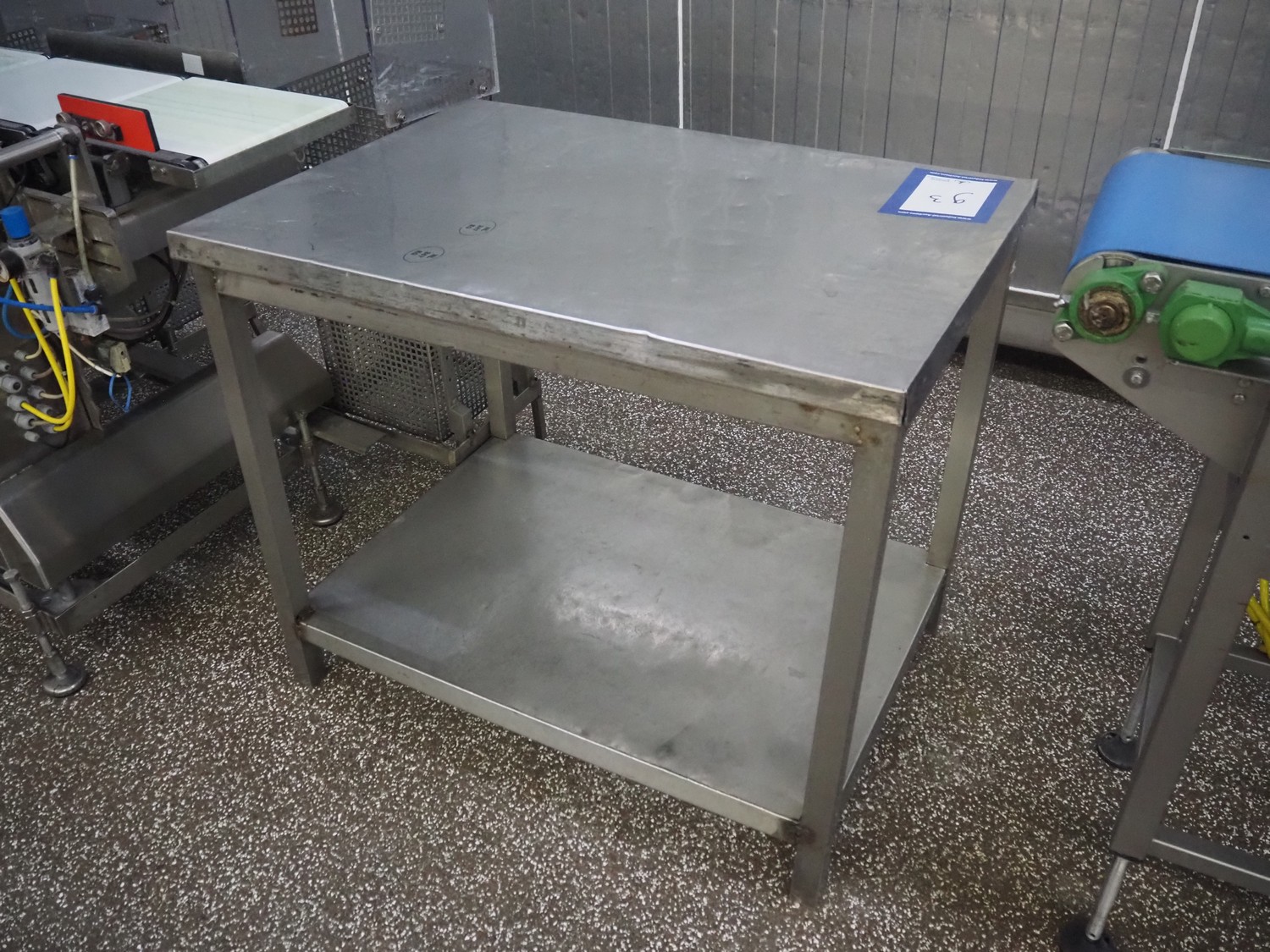 S/s table, 2 floors, dimensions: 1000 mm x 700 mm x 900 mm.