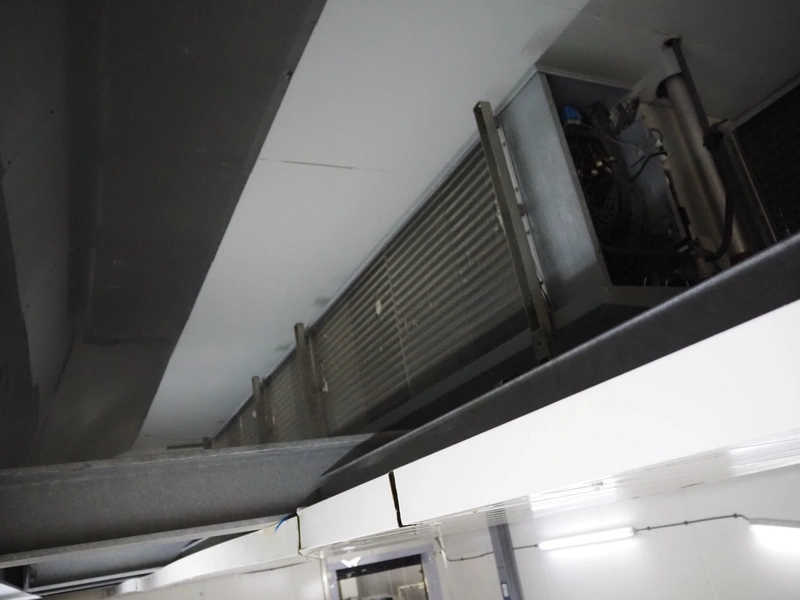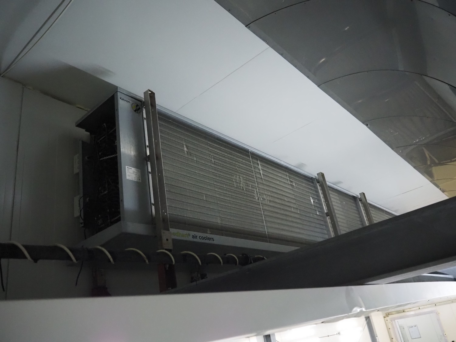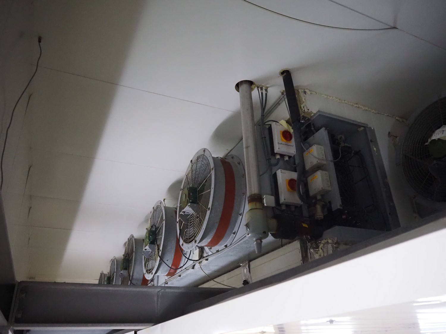 Blast chiller installation consisting of: 2 evaporators, 2x 5 fans, dimensions: (2x) 6300 mm x 600 mm x 1200 mm. Including steel frame, total dimensions frame: 12300 mm x 5500 mm x 2500 mm.