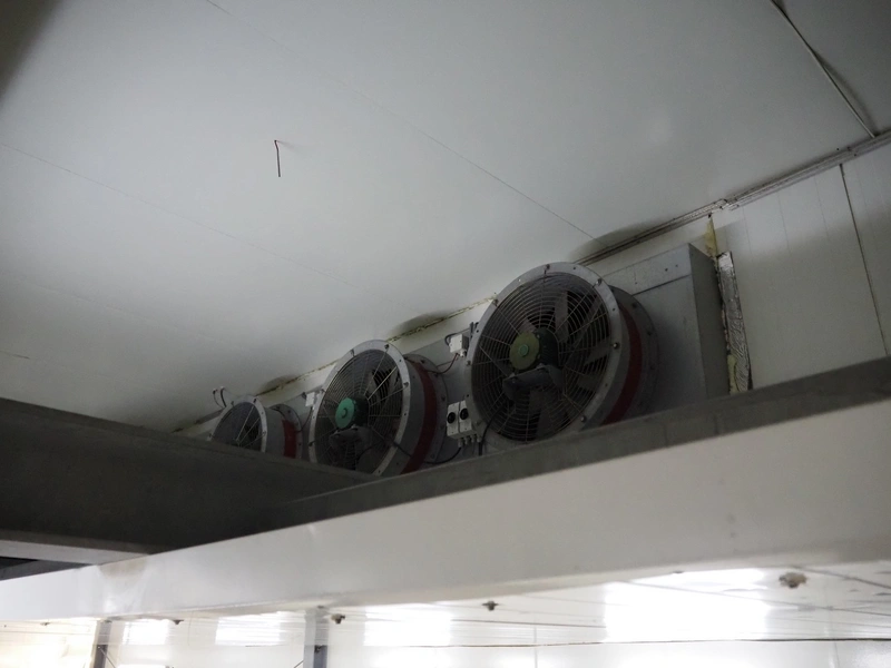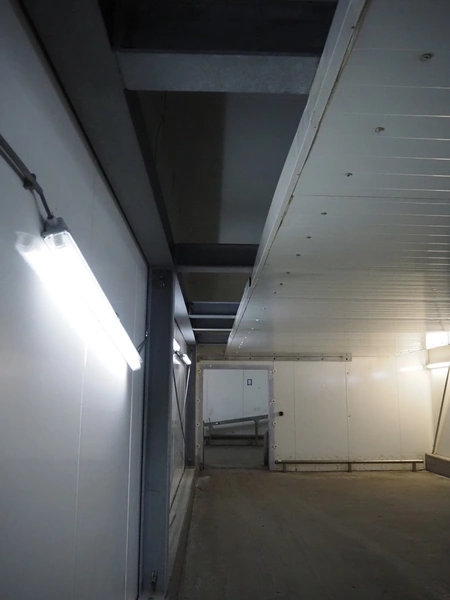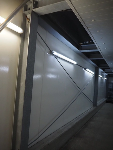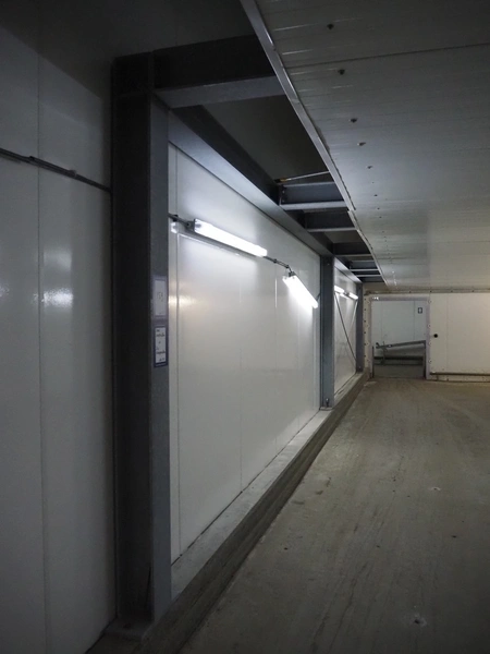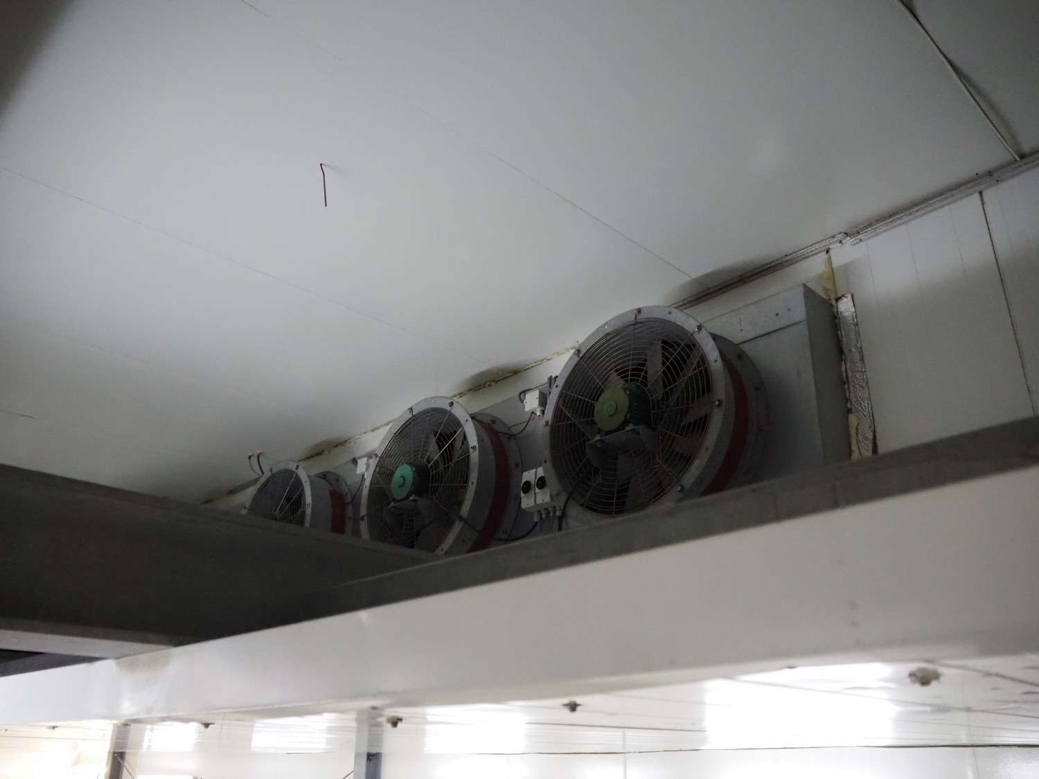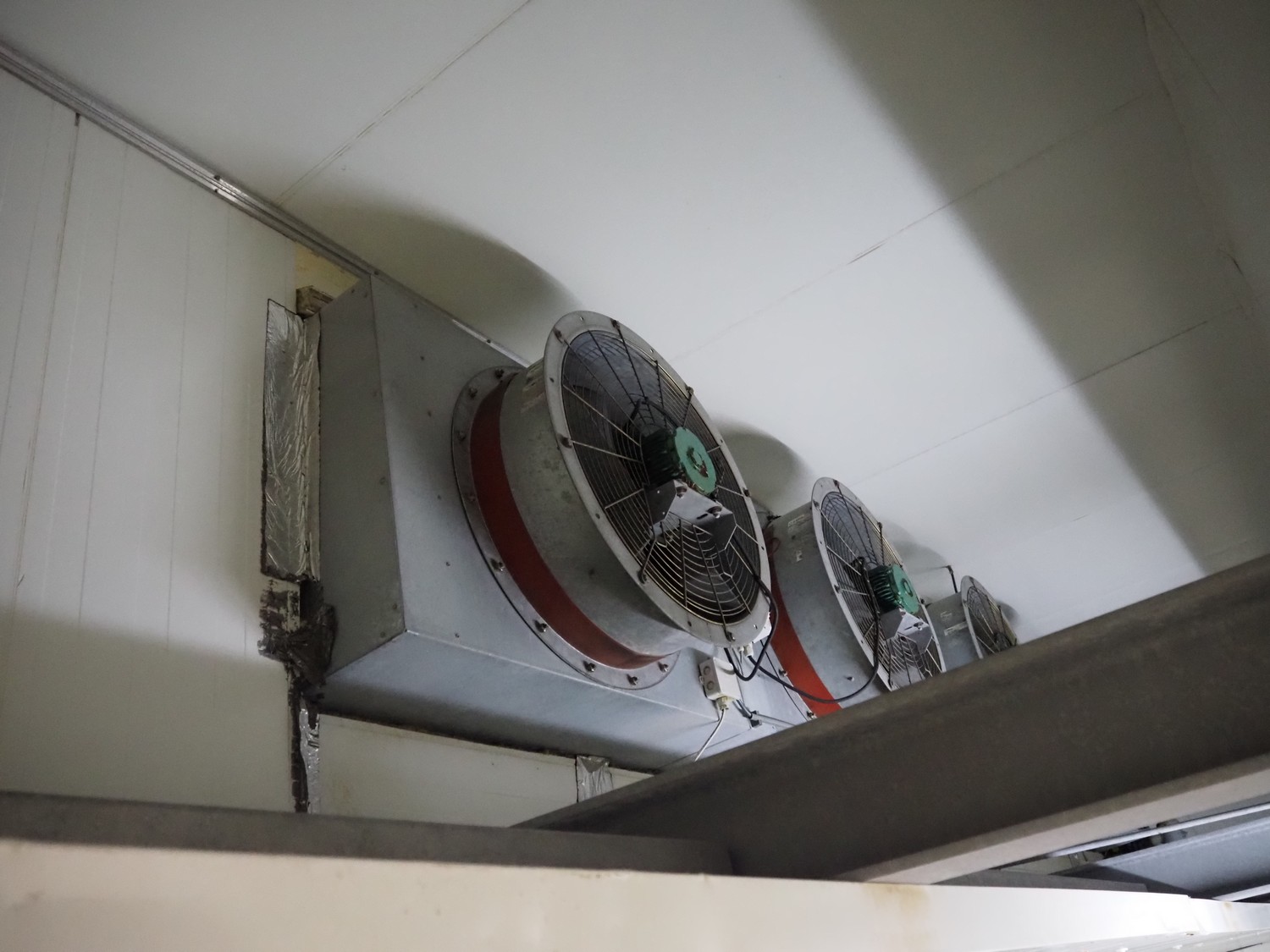 Blast chiller installation consisting of: 2 evaporators, 2x 5 fans, dimensions: (2x) 6300 mm x 600 mm x 1200 mm. Including steel frame, total dimensions frame: 12300 mm x 5500 mm x 2500 mm.