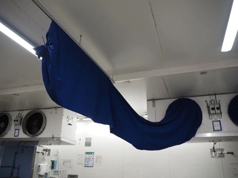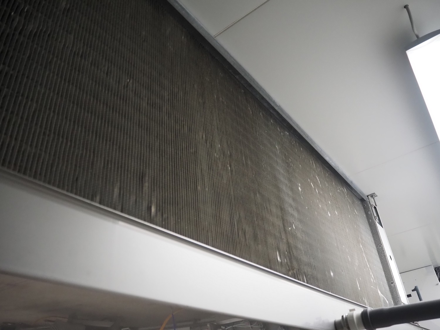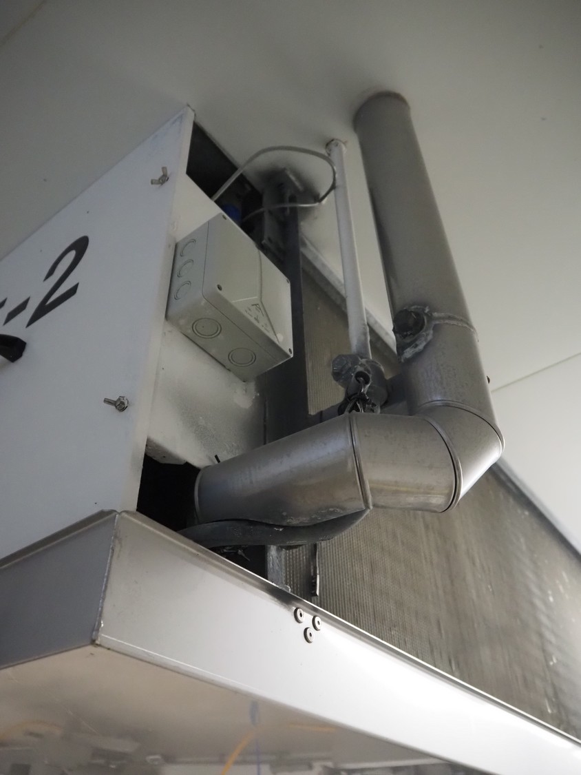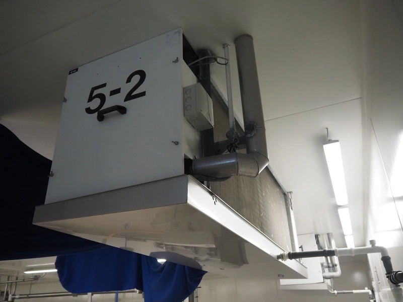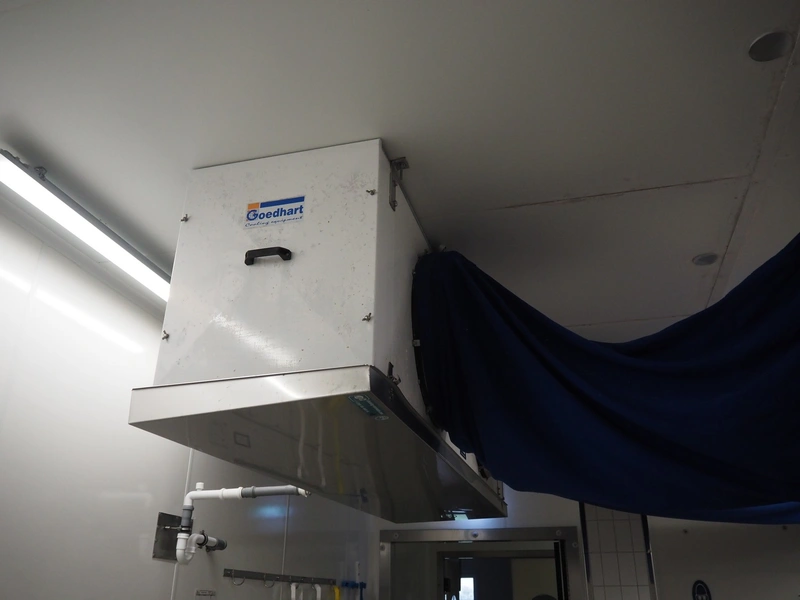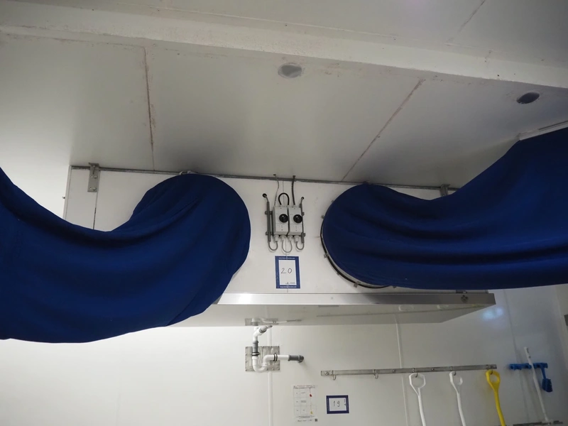 Goedhart evaporator with air socks, 2 fans, dimensions evaporator: 2600 mm x 700 mm x 850 mm, length air socks: 5000 mm / 8000 mm.