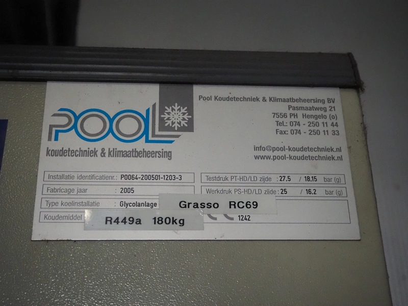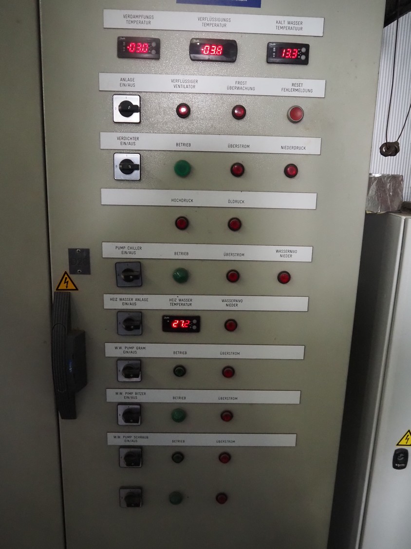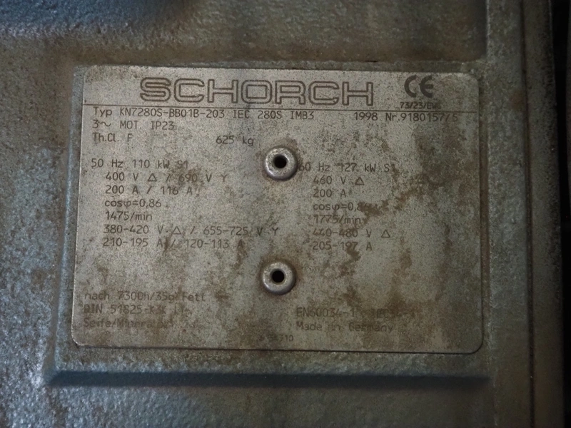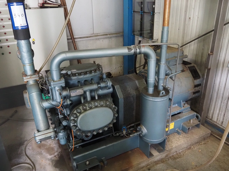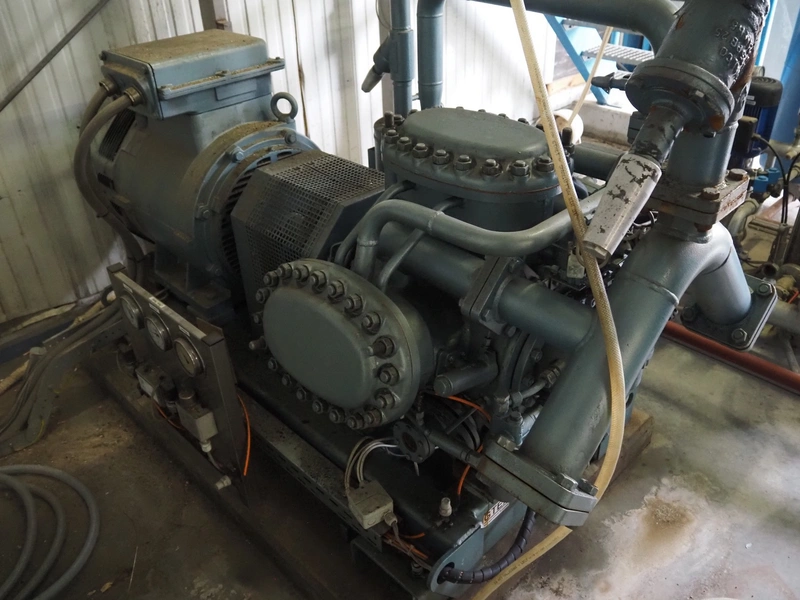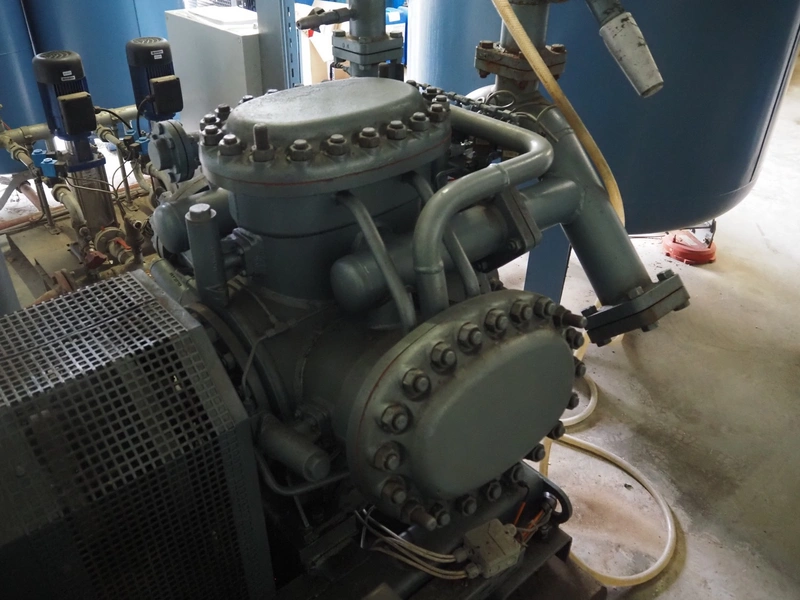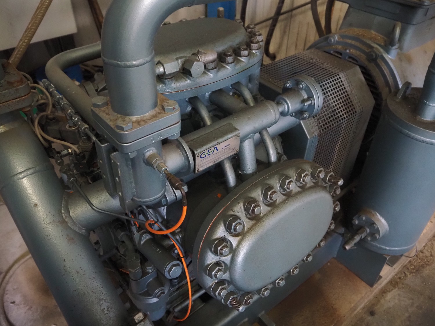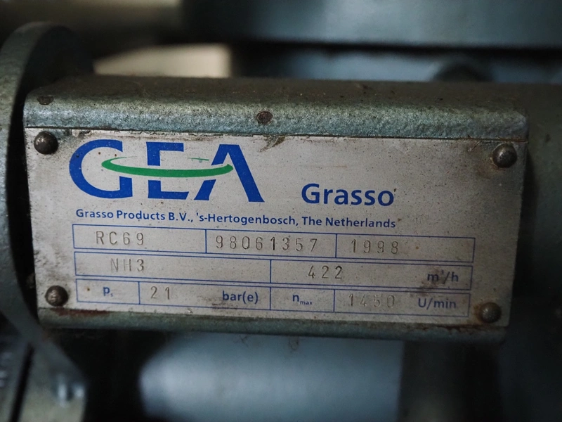 GEA Grasso piston compressor, model: RC69, number: 98061357, year of construction: 1998, capacity: 422 m³ per hour, 21 bar, 1450 rates per minute, Schorch motor, 110 / 127 kW, dimensions compressor: 2200 mm x 1100 mm x 1400 mm, switch cabinet, dimensions: 1200 mm x 500 mm x 2150 mm.