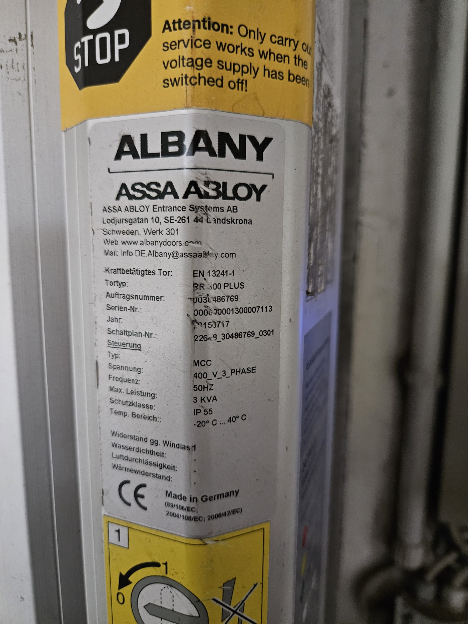 Assa Abloy high speed shutter door, type: BR 300 plus, year of construction: 2015, 400 V, 3 Ph, 50 Hz, dimensions: 2100 mm x 2900 mm.