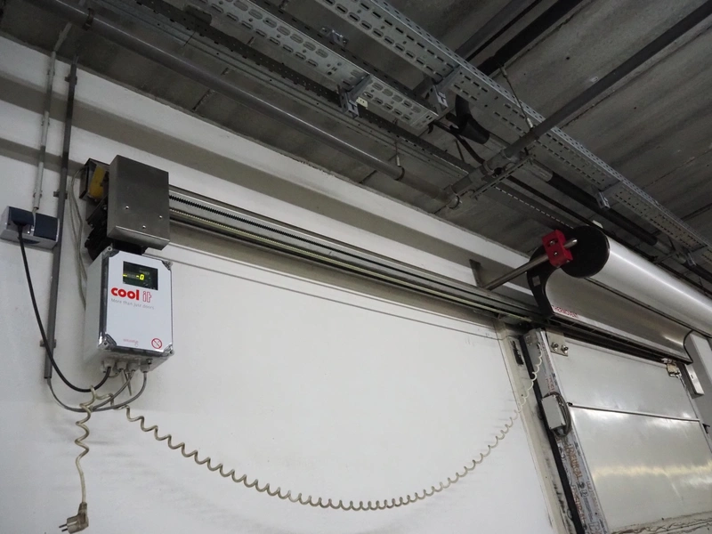 Cool It electric refrigerated sliding door, dimensions door: 2100 mm x 160 mm x 3100 mm, rail length: 4650 mm. Including air curtain.