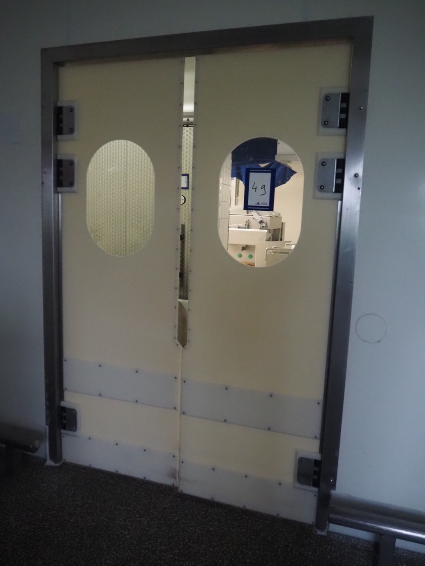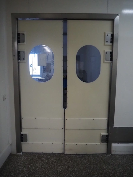 Plastic swing door, dimensions: 1500 mm x 2250 mm.