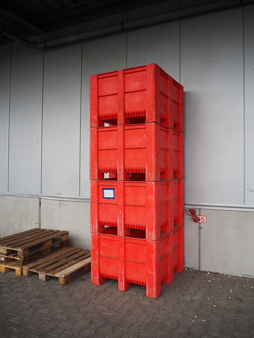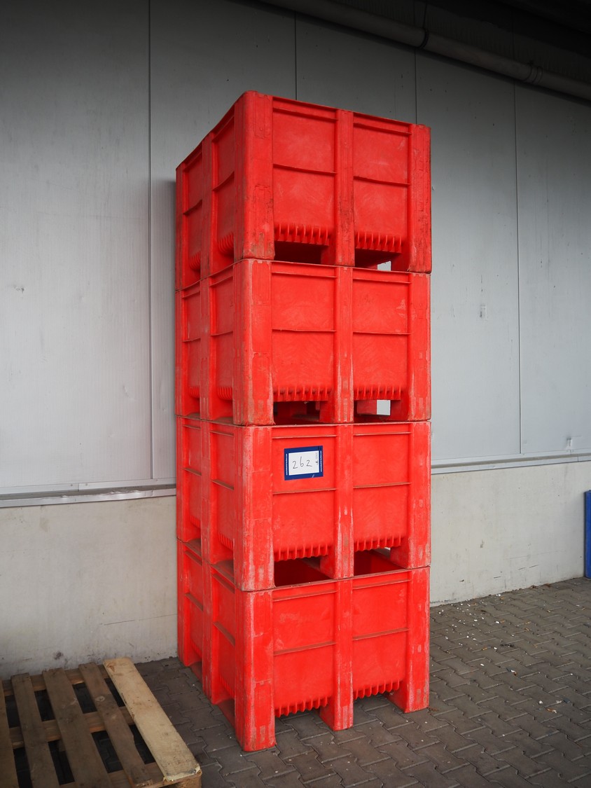 4 plastic pallet boxes, dimensions: (4x) 1200 mm x 1000 mmx 730 mm.