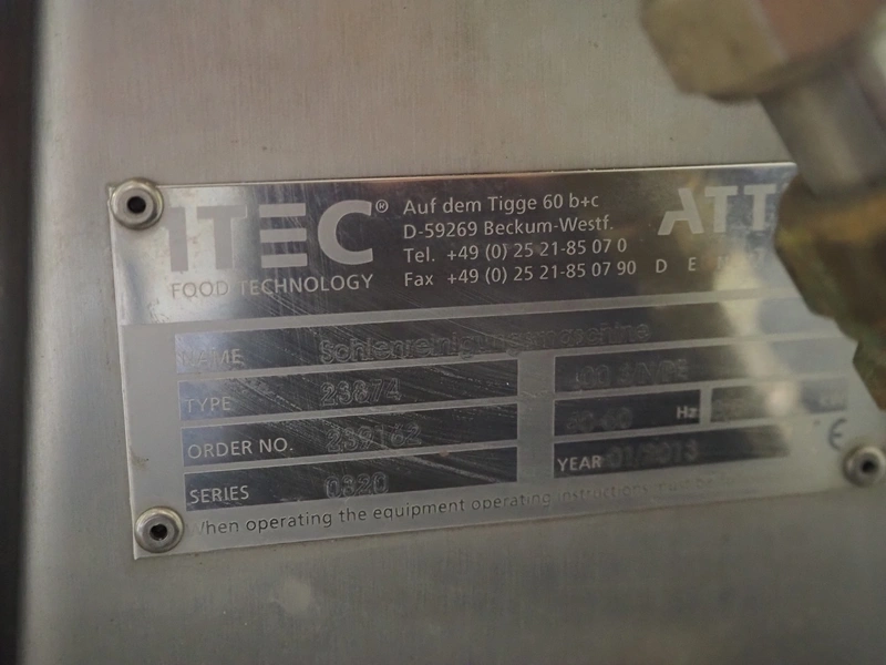 Itec sole cleaner, type: 23874, series: 0320, year of construction: 2013, 400 V, 3 Ph, 50-60 Hz, sensor control, brush length: (2x) 1000 mm, total dimensions: 1900 mm x 1000 mm x 1350 mm.