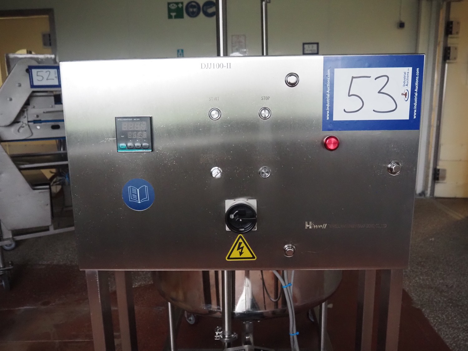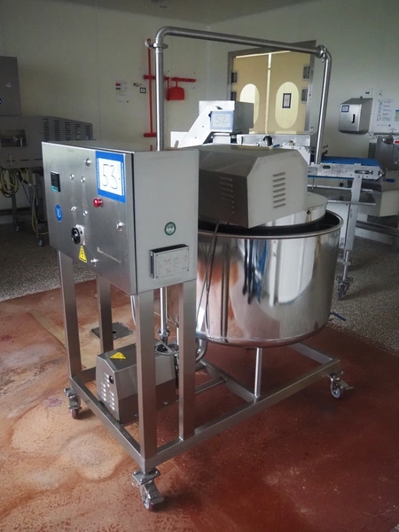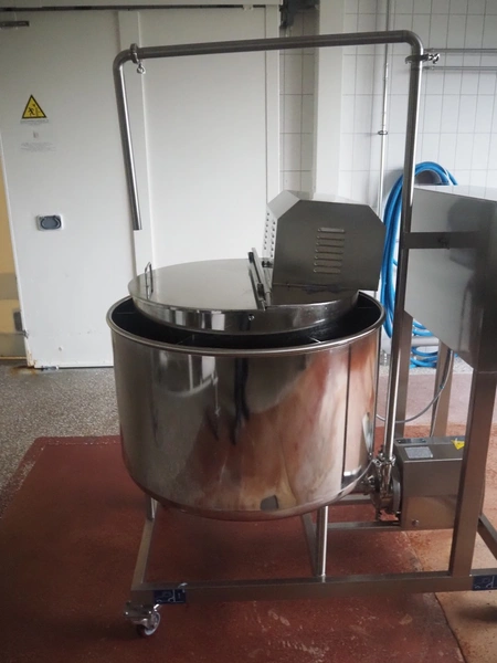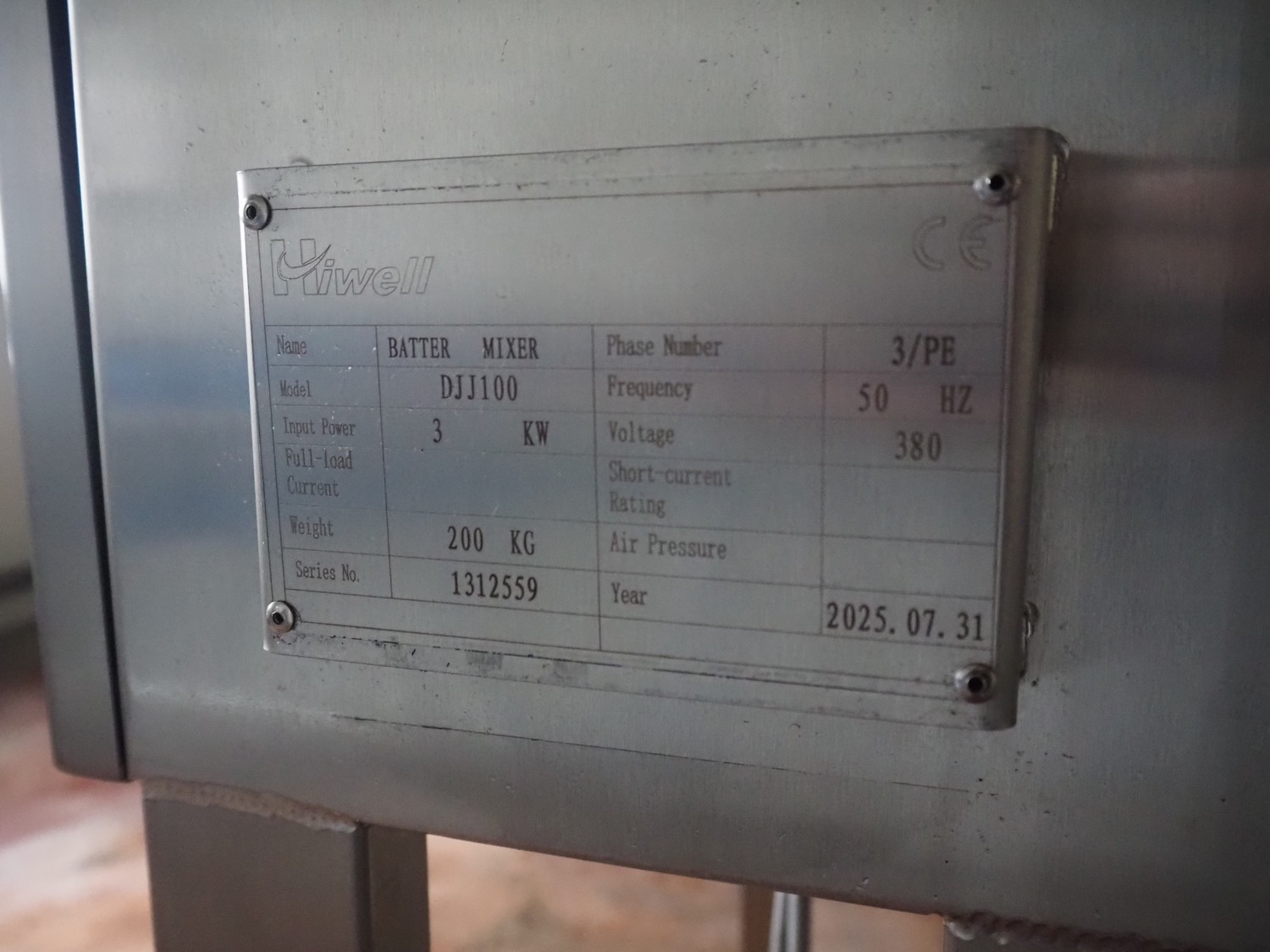 Hiwell mobile batter mixer, type: DJJ100, serial number: 1312559, year of construction: 2025, 3 x 380 V, 50 Hz, 3 kW, volume: 200 liter, Dgedong SCP-10422 vane pump, weight: 200 kg, dimensions: 1300 mm x 900 mm x 1800 mm. Never used.