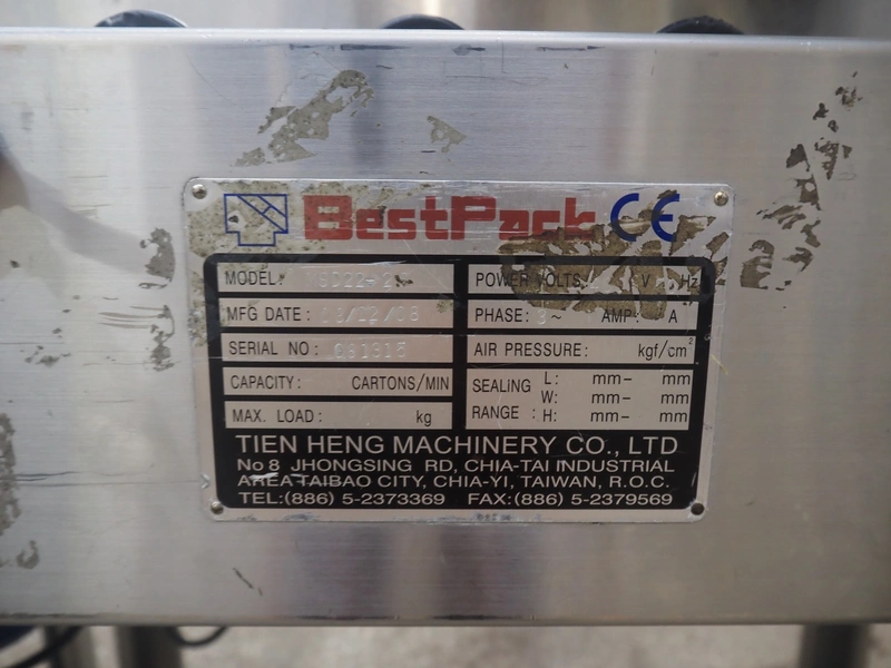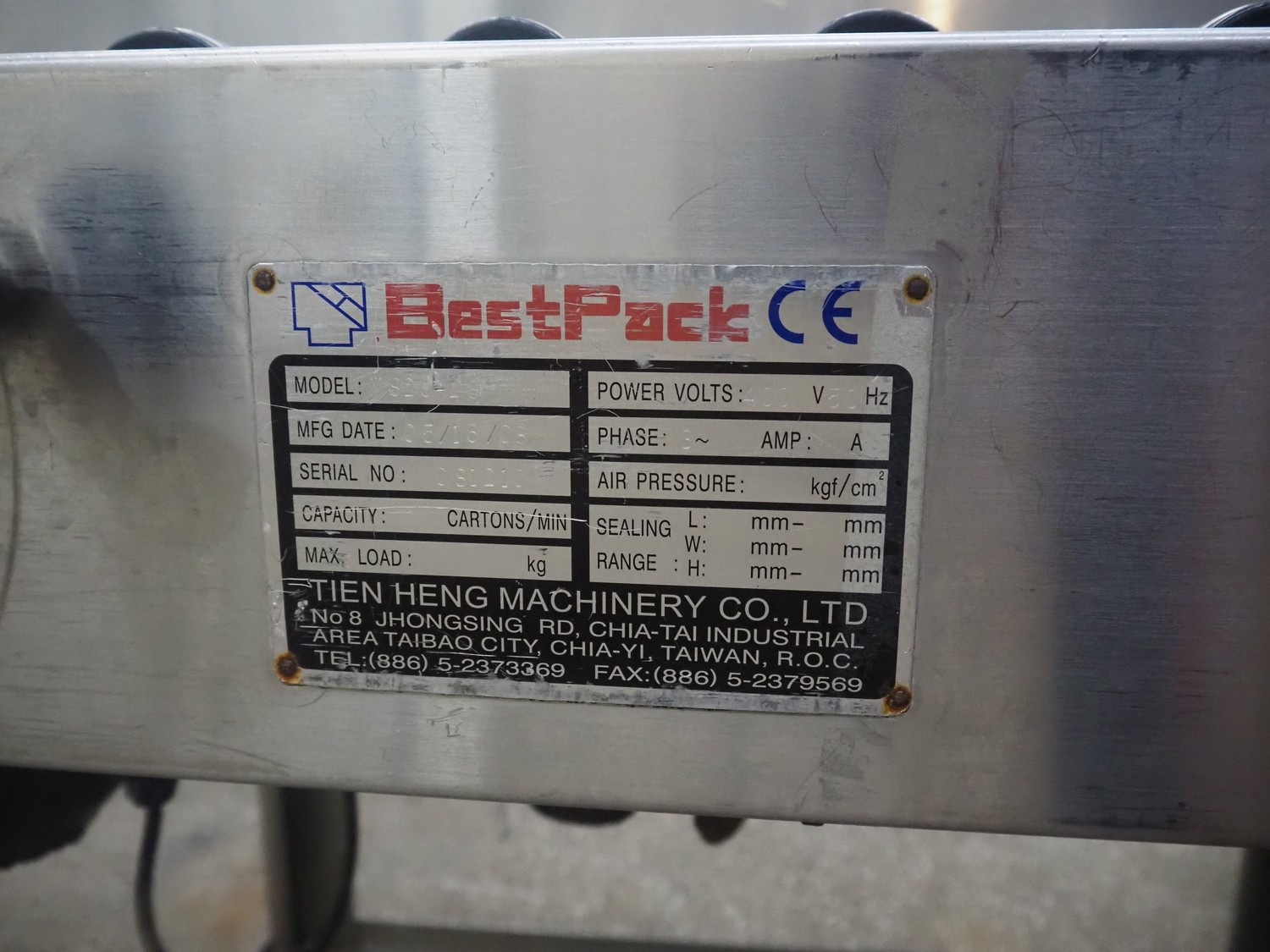 Best Pack / Tien Heng Machinery Co. LTD. double box closing machine with bottom and top closing machine, model: MSD22-28, year of construction: 2008, 400 V, 3 Ph, 50 Hz, dimensions: 1000 mm x 1000 mm x 1450 mm and 1500 mm x 900 mm x 1000 mm.