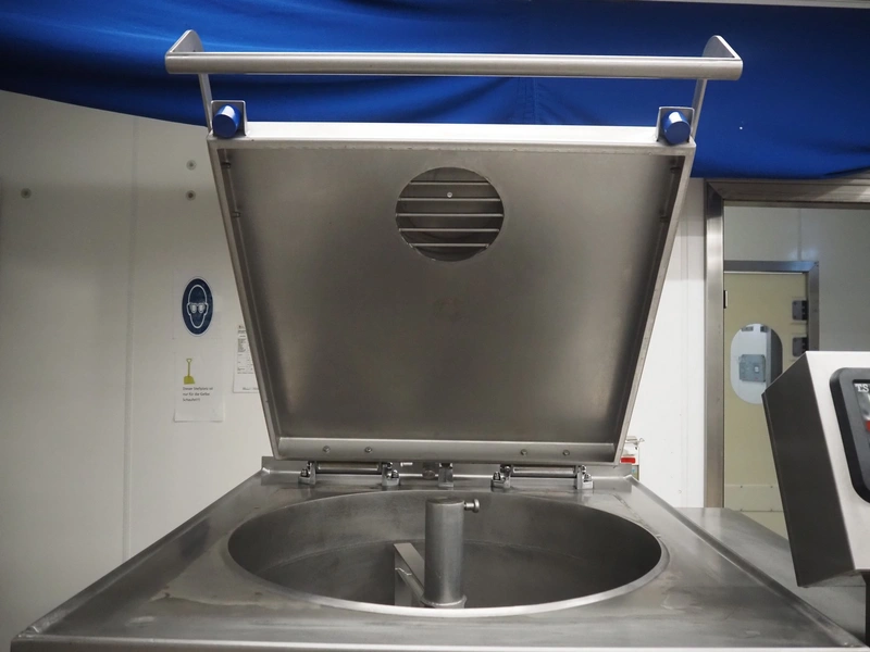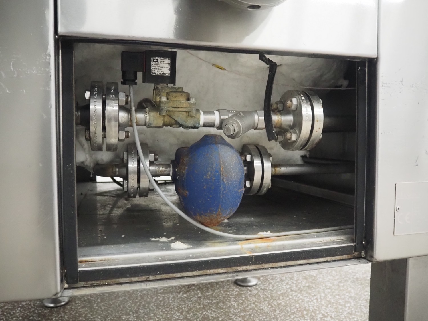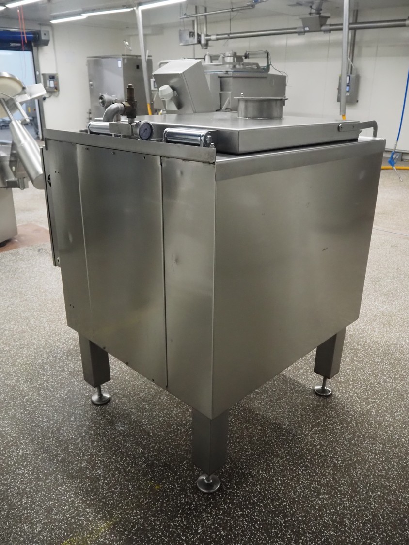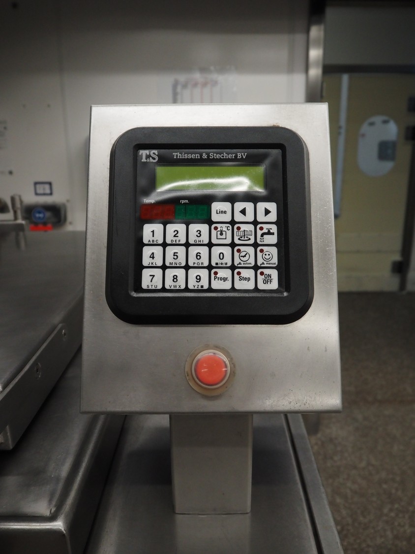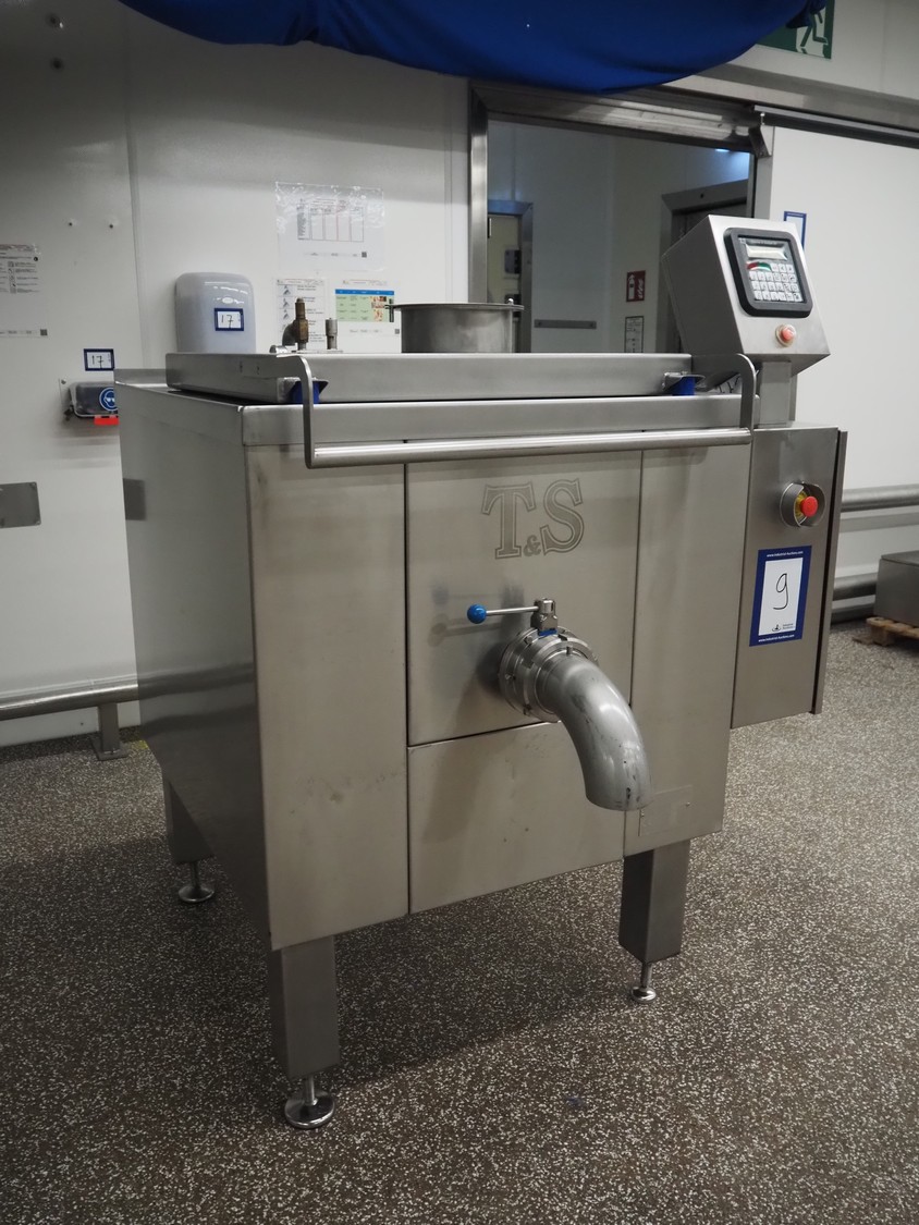 Thissen & Stecher BV cooking vessel with agitator, model: TSRR 200 SLD, serial number: 303 NL 2017, year of construction: 2017, 3 x 400 V, 50 Hz, 2.2 kW, volume: 200 liter, heating: steam 111 kg per hour, mixing: 10 - 60 rates per minute, total dimensions: 1550 mm x 1250 mm x 1700 mm.