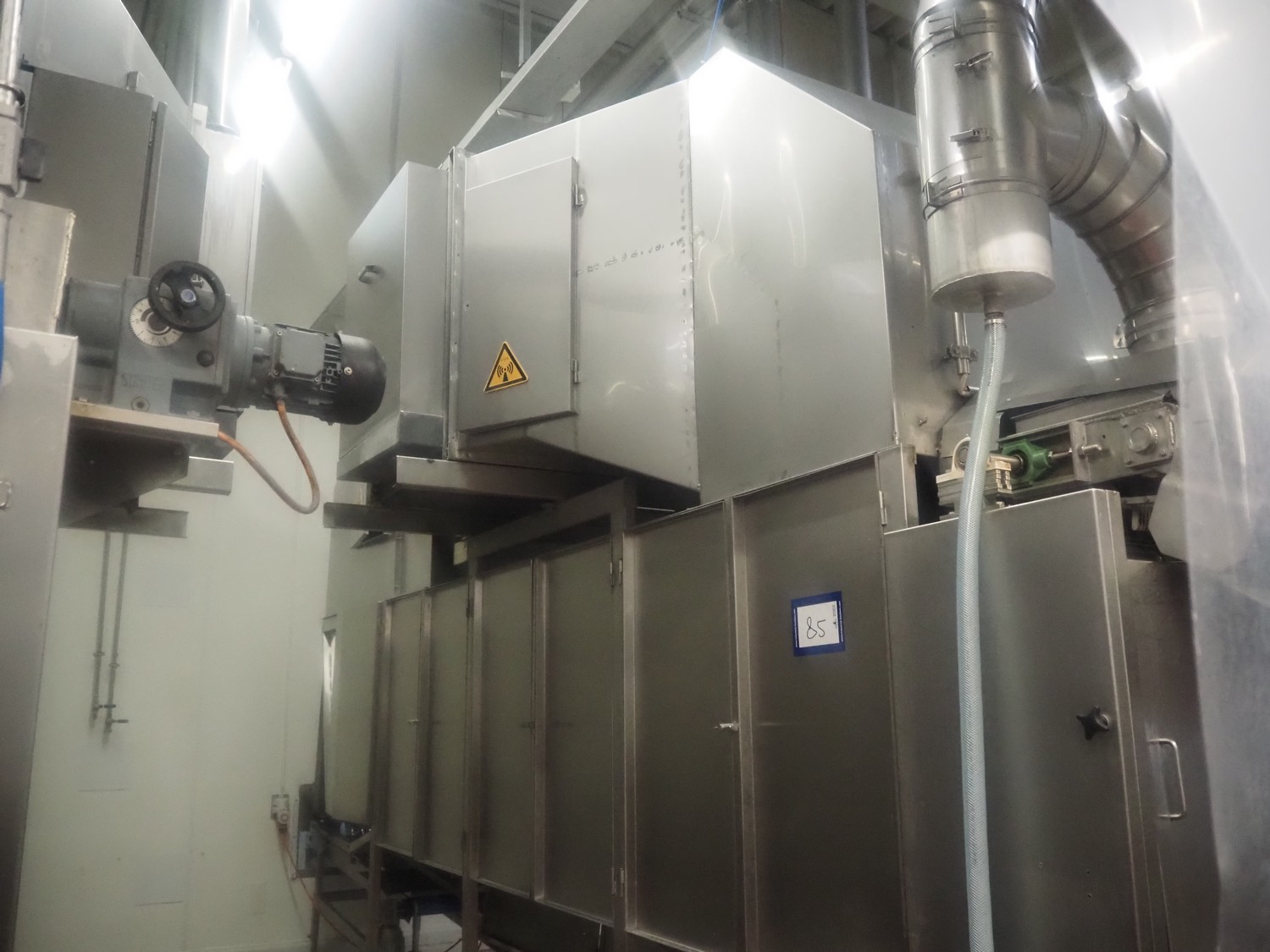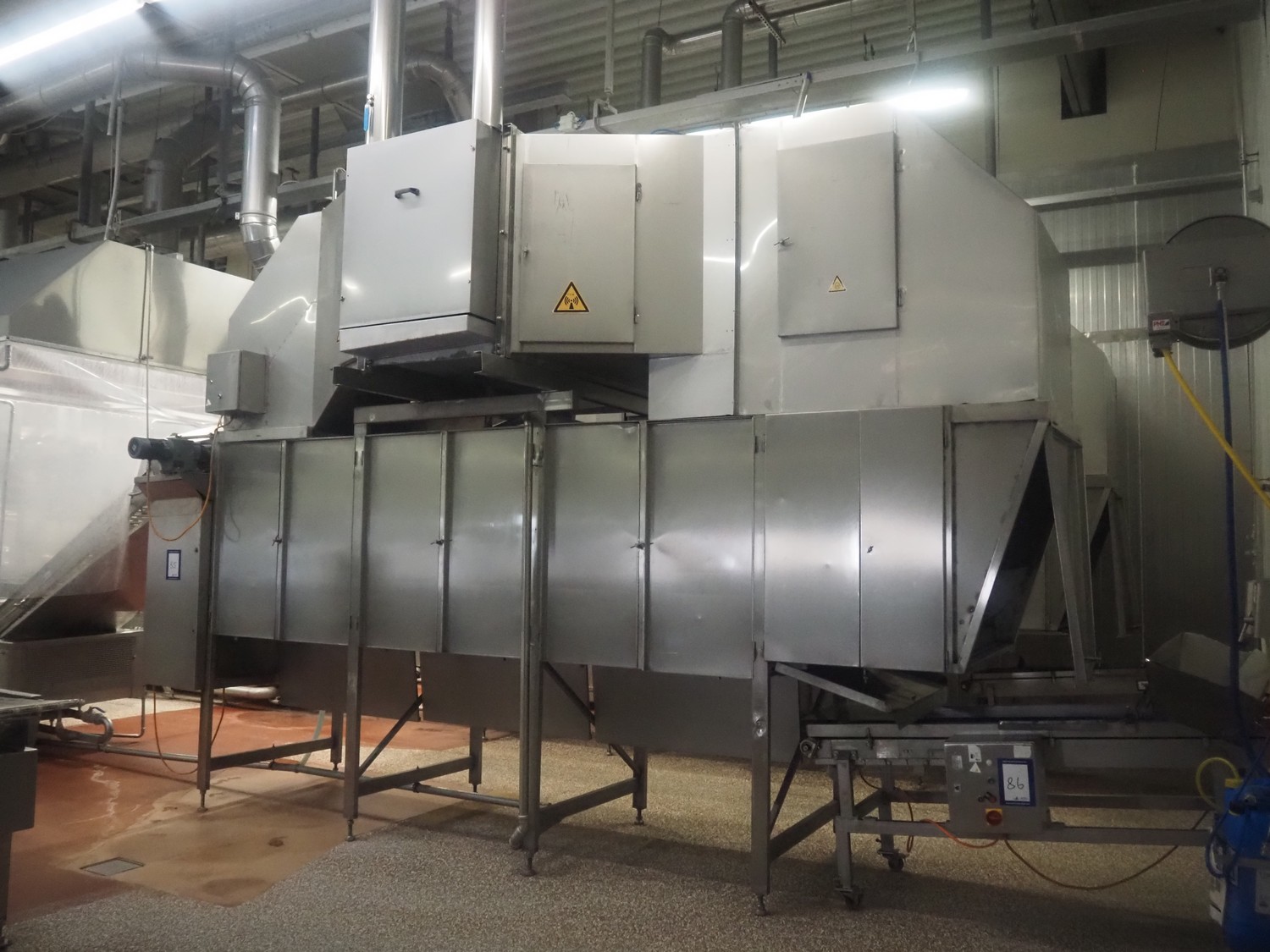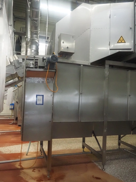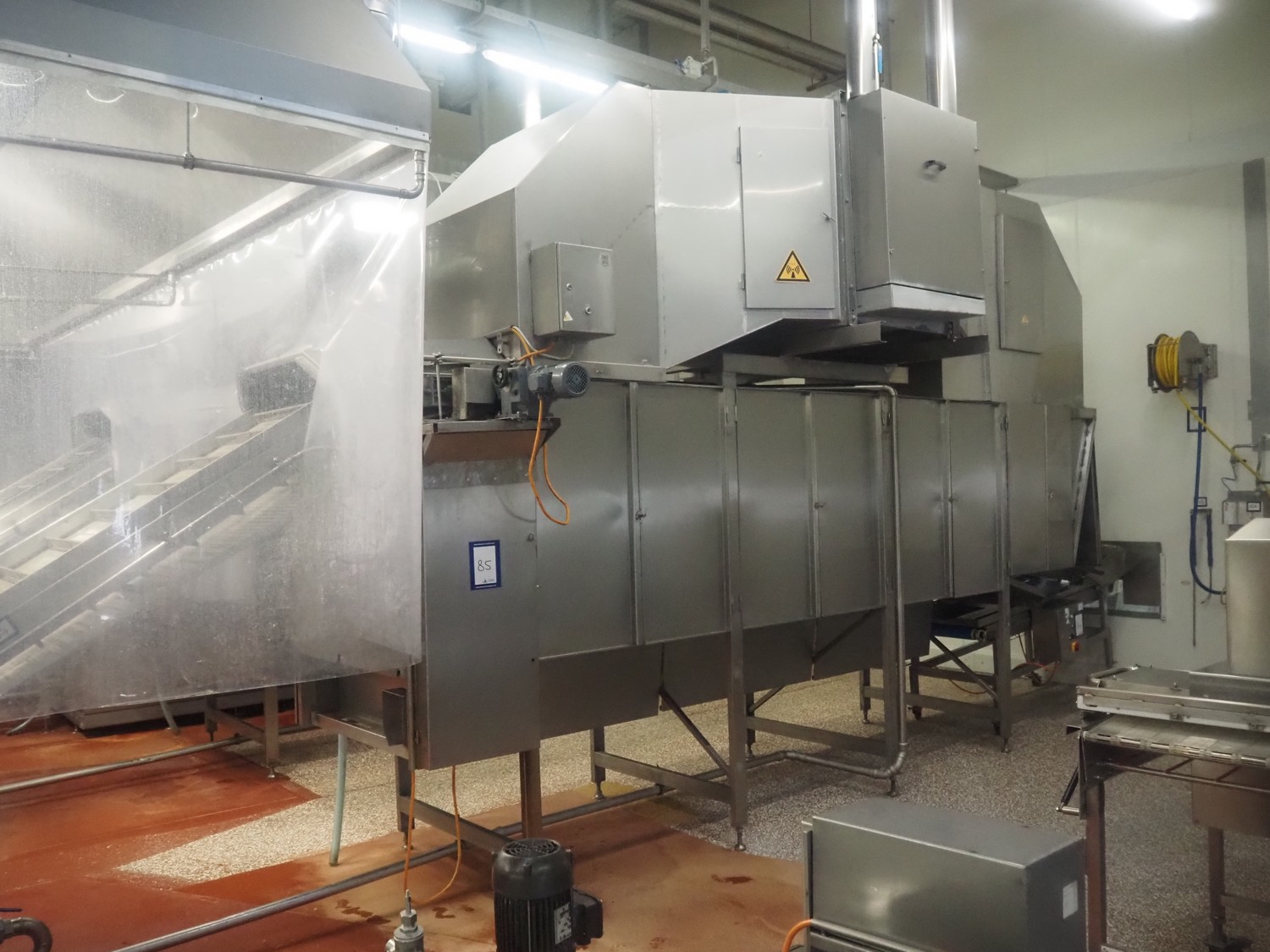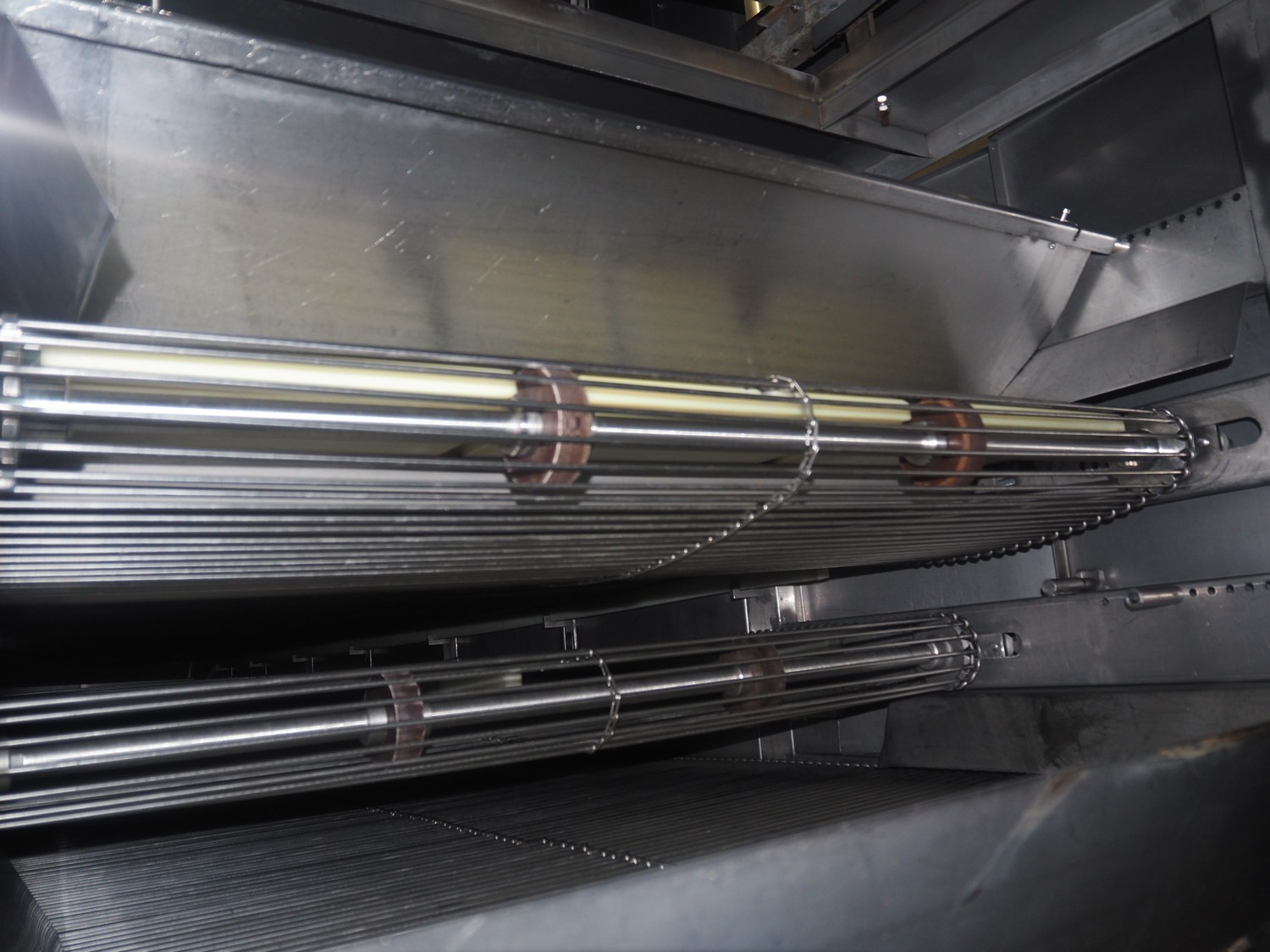Koppens Machinefabriek BV s/s cooling tunnel, type: KT5S 5200/1100, machine number: KT5S 5200/1100-59, 380 V, 3 Ph, 50 Hz, 4 A, 0.74 kW, weight: 2000 kg, s/s mesh belt, belt width: 1100 mm, 5 floors, distance between floors: 70 mm, total dimensions: 6000 mm x 2450 mm x 3800 mm.