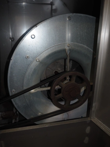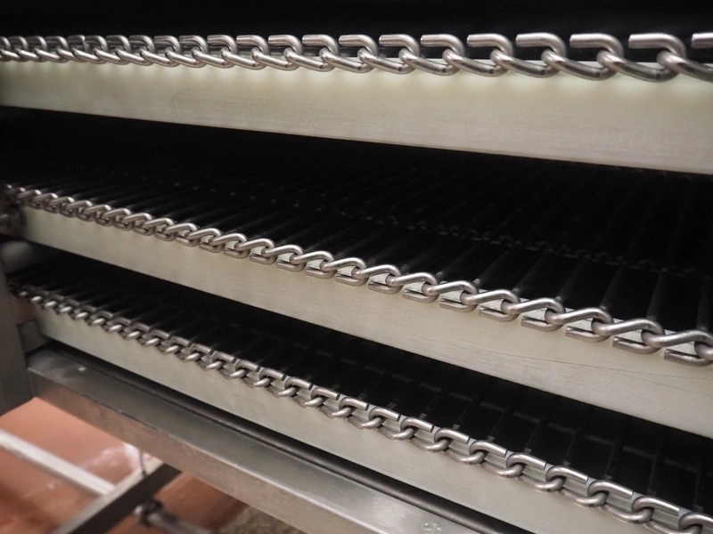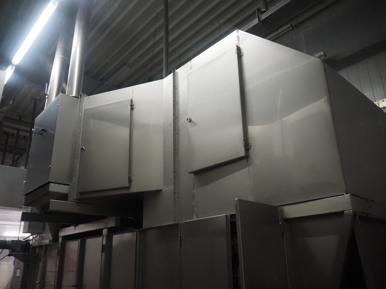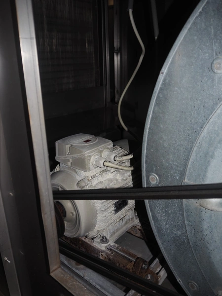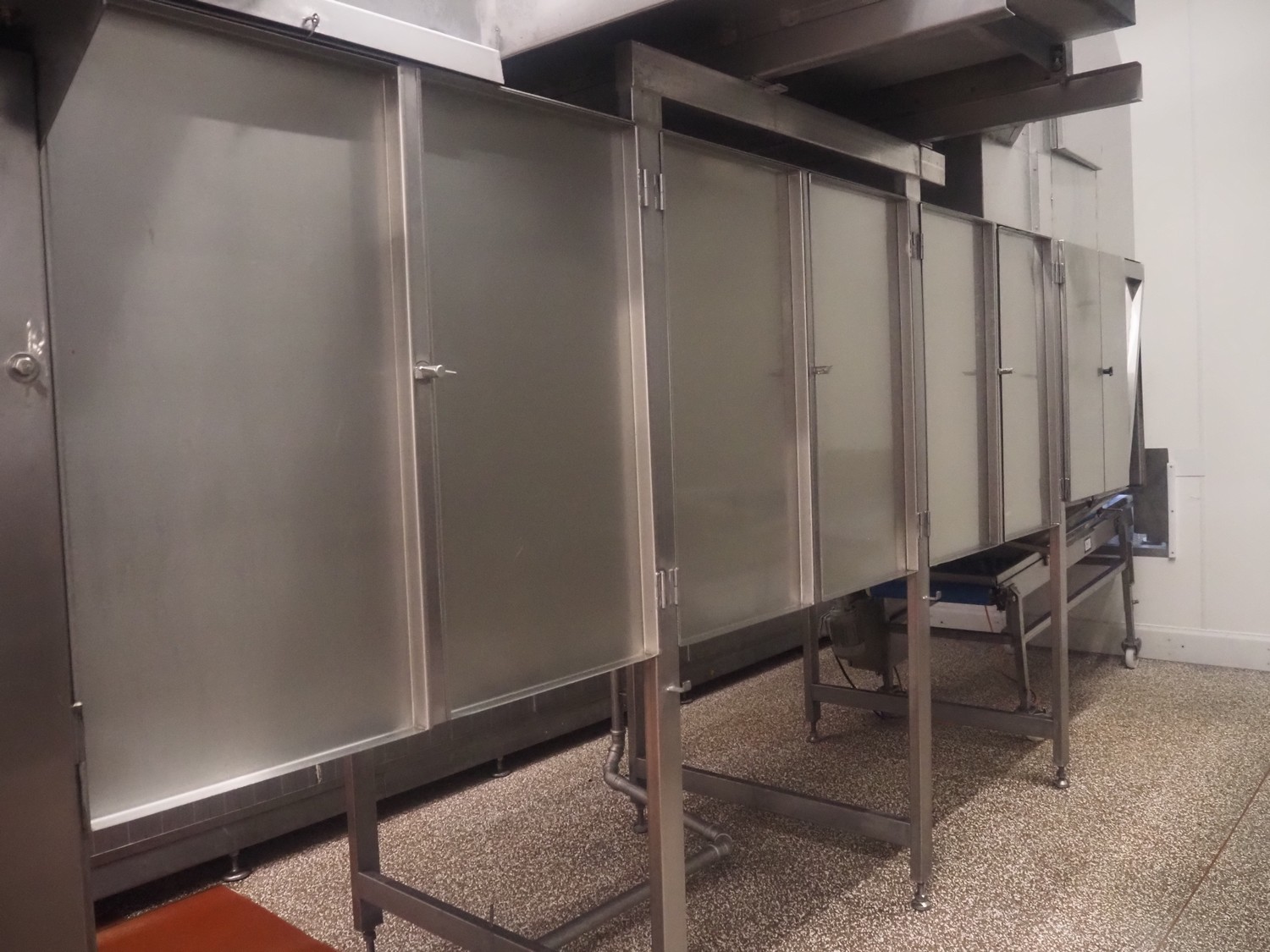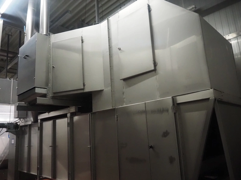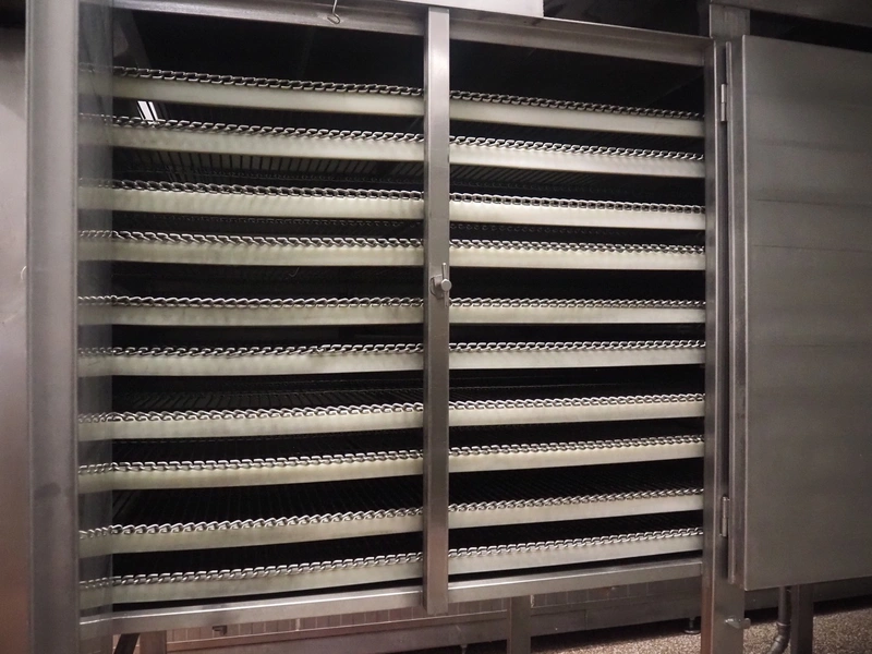 Koppens Machinefabriek BV s/s cooling tunnel, type: KT5S 5200/1100, 380 V, 3 Ph, 50 Hz, 4 A, 0.74 kW, weight: 2000 kg, s/s mesh belt, belt width: 1100 mm, 5 floors, distance between floors: 70 mm, total dimensions: 6000 mm x 2450 mm x 3800 mm.