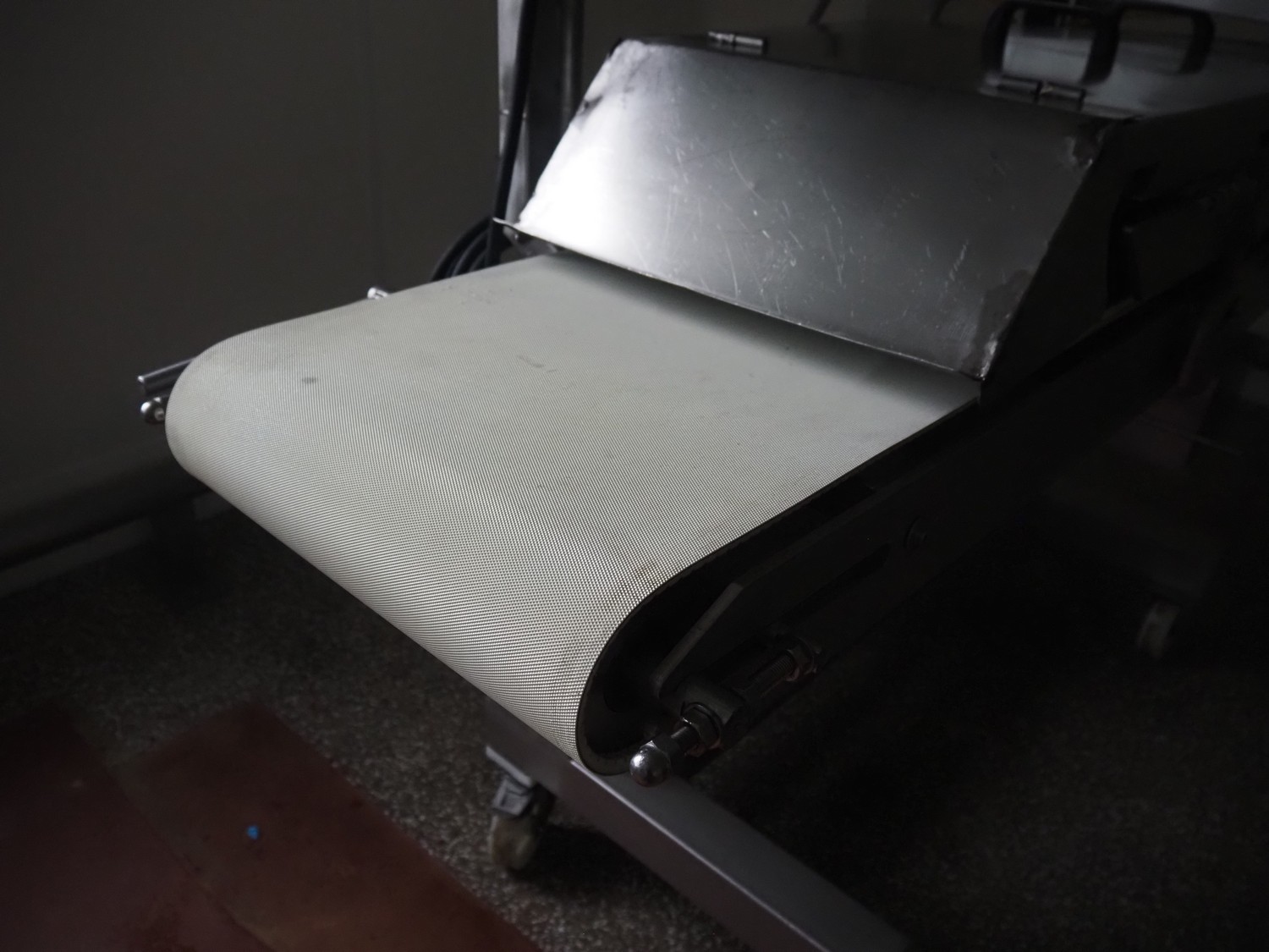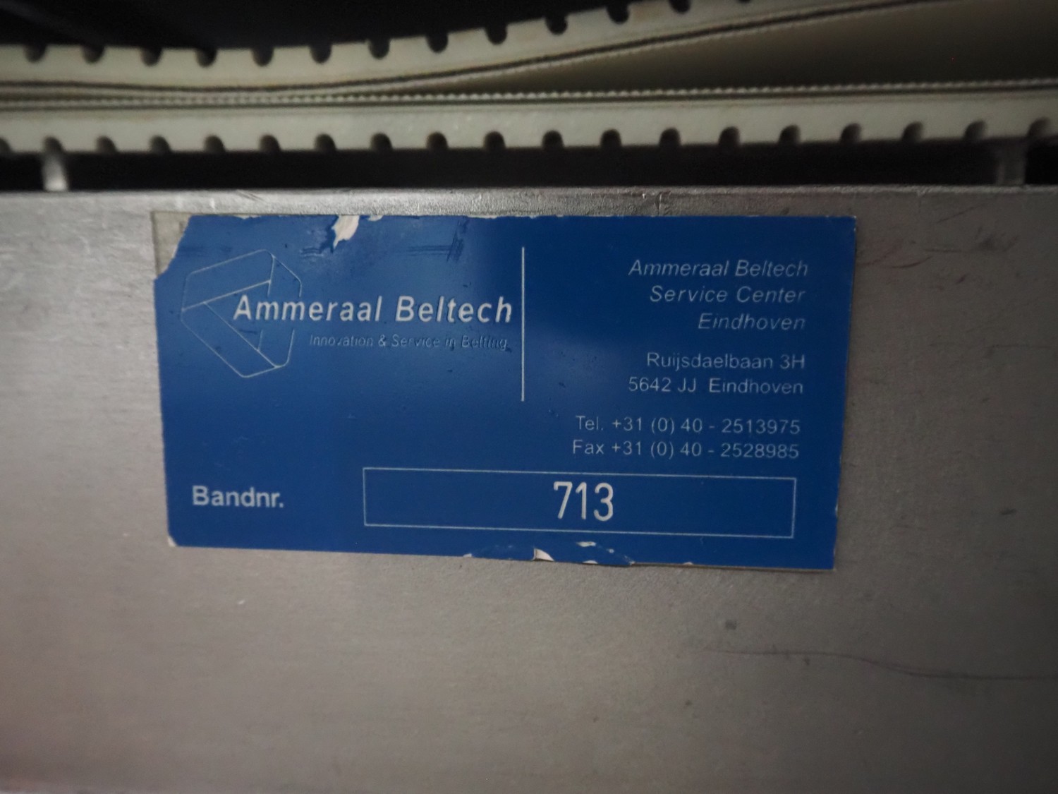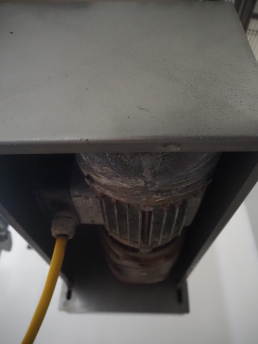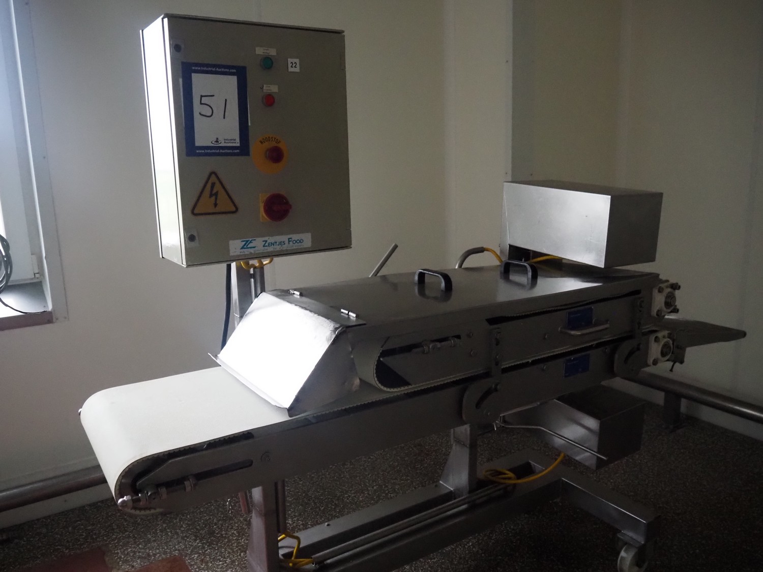 Zentjes mobile flattener, type: RMP400, 3 x 380 V, 50 Hz, 0.55 kW, plastic belt, belt width: 400 mm, belt speed: 2 - 9 meter / minute, weight: 270 kg, dimensions: 2100 mm x 700 mm x 1750 mm.