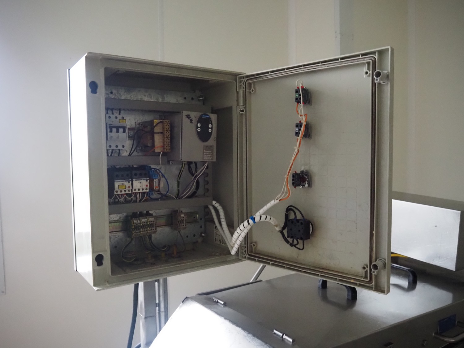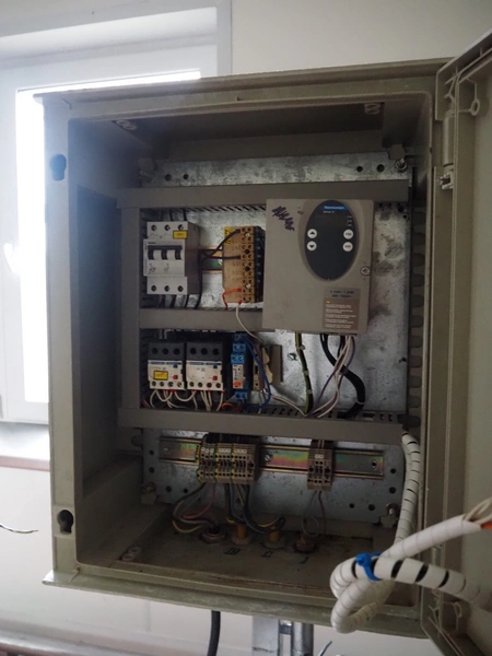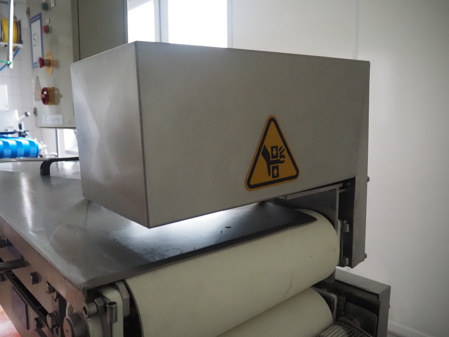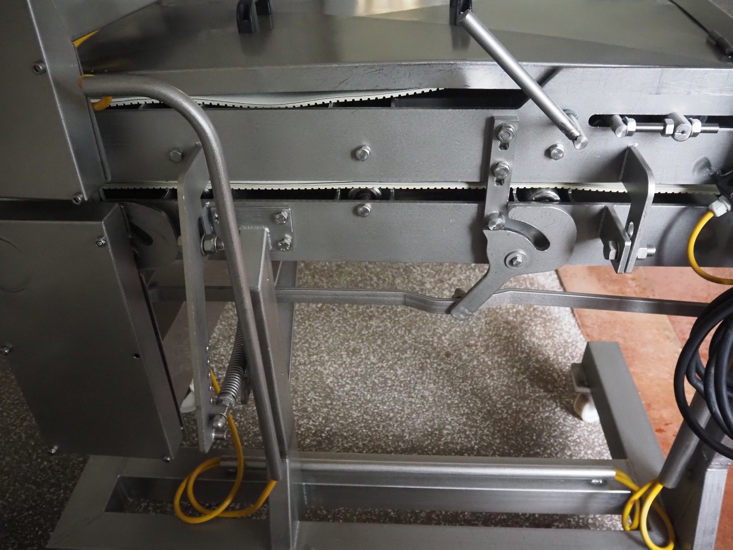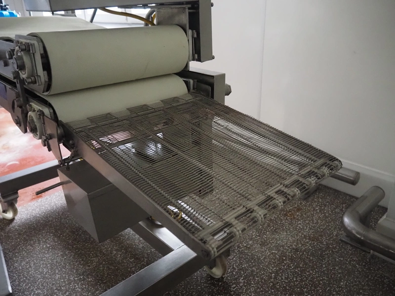 Zentjes mobile flattener, type: RMP400, 3 x 380 V, 50 Hz, 0.55 kW, plastic belt, belt width: 400 mm, belt speed: 2 - 9 meter / minute, weight: 270 kg, dimensions: 2100 mm x 700 mm x 1750 mm.