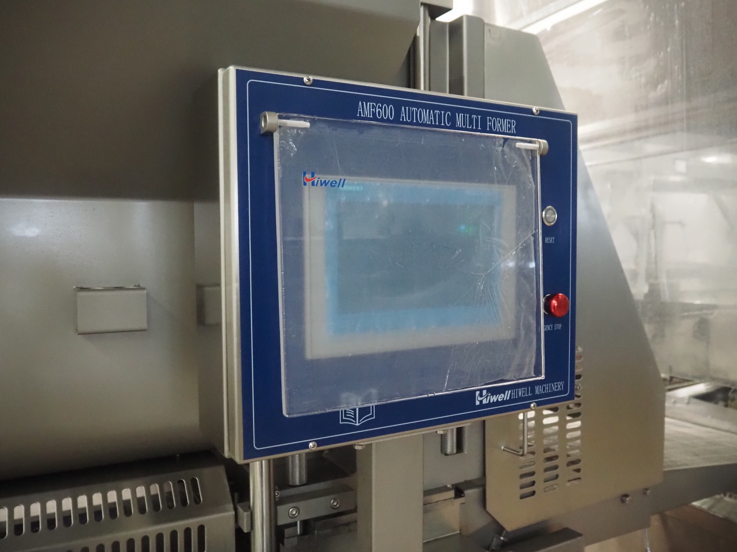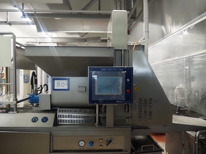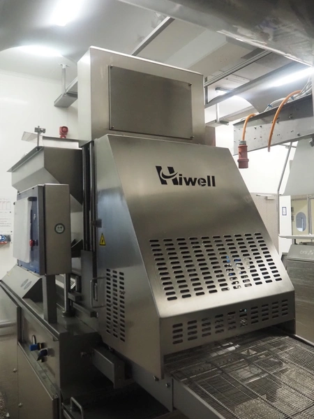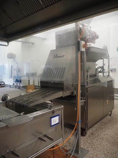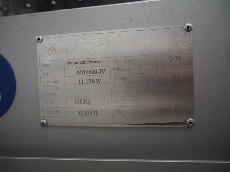 Hiwell forming machine, model: AMF600-IV, serial number: 0162576, year of construction: 2025, 380 V, 3 Ph, 50 Hz, 11.12 kW, weight: 1600 kg, s/s mesh belt, belt width: 600 mm, total dimensions: 3600 mm x 1100 mm x 2420 mm. Including carton box with forming plate, diameter: (4x) 100 mm. Never used.