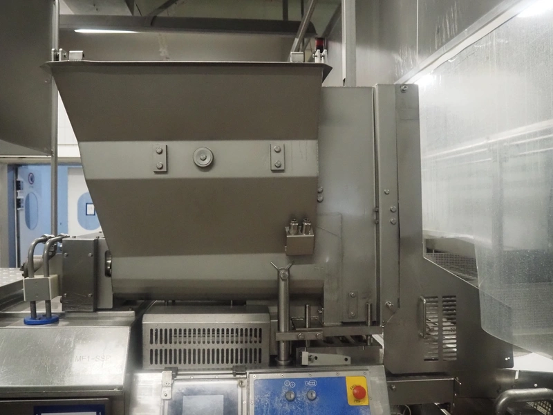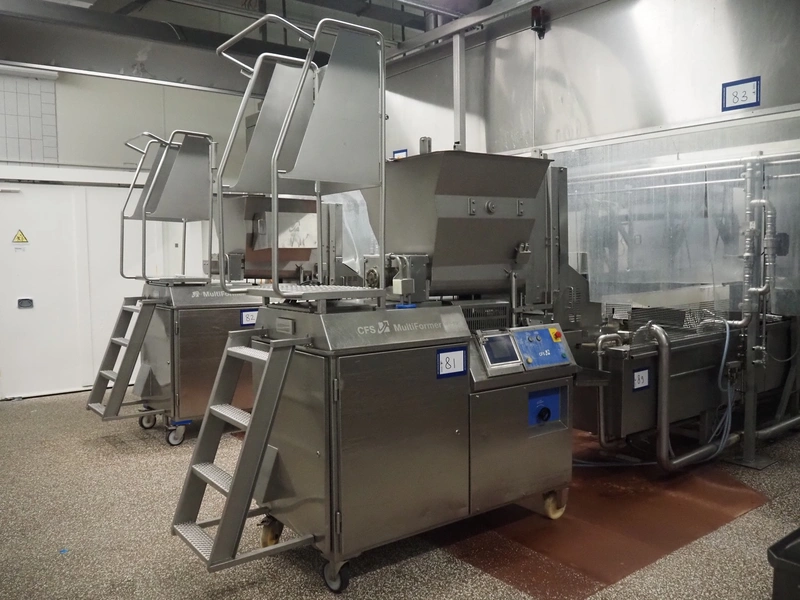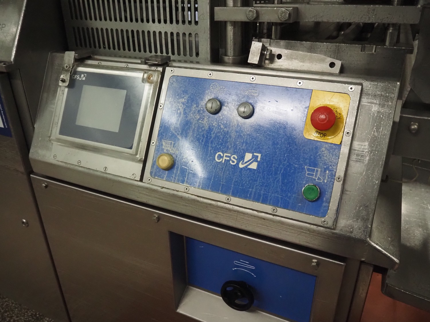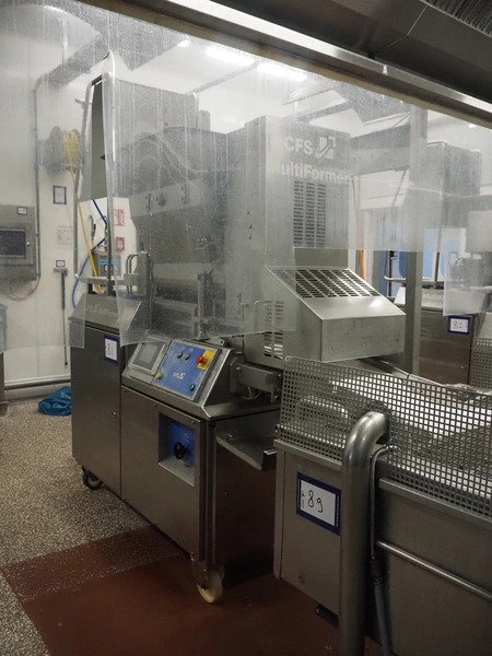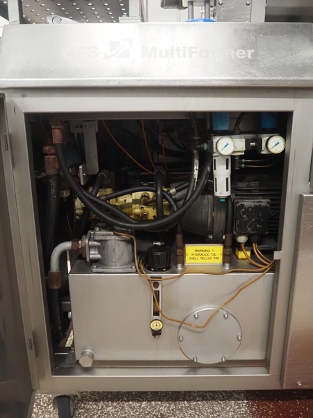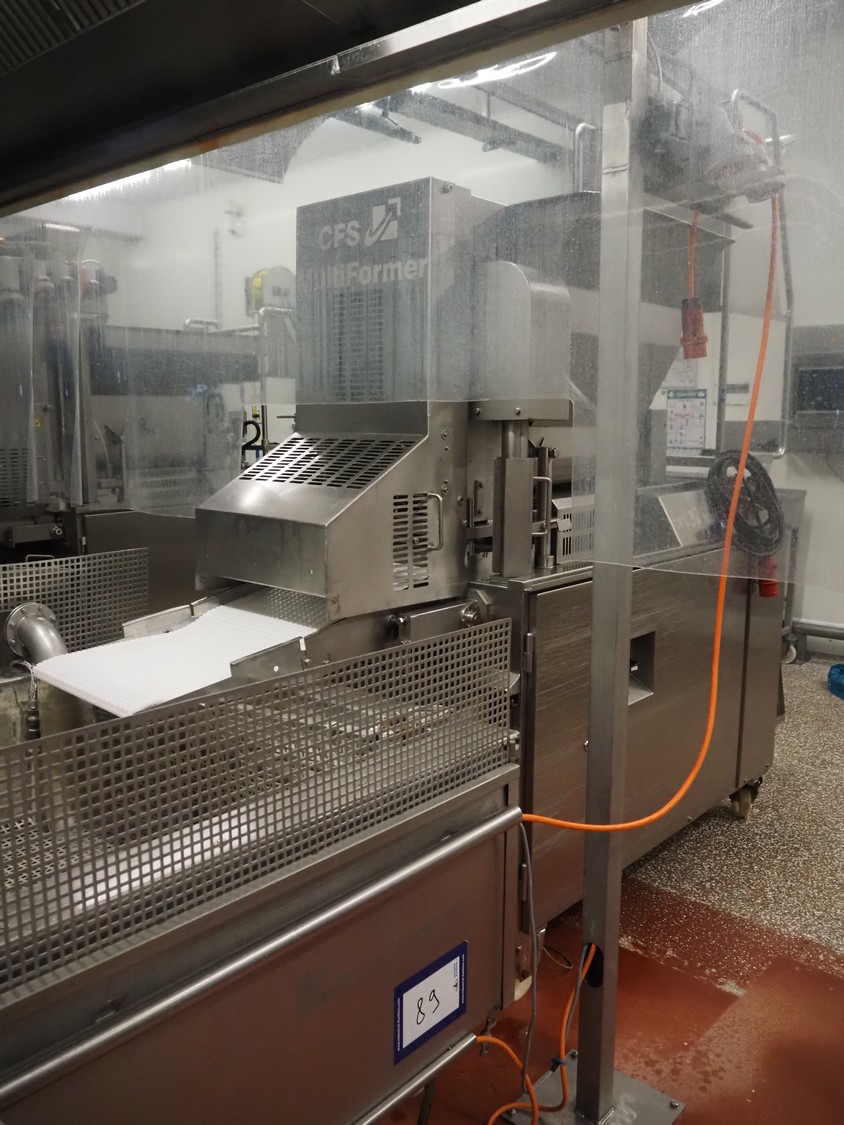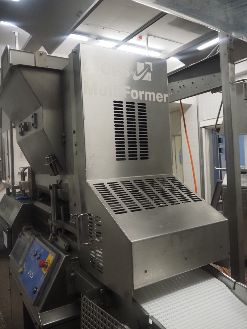 CFS MultiFormer forming machine, type: MLF 400, serial number: 2326, year of construction: 2006, 3 x 400 V, 50 Hz, 8 kW, maximum: 50 strokes per minute, plastic mesh belt, belt width: 600 mm, hopper volume: 270 liter, weight: 1186 kg, total dimensions: 2500 mm x 900 mm x 2600 mm.