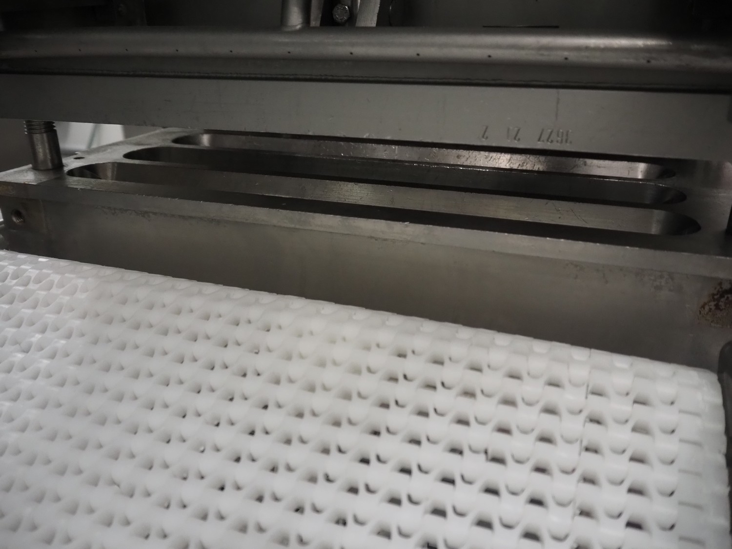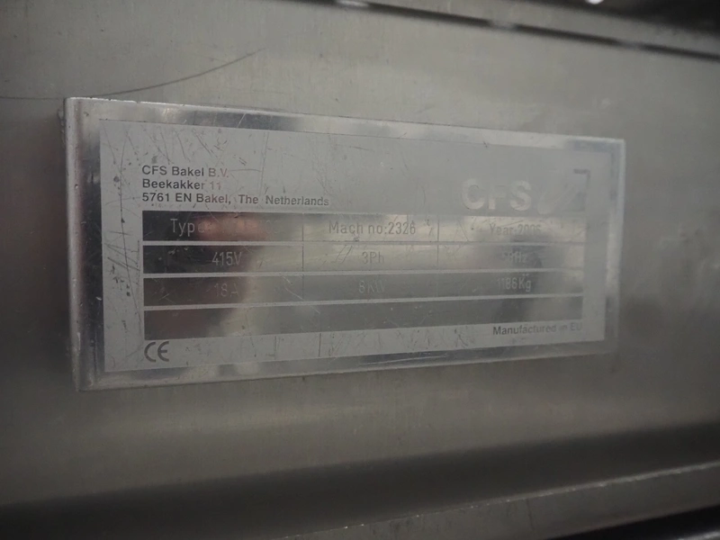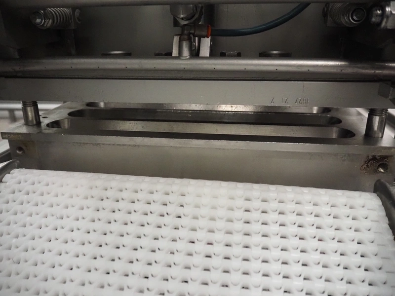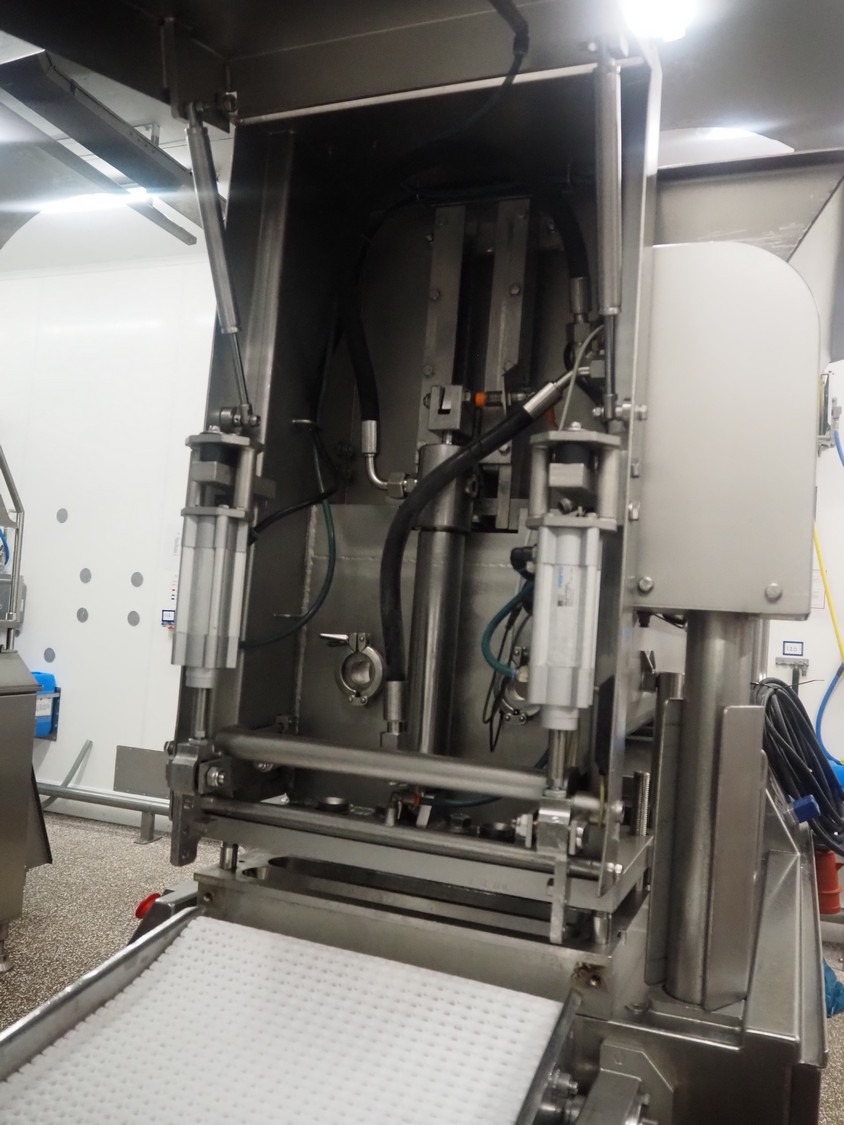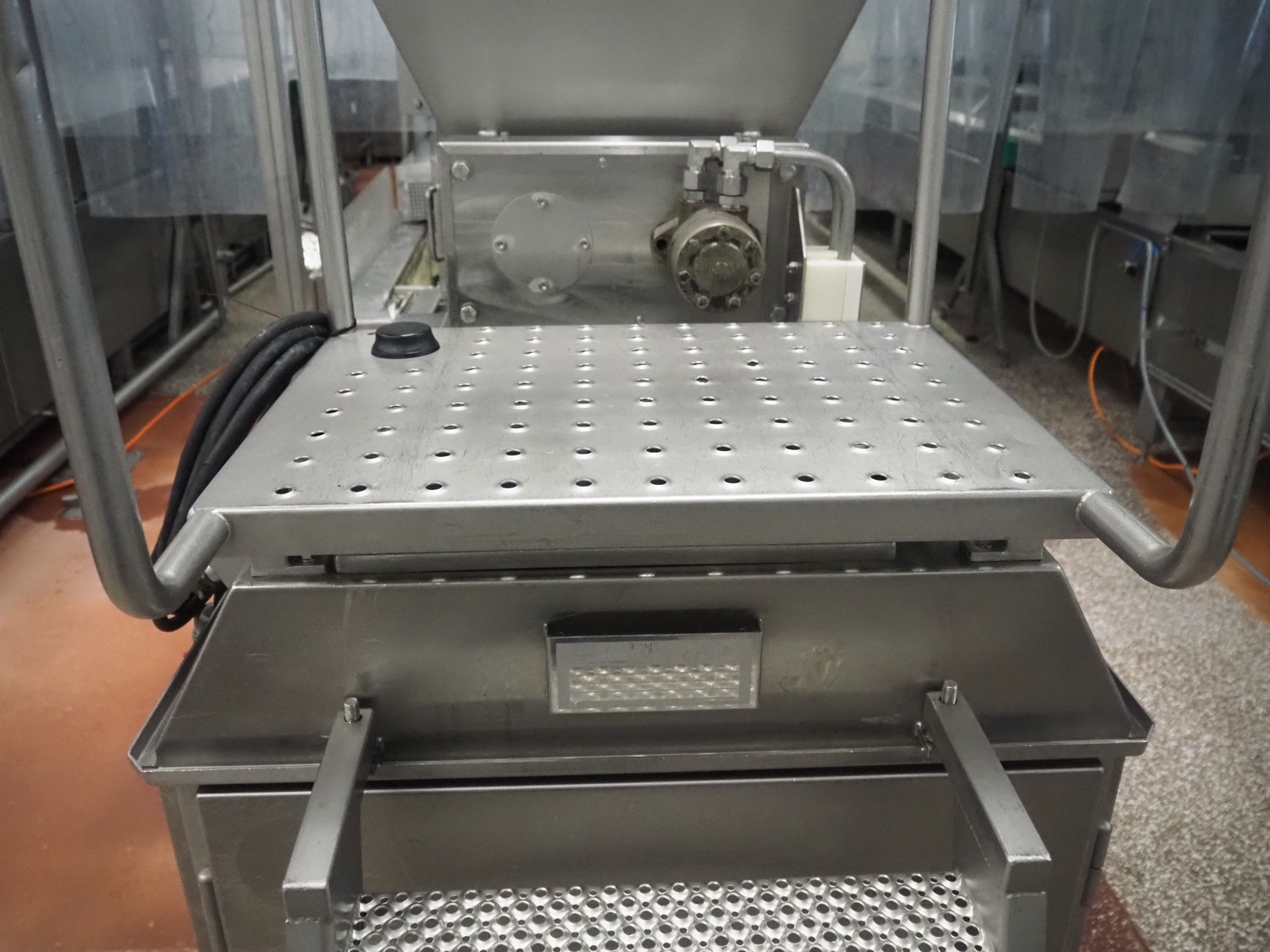 CFS MultiFormer forming machine, type: MLF 400, serial number: 2326, year of construction: 2006, 3 x 400 V, 50 Hz, 8 kW, maximum: 50 strokes per minute, plastic mesh belt, belt width: 600 mm, hopper volume: 270 liter, weight: 1186 kg, total dimensions: 2500 mm x 900 mm x 2600 mm.