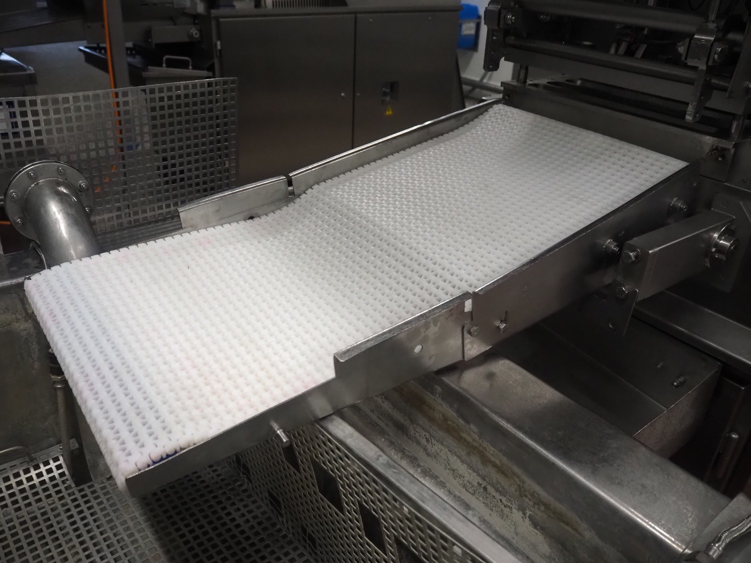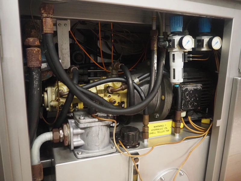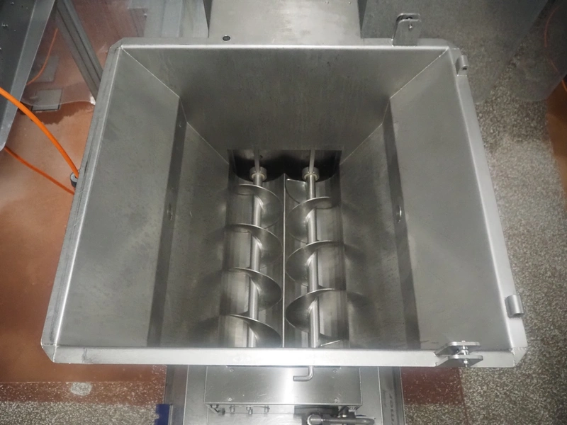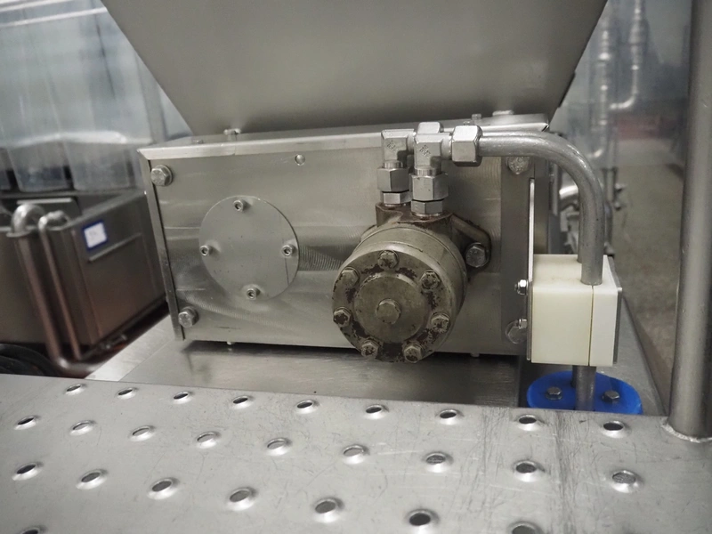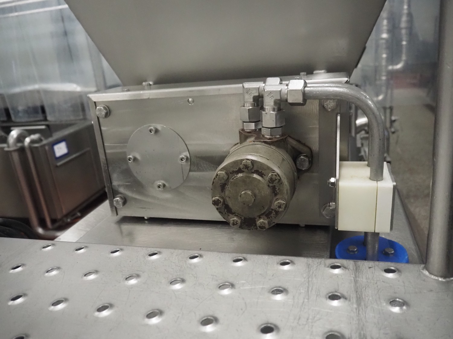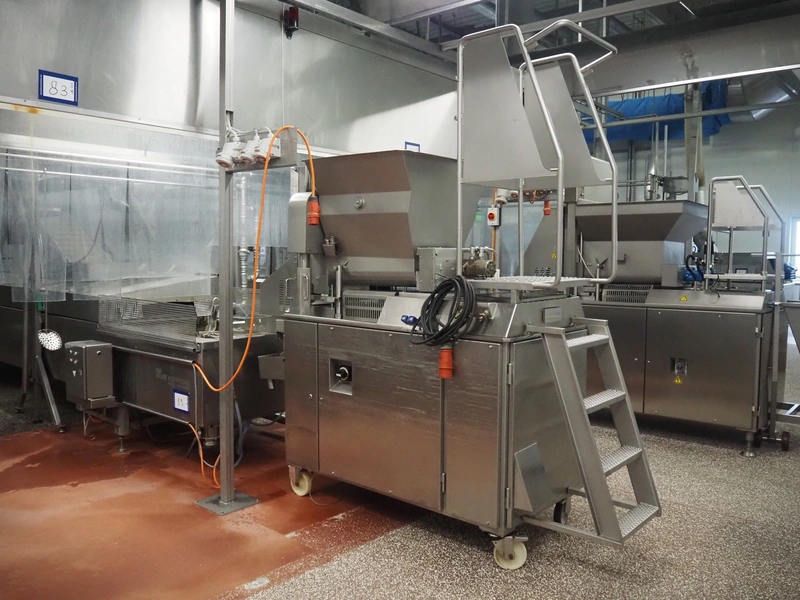 CFS MultiFormer forming machine, type: MLF 400, serial number: 2326, year of construction: 2006, 3 x 400 V, 50 Hz, 8 kW, maximum: 50 strokes per minute, plastic mesh belt, belt width: 600 mm, hopper volume: 270 liter, weight: 1186 kg, total dimensions: 2500 mm x 900 mm x 2600 mm.