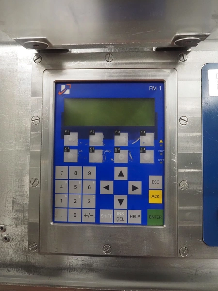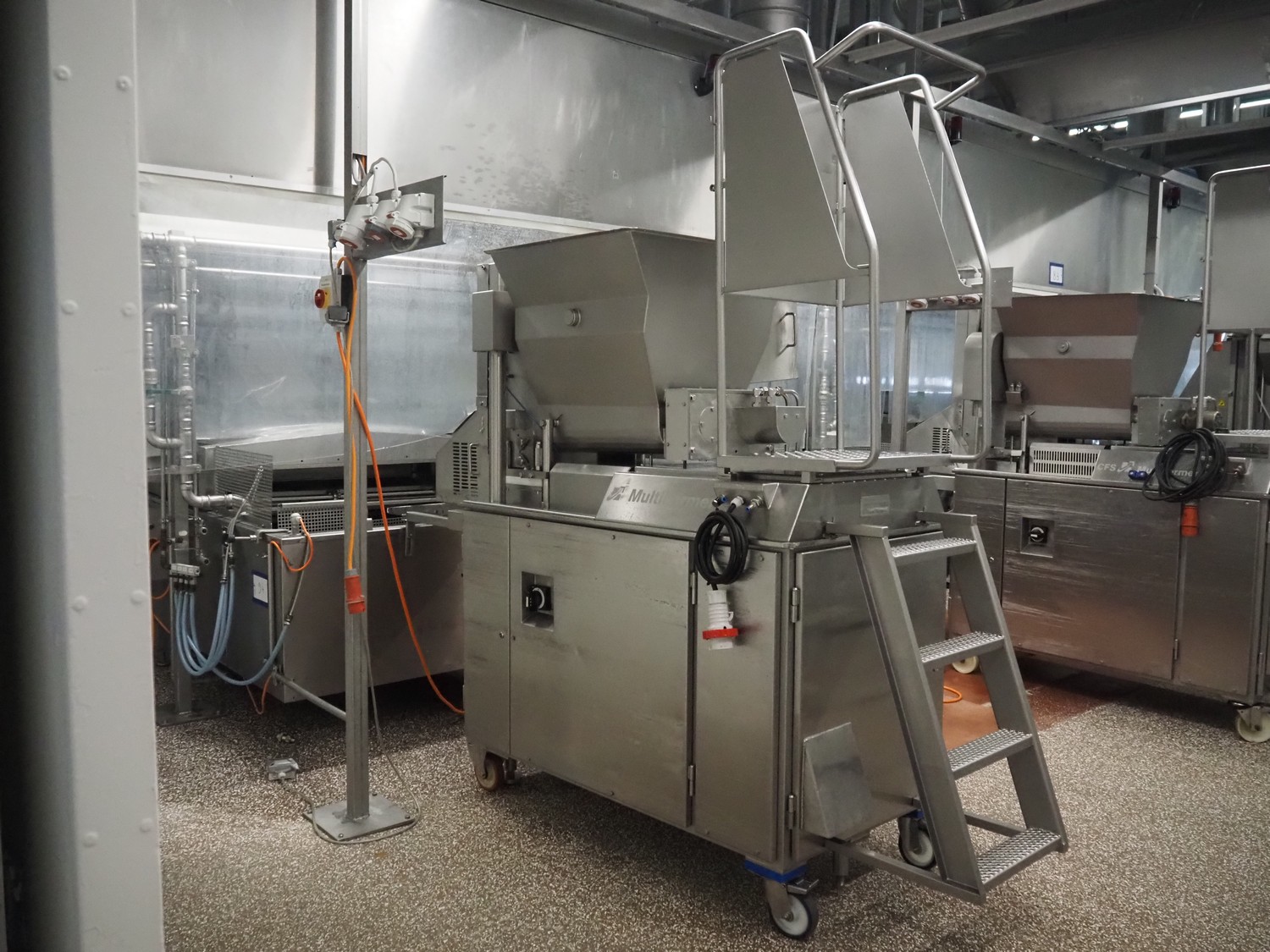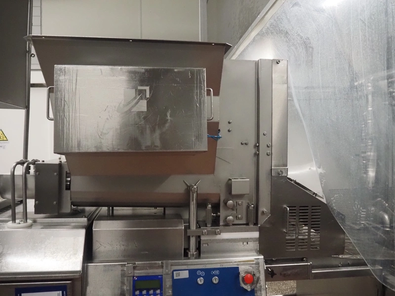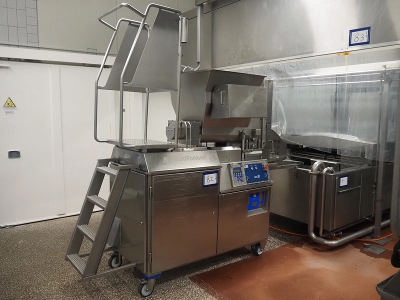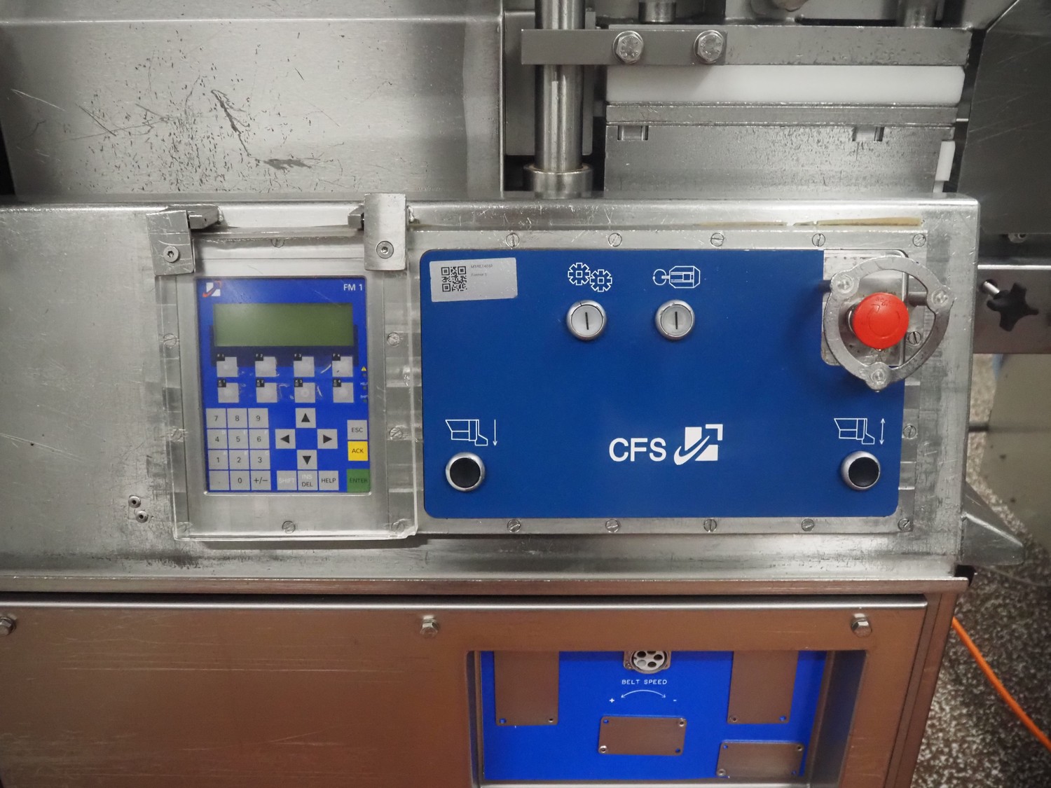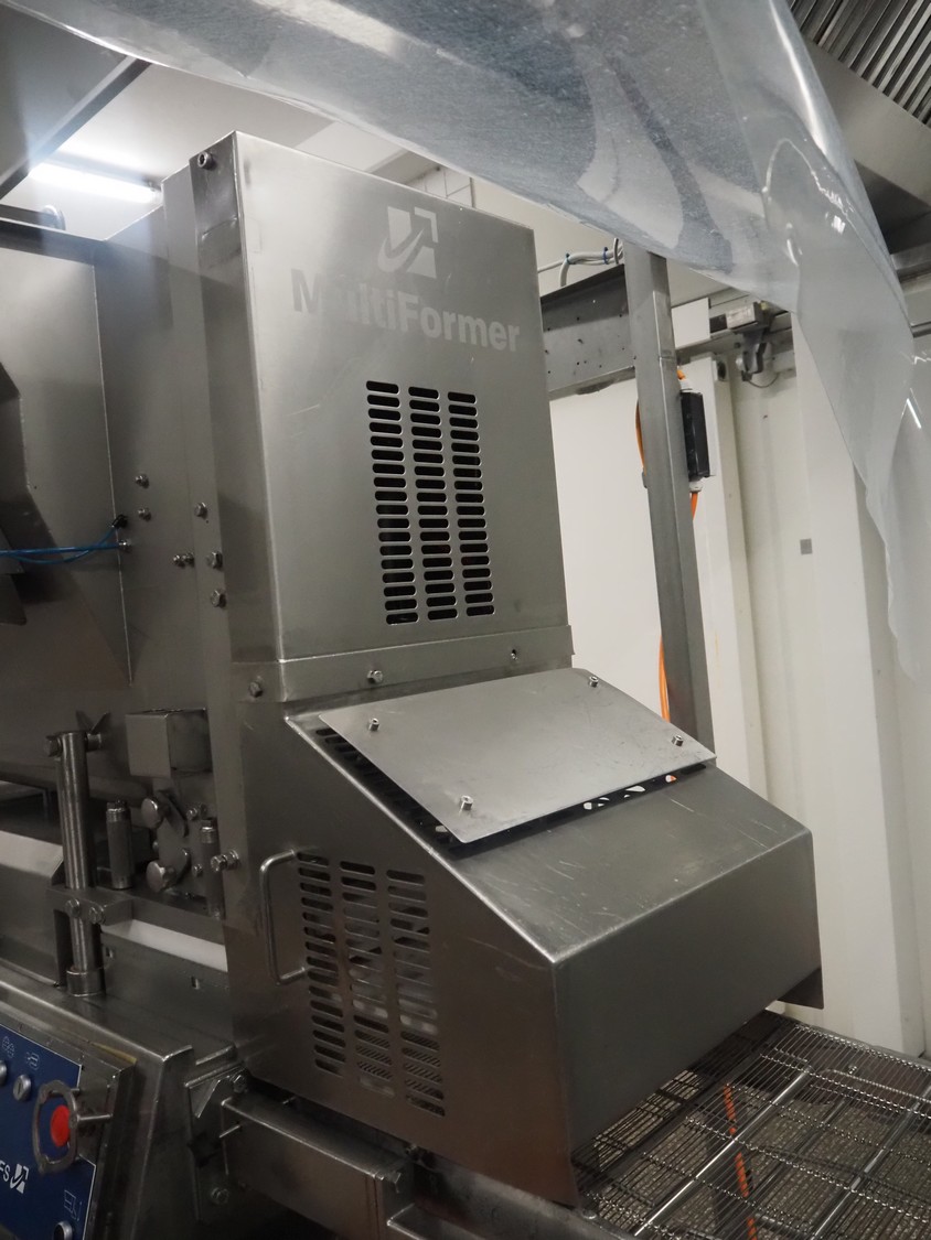 CFS MultiFormer forming machine, type: MLF 400, serial number: 2190, year of constructoin: 2002, 3 x 380 V, 50 Hz, 7.86 kW, maximum: 50 strokes per minute, s/s mesh belt, belt width: 400 mm, hopper volume: 270 liter, weight: 1186 kg, total dimensions: 3000 mm x 1000 mm x 2600 mm. Including BDG400 bridge breaker and extra long outfeed conveyor of 900 mm.