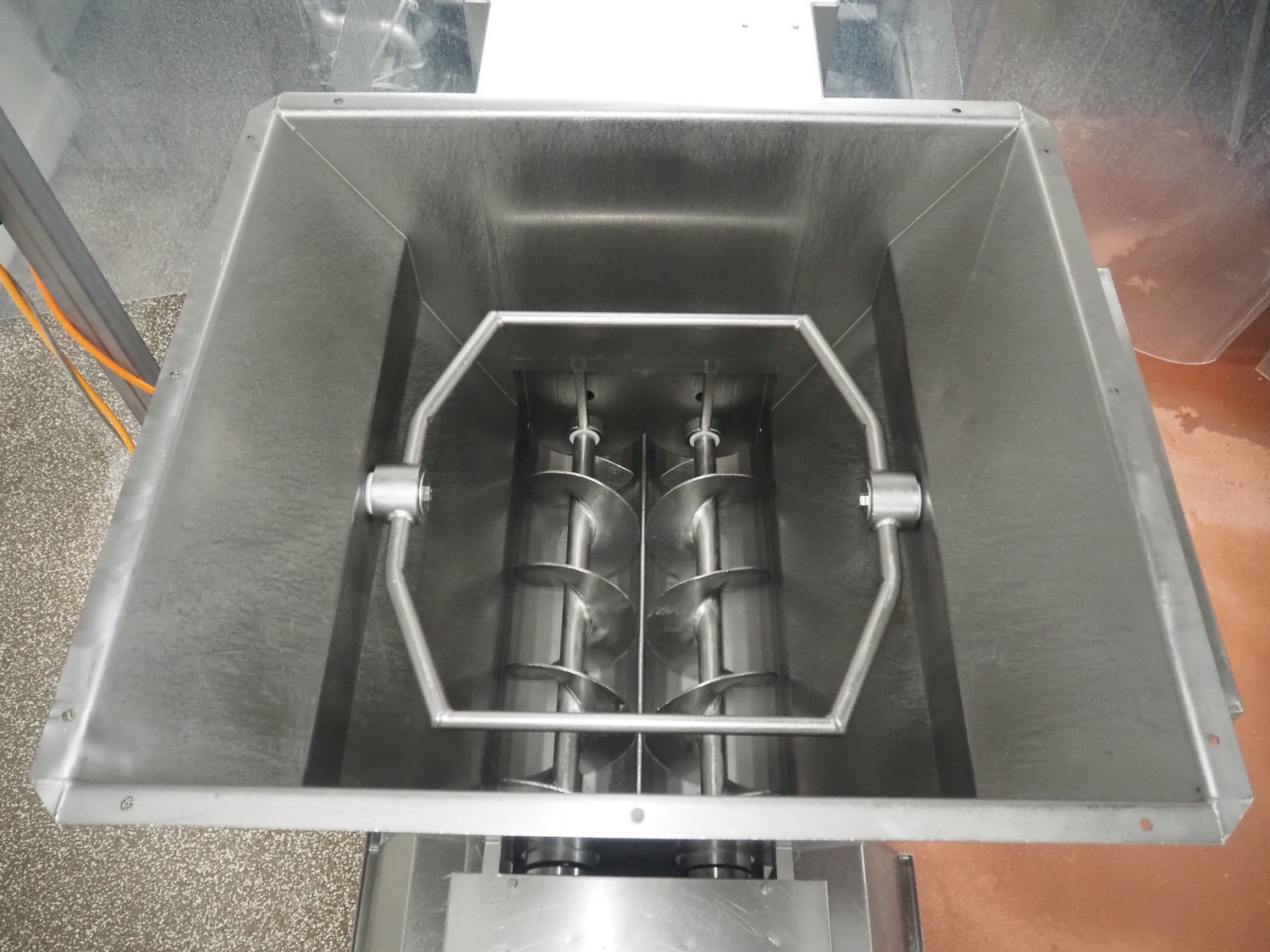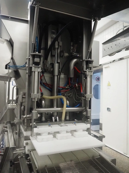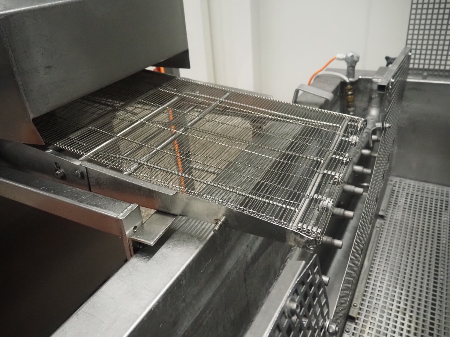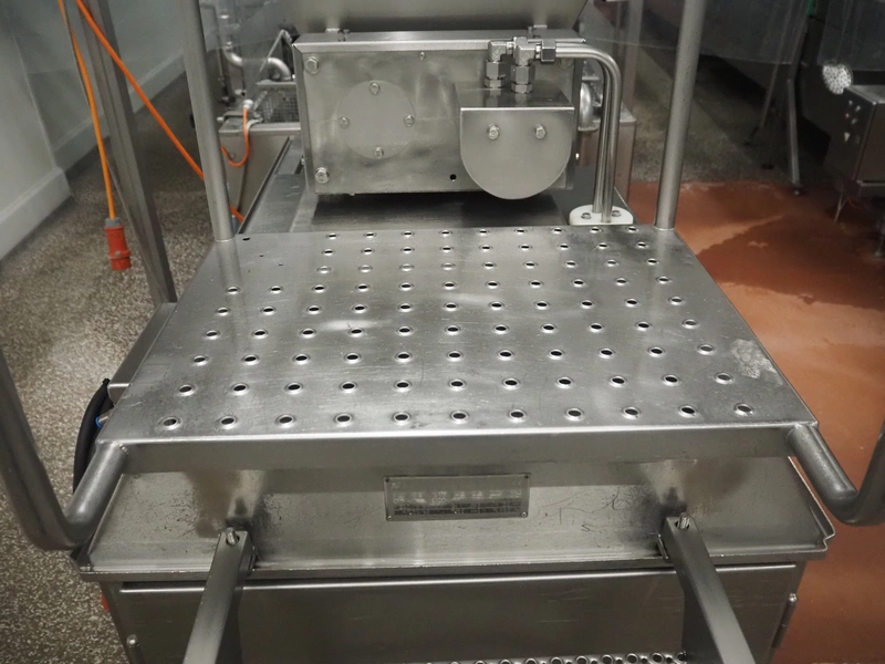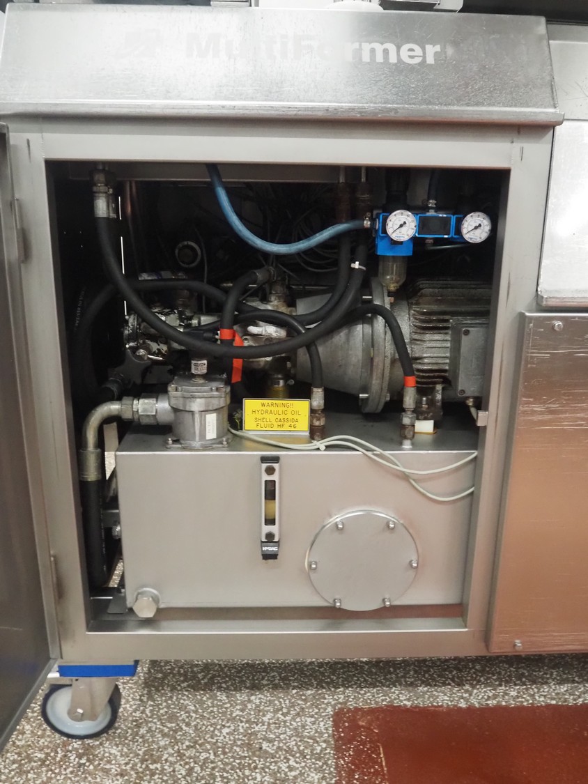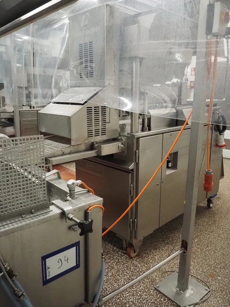 CFS MultiFormer forming machine, type: MLF 400, serial number: 2190, year of constructoin: 2002, 3 x 380 V, 50 Hz, 7.86 kW, maximum: 50 strokes per minute, s/s mesh belt, belt width: 400 mm, hopper volume: 270 liter, weight: 1186 kg, total dimensions: 3000 mm x 1000 mm x 2600 mm. Including BDG400 bridge breaker and extra long outfeed conveyor of 900 mm.