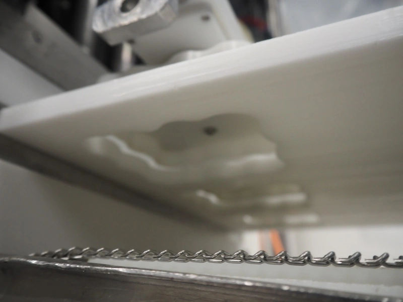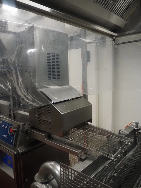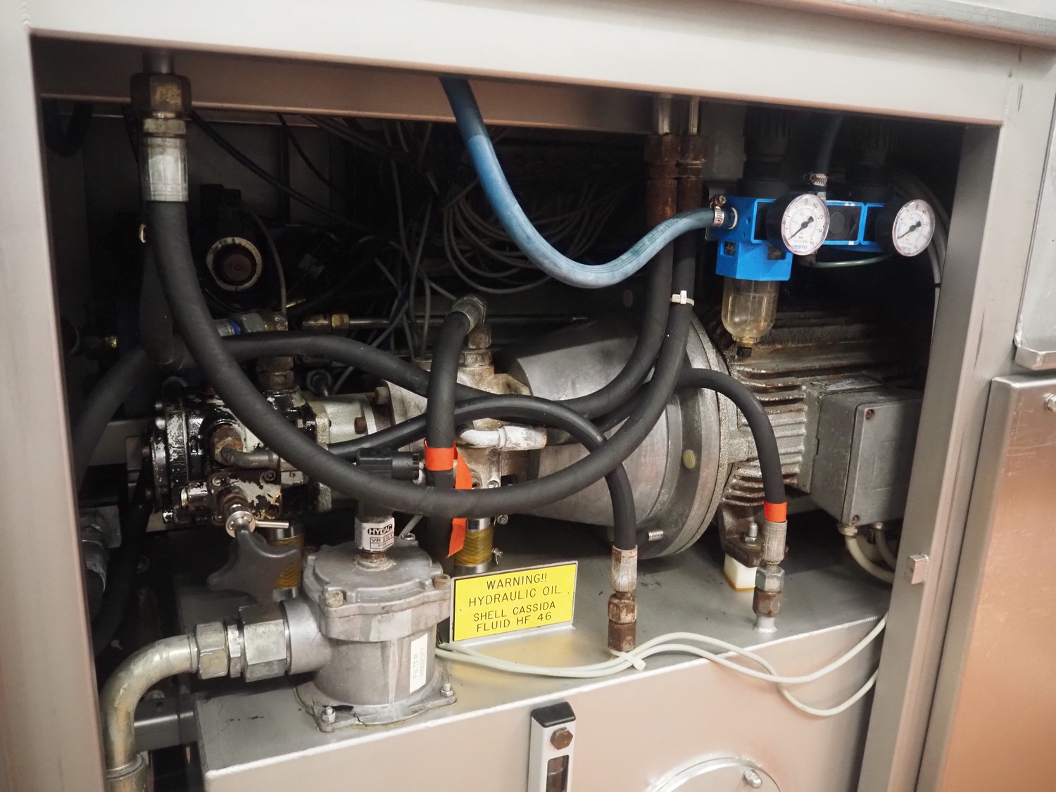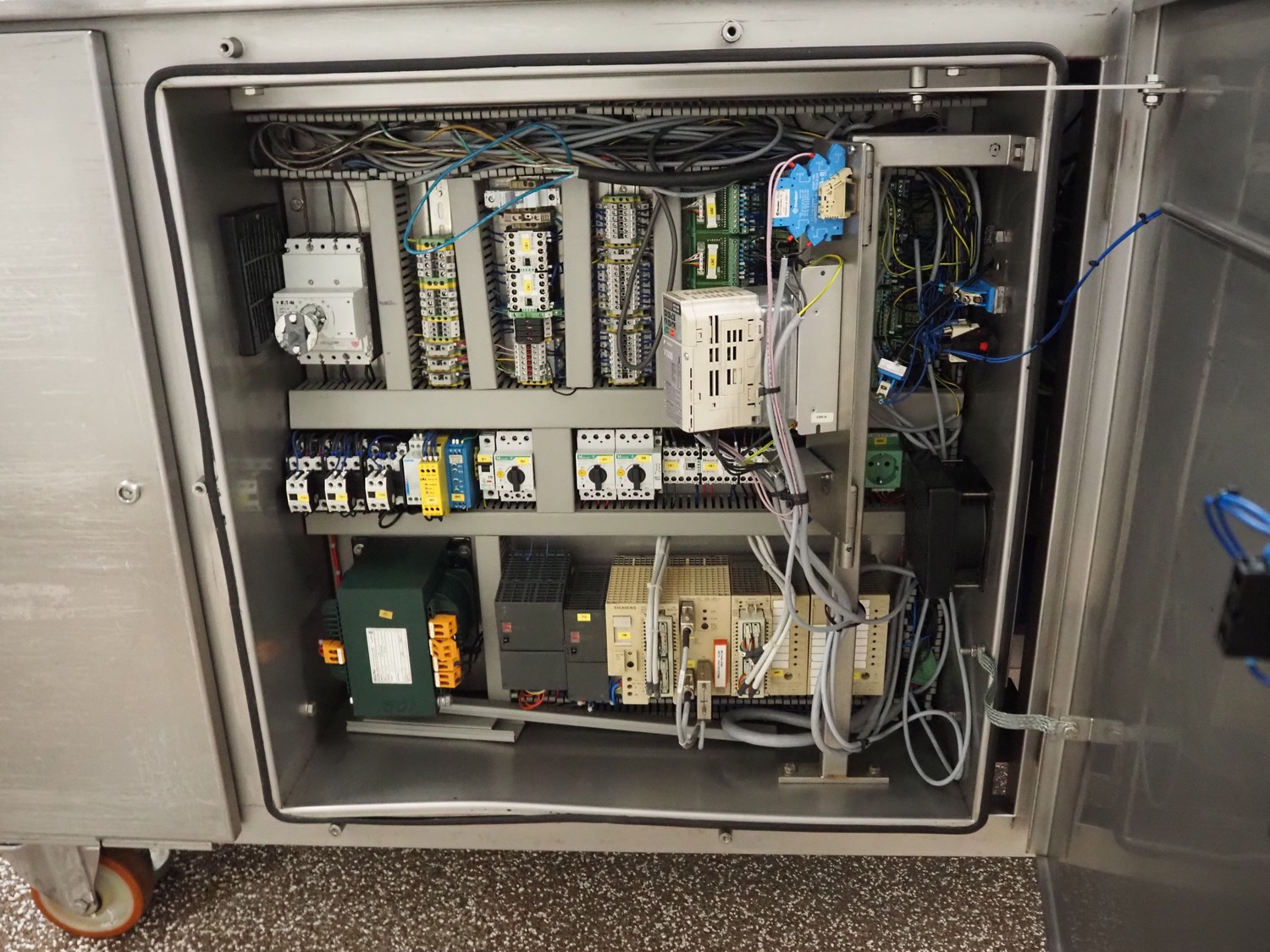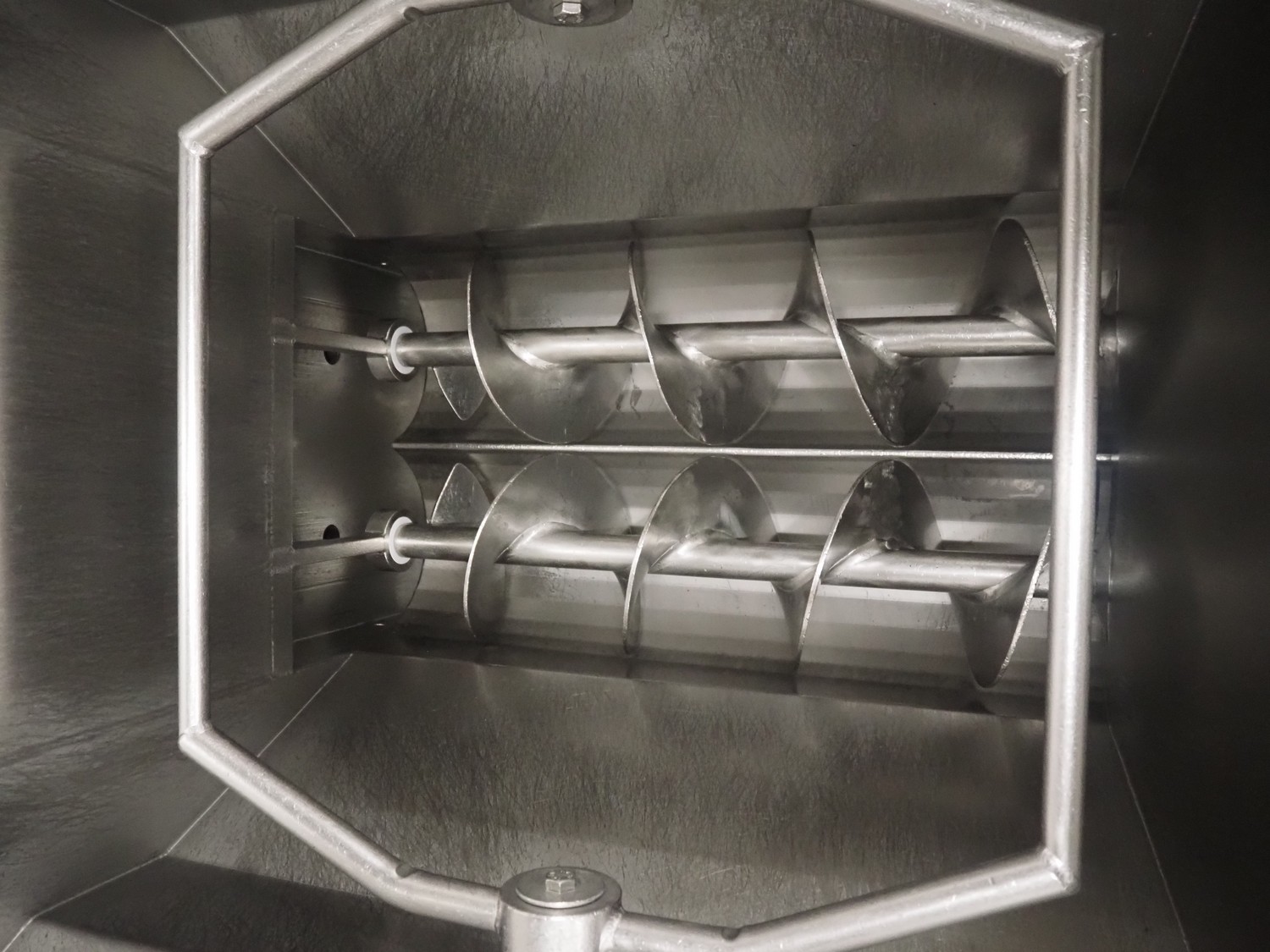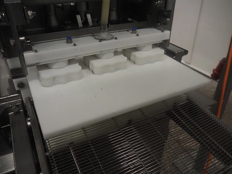 CFS MultiFormer forming machine, type: MLF 400, serial number: 2190, year of constructoin: 2002, 3 x 380 V, 50 Hz, 7.86 kW, maximum: 50 strokes per minute, s/s mesh belt, belt width: 400 mm, hopper volume: 270 liter, weight: 1186 kg, total dimensions: 3000 mm x 1000 mm x 2600 mm. Including BDG400 bridge breaker and extra long outfeed conveyor of 900 mm.